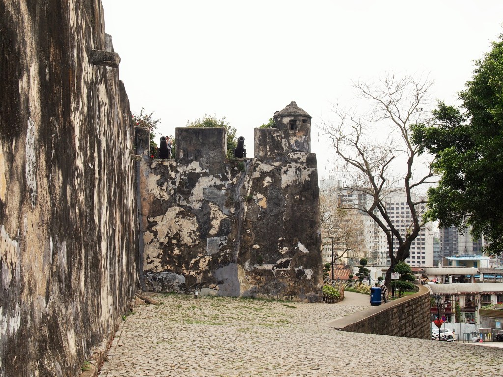 Above the ruins, Fortaleza do Monte, or Mount Fortress, stands guard over the peninsula. Built to defend the peninsula from sea attackers, the fortress saw action only once when the Dutch attempted to invade in 1622. Today the fortress is a pleasant place for a stroll or exercise – we saw several people running around the walls – and is home to the Macau Museum. The day of our visit was particularly humid so the museum was a welcome air-conditioned relief. The museum is small but encompasses a great deal, beginning with brief introductions to Eastern and Western traditions and ideologies before exploring how the Chinese and Portuguese came together in Macau. The first floor was devoted to the Portuguese arrival and their influence on Macau’s Chinese culture while the second floor focused on Macau’s Chinese traditions including a history of the peninsula’s most prominent industries – firecrackers and matches. There was a full-scale replica of a Macanese street exhibiting traditional Chinese and Portuguese architecture as well as the blending of the two styles that occurred to create something truly original to Macau.