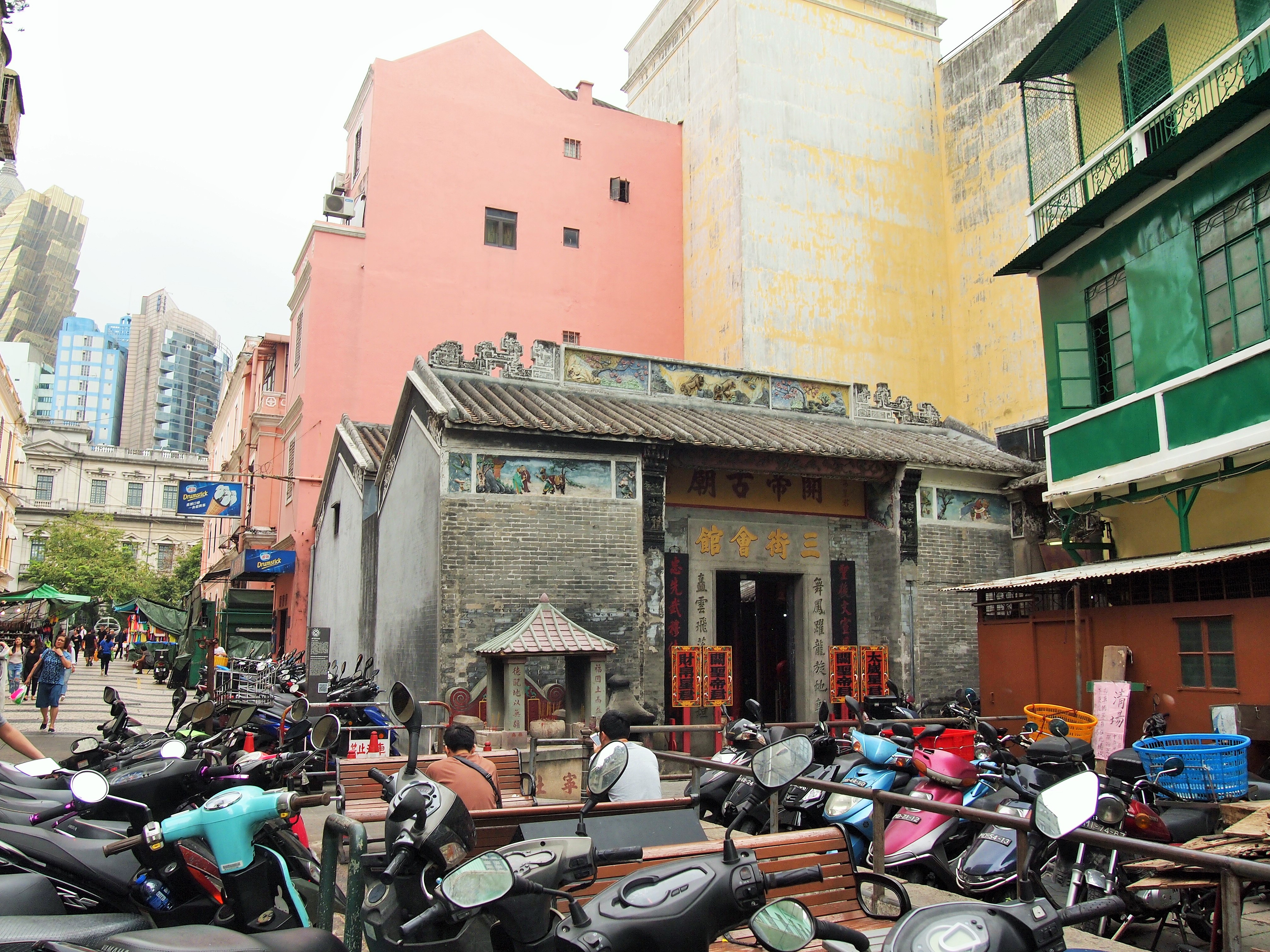 I left St. Augustine’s Square to walk back downhill to the Largo de Senado. I decided to make one more stop just off the square before heading back to the hotel to rest – Kuan Tai Temple or Sam Kai Vui Kun. Nestled in the heart of the historic center, the appearance of Kuan Tai Temple contrasts quite sharply with the Western-style buildings around it. Originally used as a meeting place for the area’s Chinese businessmen, the Chinese name – Sam Kai Vui Kun – means “three-streets-meeting-quarter” which references three of the surrounding streets where the Chinese bazaar used to be held. In the early 20th century, after the Chinese Chamber of Commerce was established, the building became a temple to the deity of loyalty, Kuan Tai.