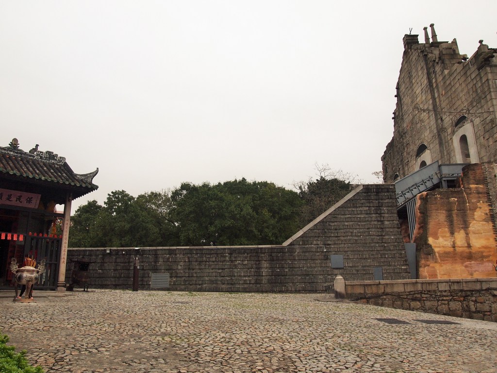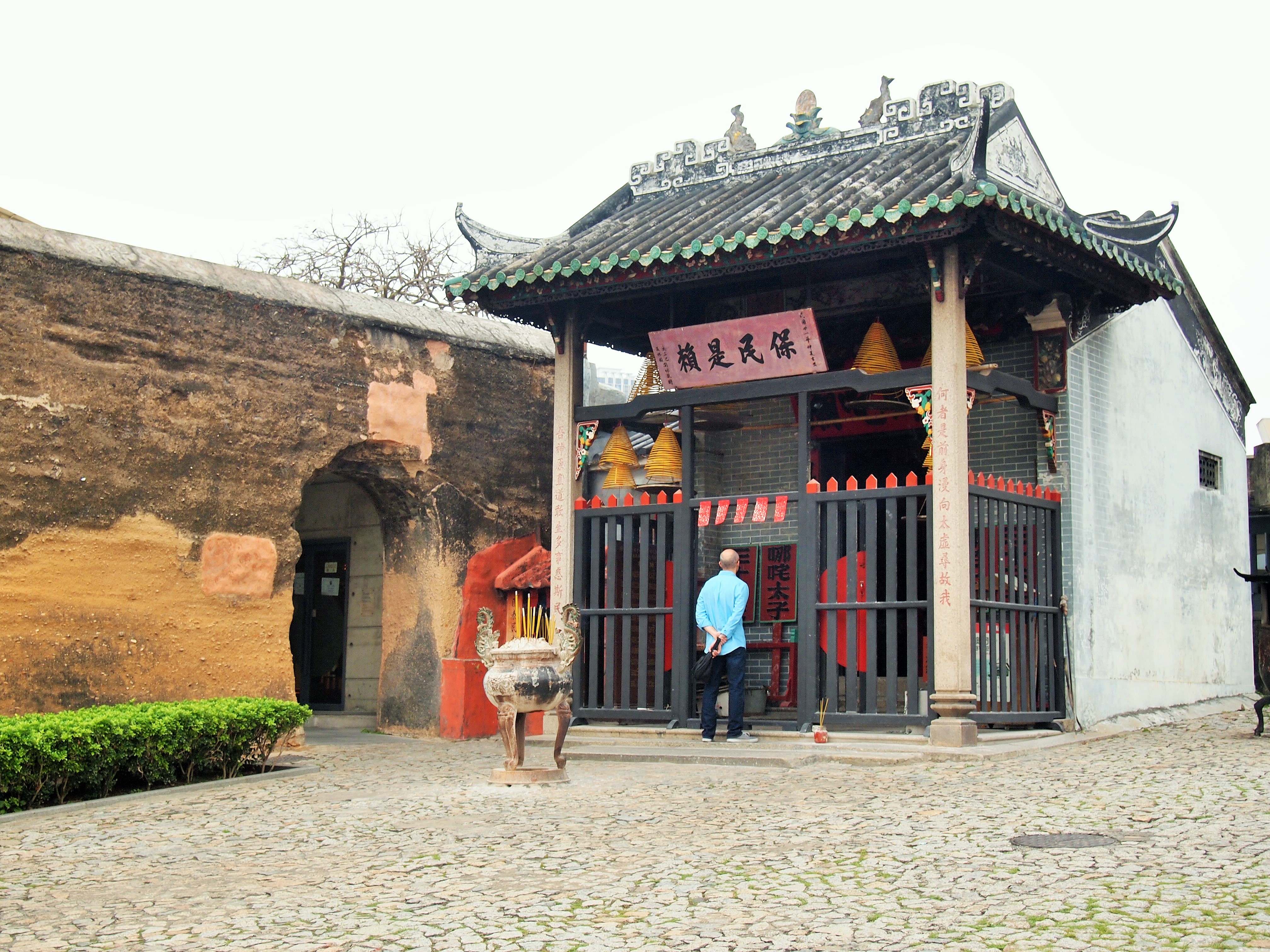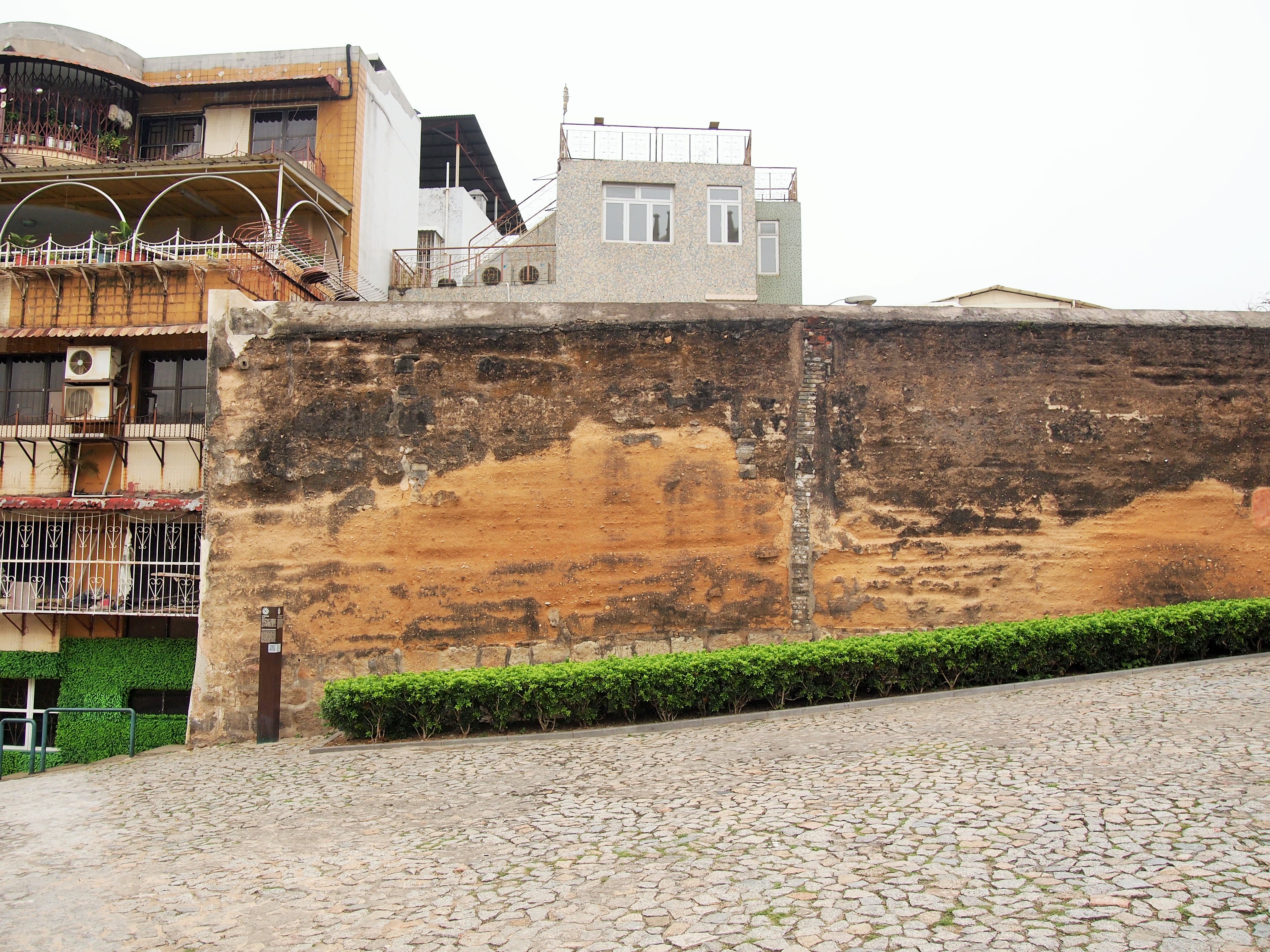 Our next stop, behind the ruins, was a section of the old city wall and Na Tcha Temple. The Portuguese built walls around all of their settlements along their trade route and this section is all that remains of their wall in Macau. It’s estimated to have been constructed around 1569. This section of the wall demonstrates a local construction method called chunambo where a mixture of clay, soil, sand, rice straws, and crushed rocks and oyster shells was laid in layers. I would have liked to have seen a map of the area where the wall originally stood. I haven’t been able to find one thus far.