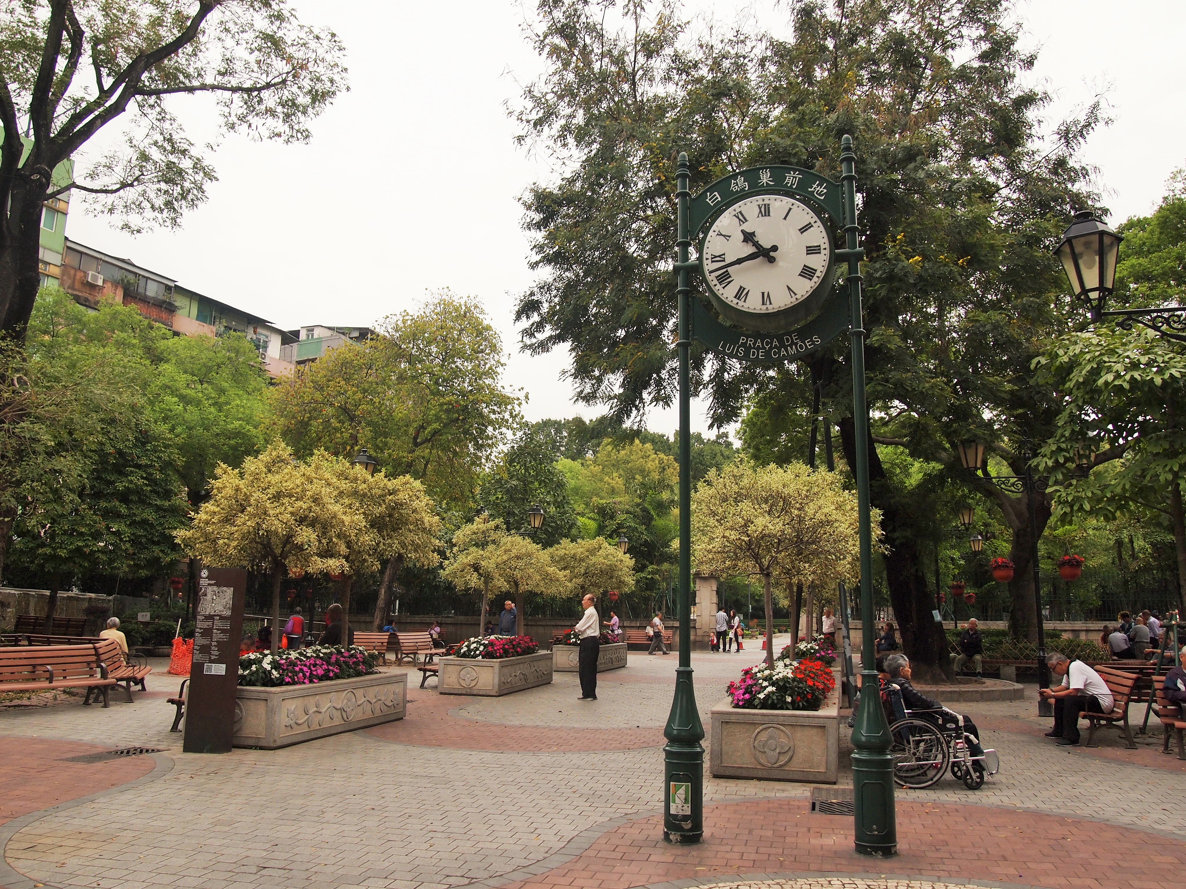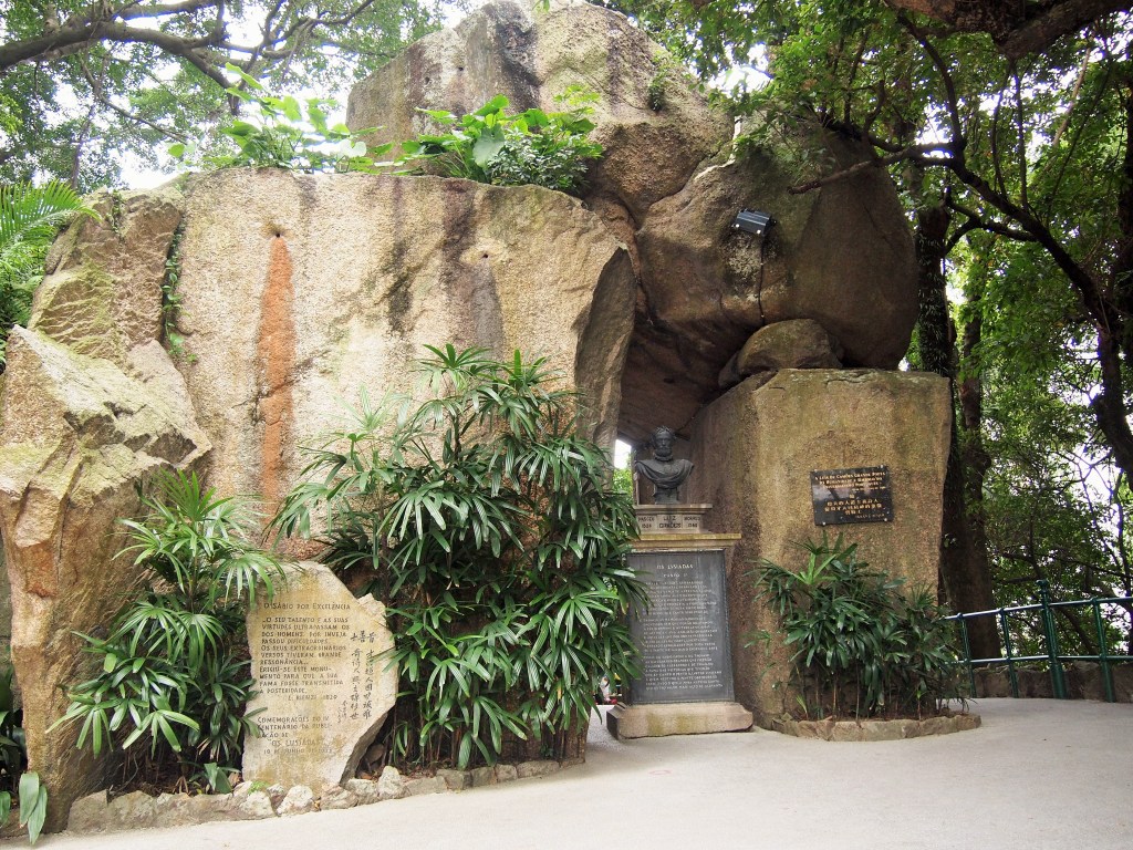We continued on our way, leaving the ruins behind and heading northwest toward Jardim Luís de Camões, or Camões Garden. Across from St. Anthony’s Church, one of Macua’s oldest churches, the garden is a public park next to a few other sites: the mansion, Casa Garden, and the protestant cemetery. The park is named for Luís de Camões, Portugal’s national poet. His epic, Os Lusíadas, tells the tale of Vasco de Gama’s discovery of the sea route to India. In 10 cantos he describes the journey historically and mythologically, adding Olympian gods into the mix. Originally the park was part of Casa Garden’s grounds and was known as “Nest of the White Doves Park” because its owner had a penchant for breeding doves and pigeons in the park. In 1849, the mansion’s owner installed a bust of Camões in the park in a stone grotto where he was rumored to have written part of Os Lusíadas. When the park was sold to the city government in 1885, it was renamed for Camões. The park is a lovely break from the city. Here older residents gather to chat, do tai chi, play mahjong, or exercise.