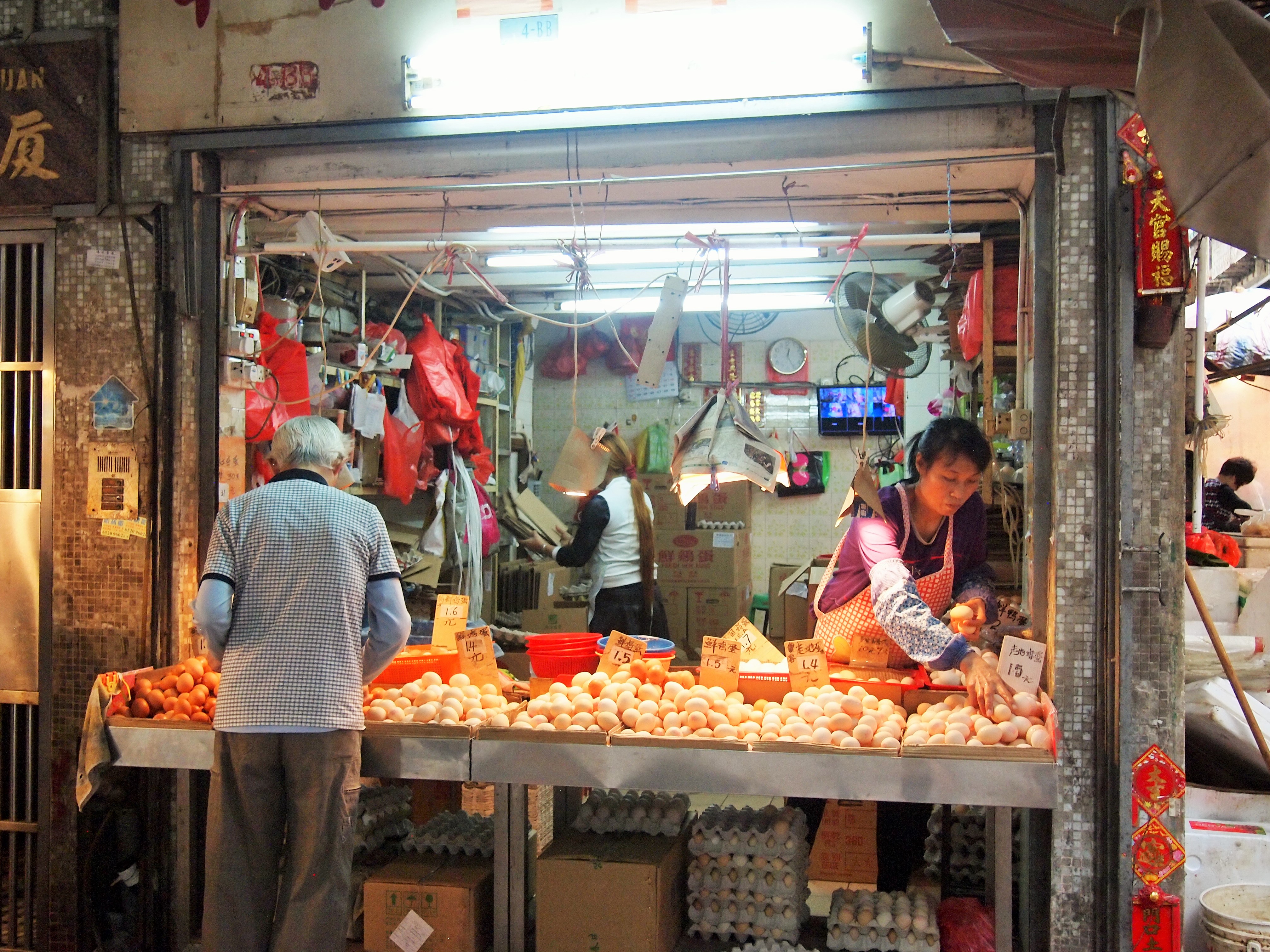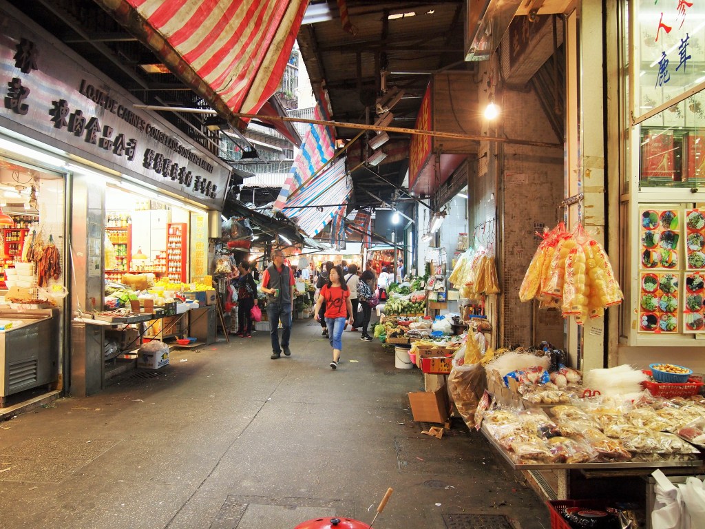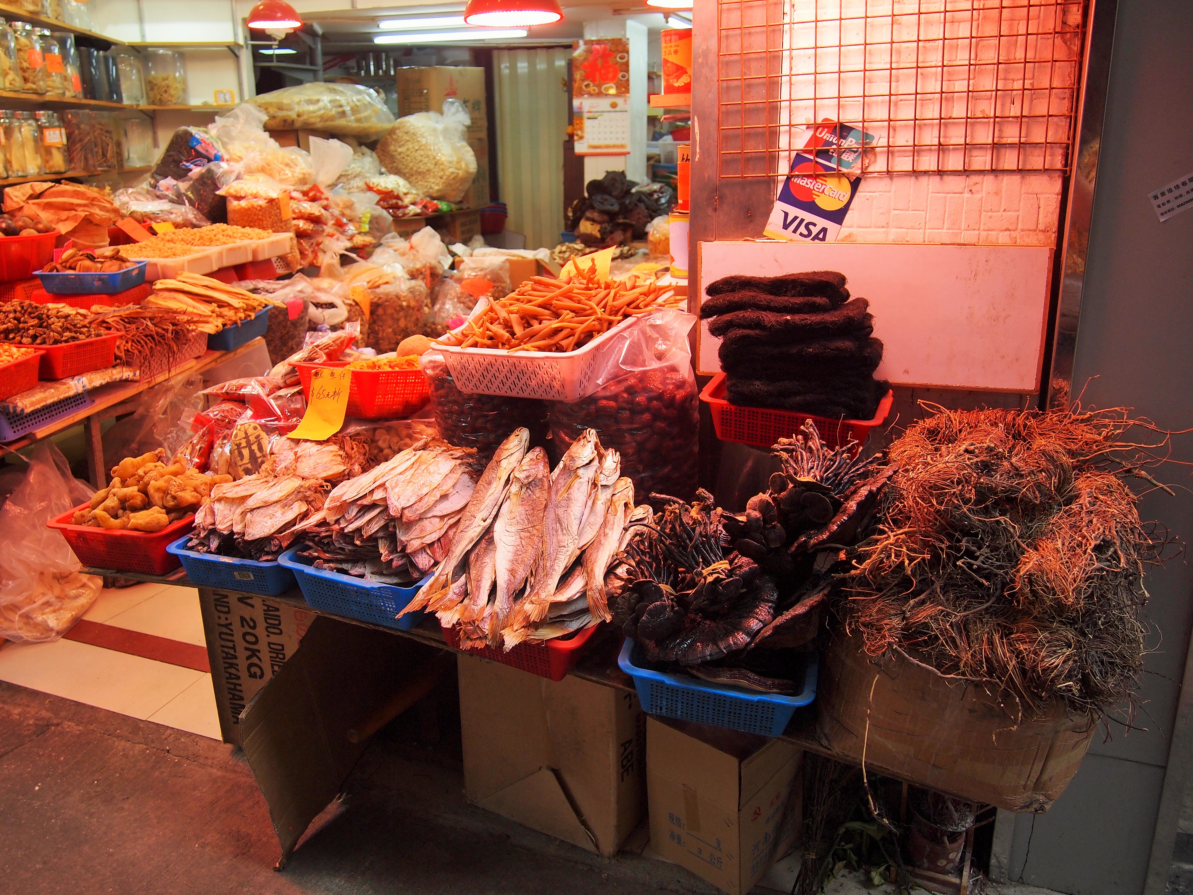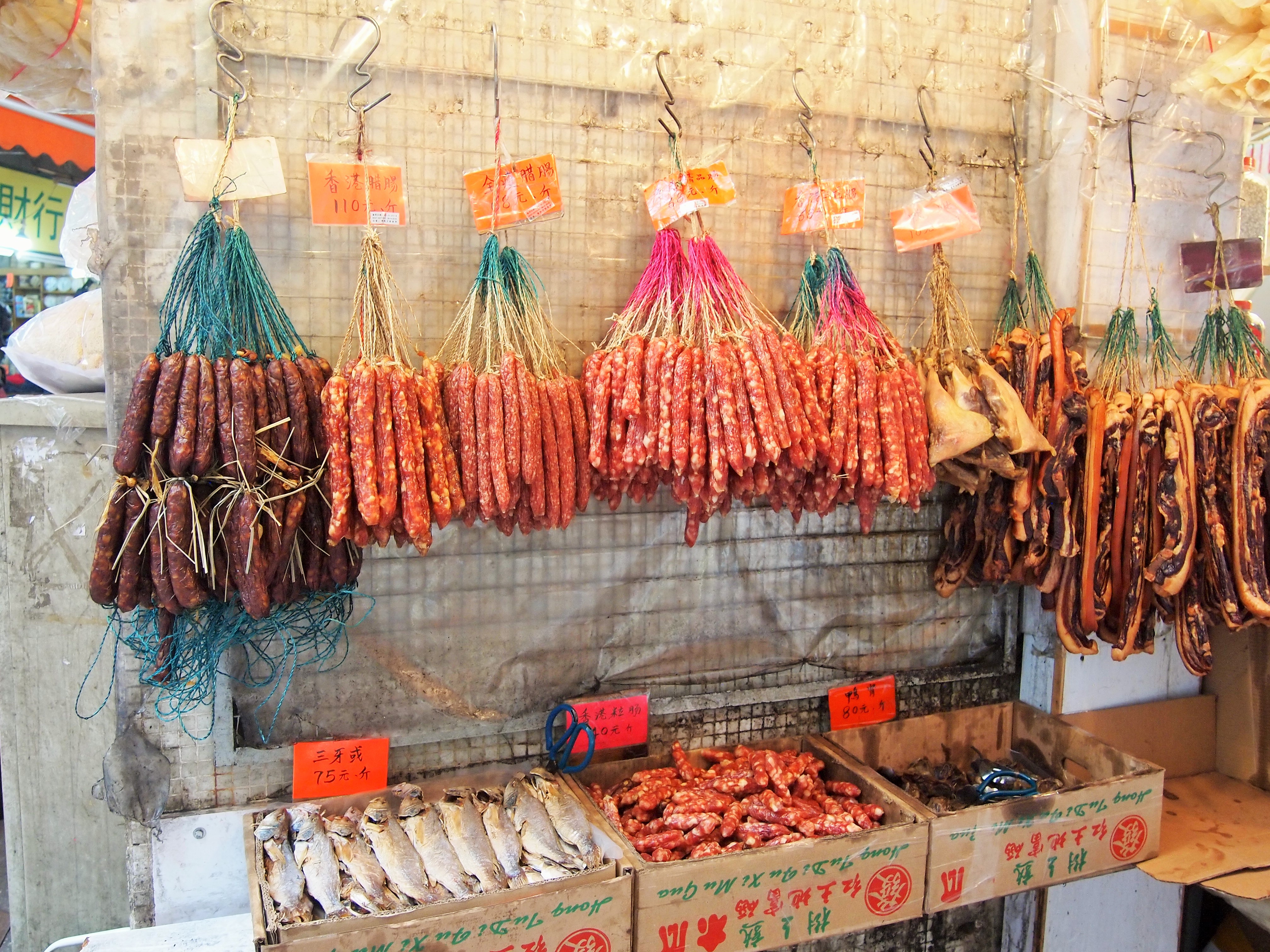 On our way to the Three Lamps District we stopped by Lin Kai Temple briefly. A little shabbier than some of the other temples we visited, it had quite the character. I especially liked the carvings at the top. Just a couple streets over, we entered the Three Lamps District, a traditional street market. It was filled with all manner of things – clothing, shoes, meat, produce, fish, even cured meats. It wasn’t very crowded; we were able to walk around and stop to look at things without being in the way. Although I was yelled at once for standing in the way of customers… oops.