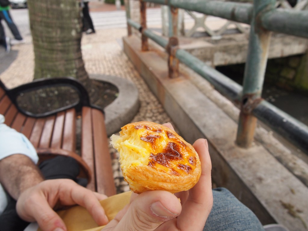 Relieved to be somewhere we intended, Coloane Village was more of a let down than Taipa Village. Tranquil and quaint, it’s much smaller, and there are fewer places to pop in and out to extend your stroll. Still, it’s on the water, and that was a nice treat in itself. Lord Stow’s Bakery is the major draw here. Similar to the pastel de nata we had in Belém, Lord Stow’s egg tart is an English-Portuguese hybrid now famous in Macau. There are satellite stores all over Macau and many other bakeries do their best to make imitations, but the bakery in Coloane Village is the original.