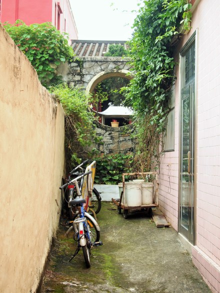 Farther down the lane was Tam Kung Temple. The entrance was impeded by a large bamboo structure – shaped like a giant tent – which appeared to be in preparation for a large event. We had kind of tired of looking at temples at this point so we didn’t poke around and instead, turned to loop back into the heart of the village for some lunch.