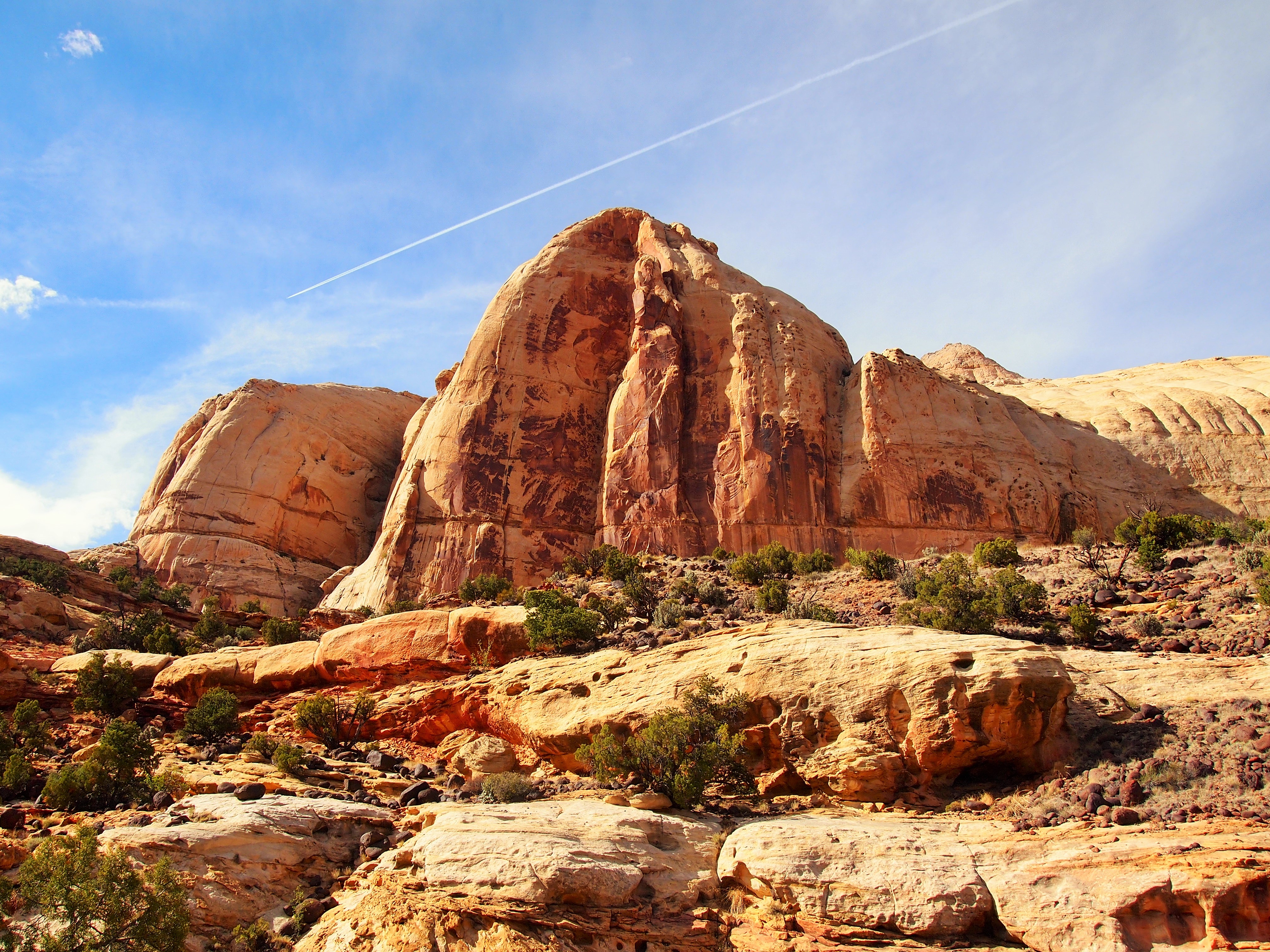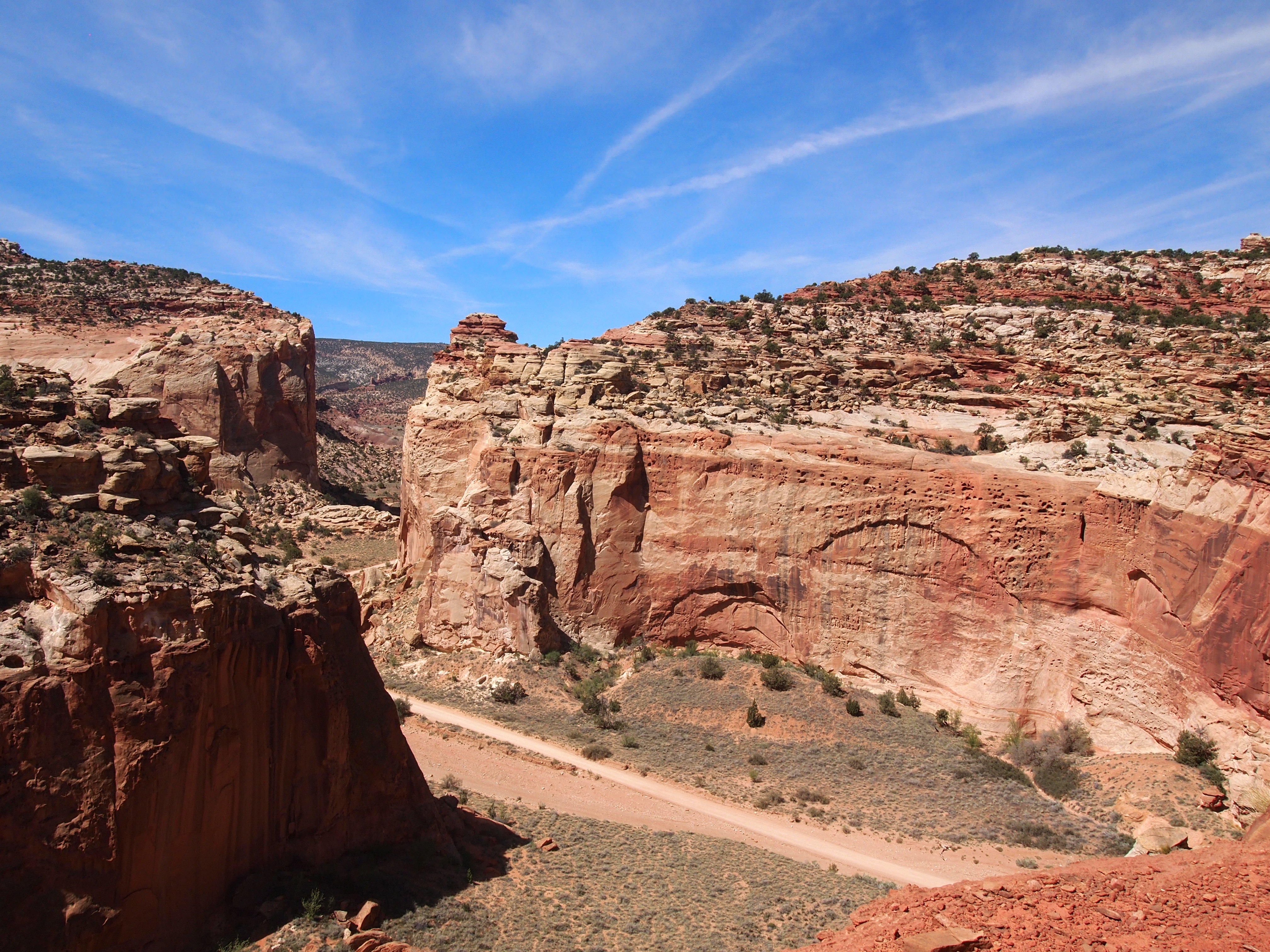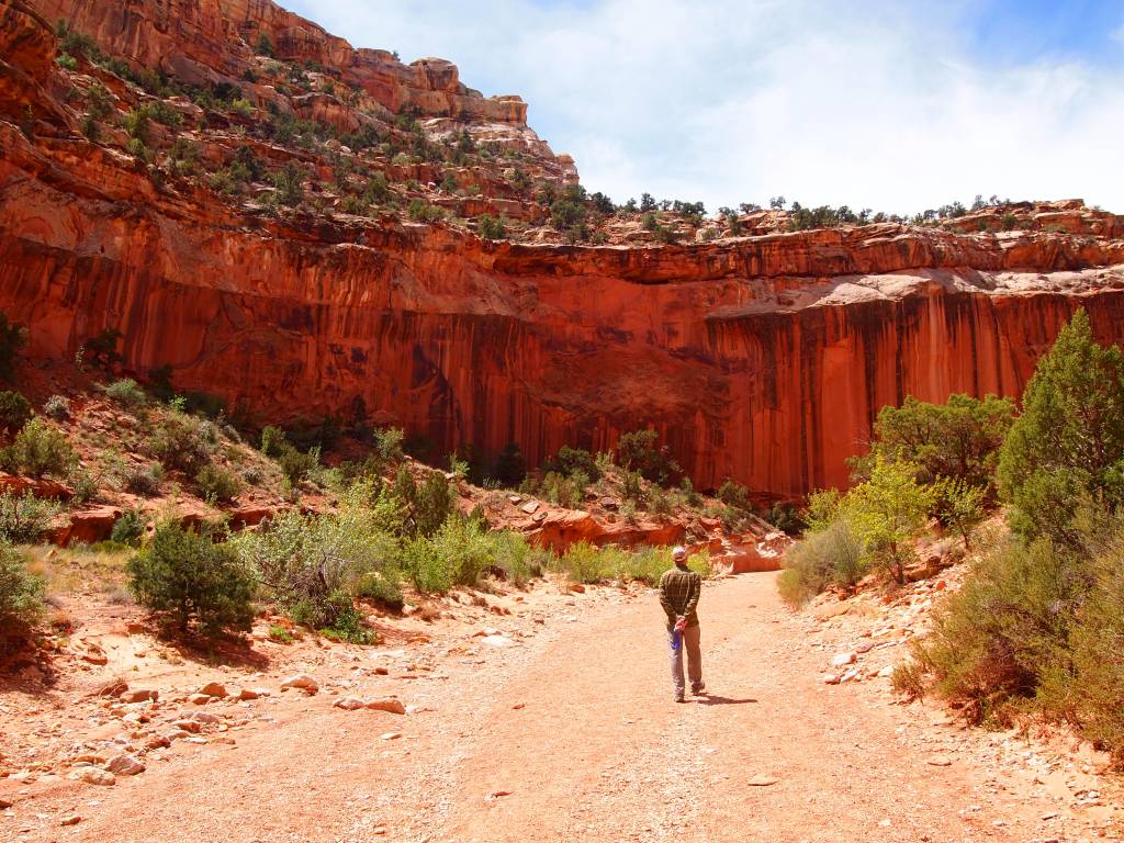 After a great hike to Cassidy Arch, we continued along the Scenic Drive to its end at Capitol Gorge Road. Capitol Gorge, the most prominent opening in the Waterpocket Fold, has served as a passageway for many travelers. The road, a winding dirt track, was an actual through road from 1884 until 1962 when the last piece of Highway 24 was finally completed. Today, the road ends after 2.4 miles at the trailhead for Capitol Gorge and Golden Throne.