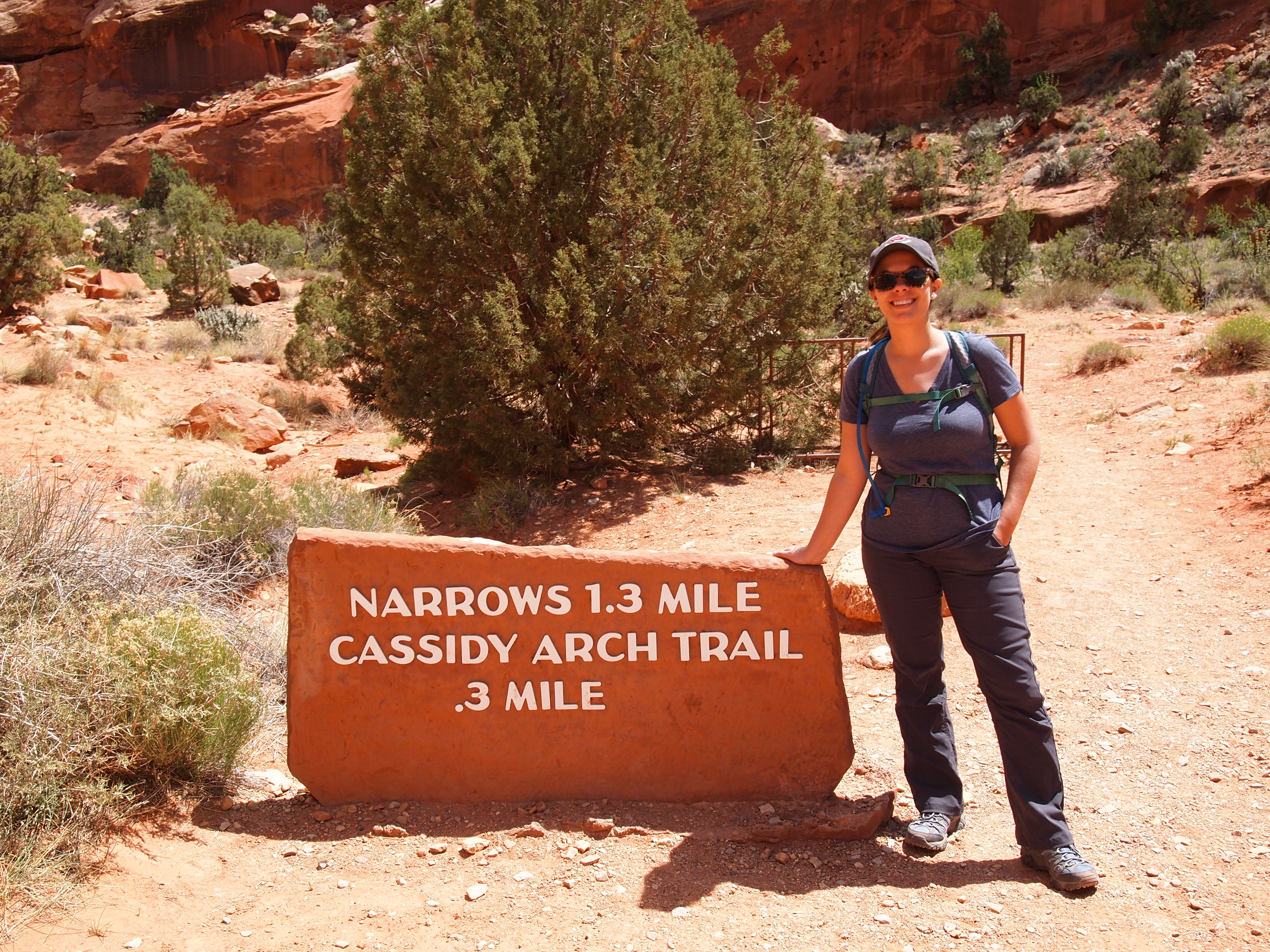 We rolled into Torrey without any plan or provisions, so we stopped at the Chuckwagon General Store to buy some snacks for the day, and then drove into the park. Six miles from the entrance, we stopped at the Visitor’s Center to obtain maps and postcards – a necessity of any trip. I overheard a ranger give a couple hiking recommendations – Capitol Gorge and Hickman Bridge – and we tucked those in the back of our minds. We had no real objective for the day. We just wanted to do a couple hikes and see a decent portion of the park – simple!