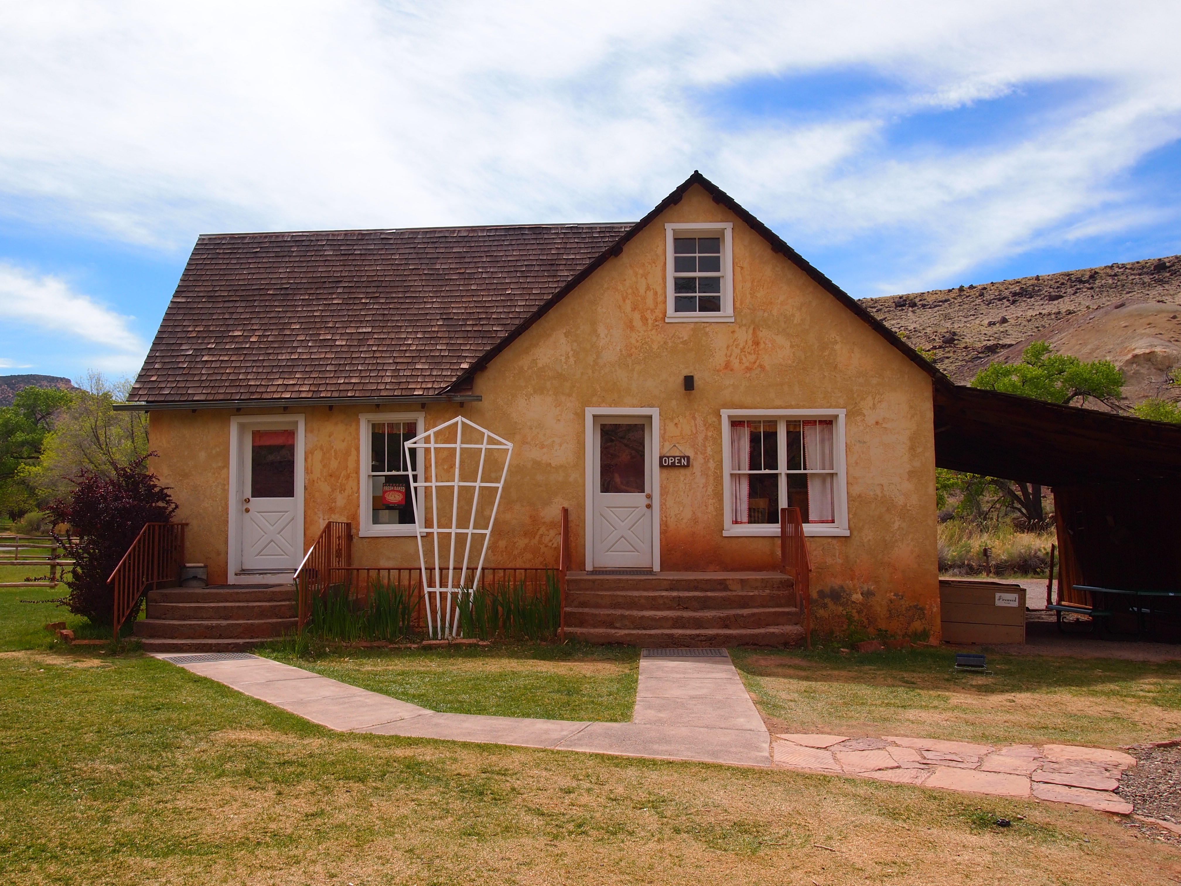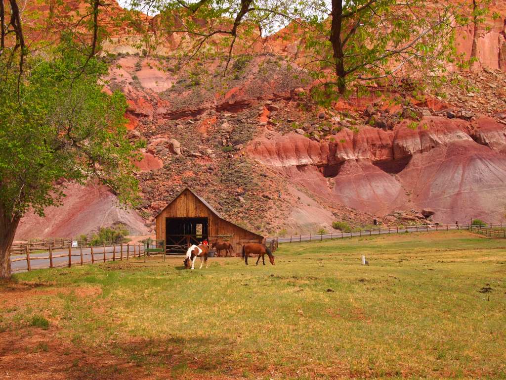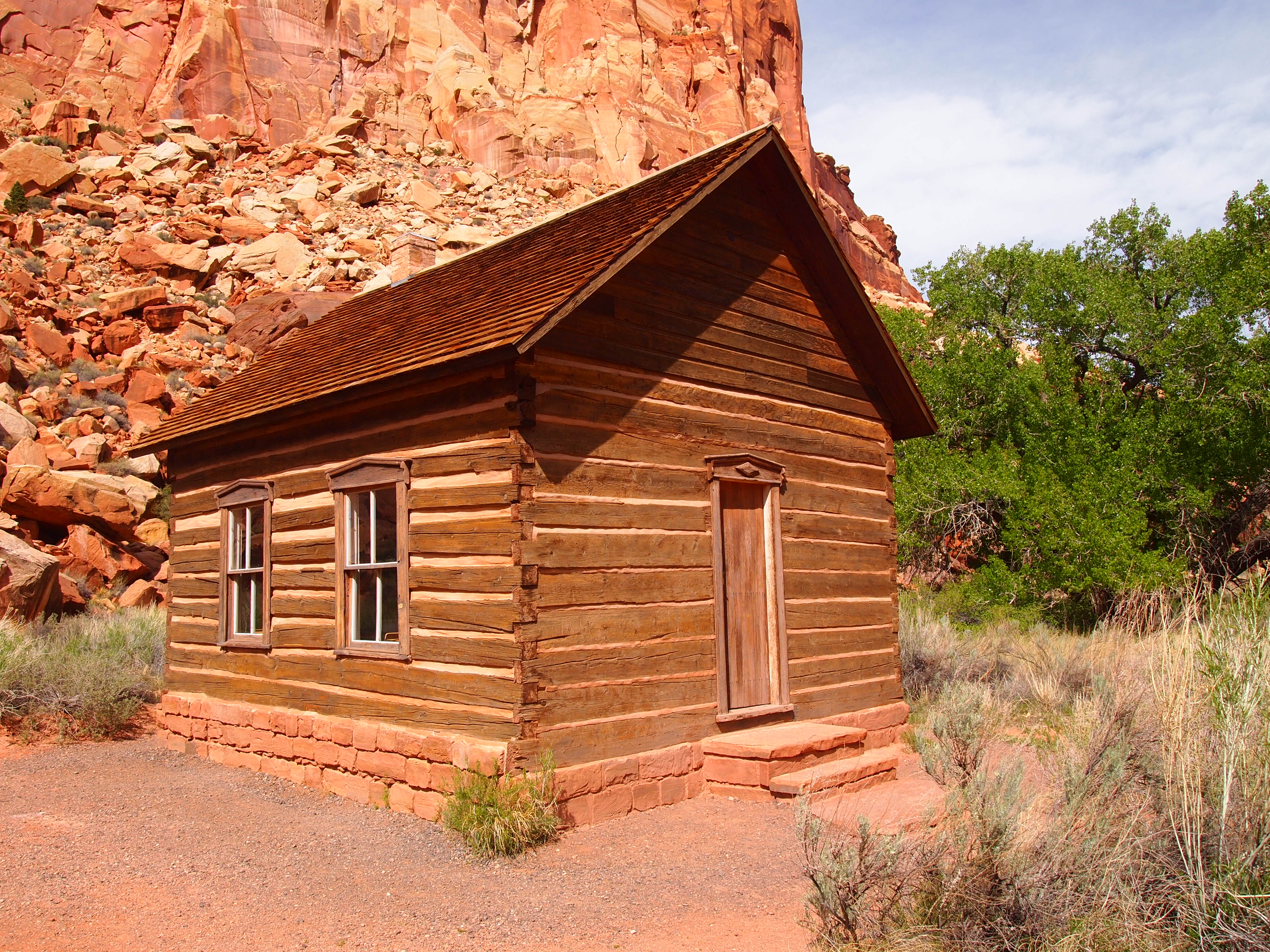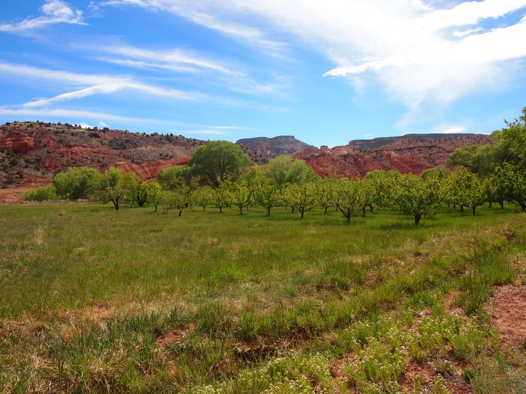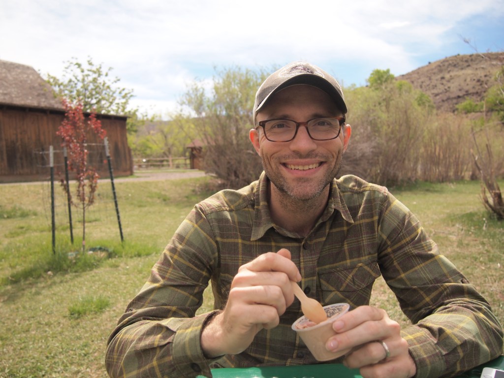 Fruita is a breathtaking area. The bright spring green of the orchards contrasts so sharply with the red rock of the canyon walls that it produces an astounding sight. Although many of the residential buildings in Fruita were demolished, the Gifford House, a barn, and a schoolhouse still stand on the property. We stopped at the Gifford House after our first two hikes and bought some delicious homemade ice cream along with some apple butter, my favorite. We later stopped by the old schoolhouse which has been restored and staged as it would have been in the 1930s.