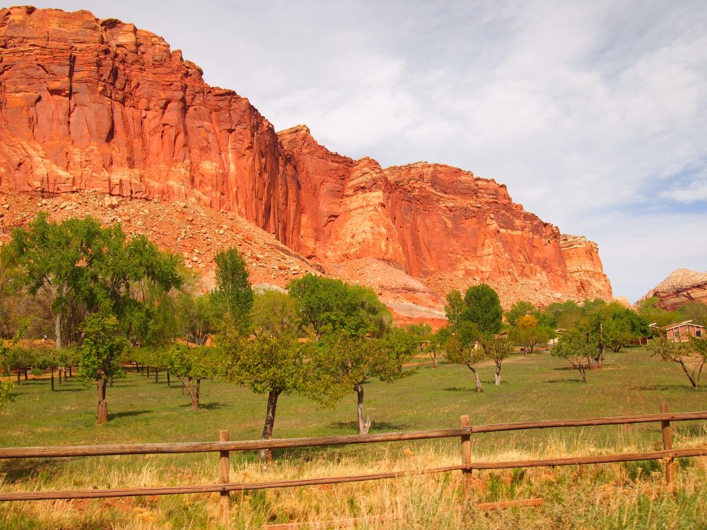 Capitol Reef is larger and more spread out than I realized, and there are sections of the park that aren’t as easily accessible from Highway 24. We concentrated our efforts on Fruita, the historic heart of the park. Although many have left their mark on the region – Fremont Culture and pioneers travelling west – the Mormon pioneers settled Fruita in the 1880s creating a self-sustaining community. Along the banks of the Fremont River, they planted orchards and cleared pastures for grazing. Originally named Junction, the community changed its name to Fruita after the prosperity of their fruit orchards gained them regional renown. The community remained small and isolated. The distance between Torrey and Fruita, 10 easily traveled miles via a smooth paved road today, took an hour and half at the turn of the century. Today, the Fruita orchards are considered part of the historical landscape of Capitol Reef and are maintained by the park service.