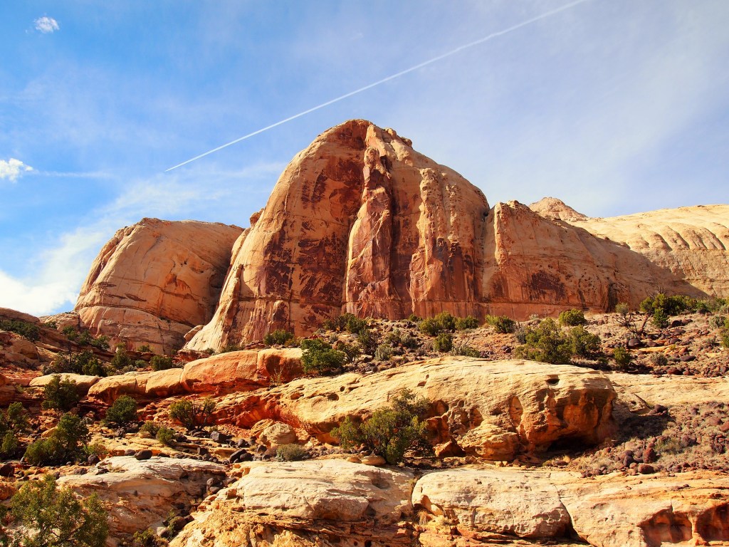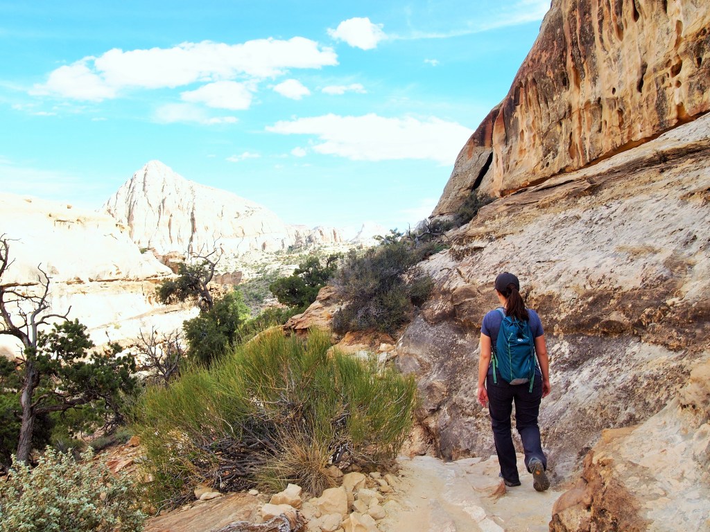 A couple weekends ago we made our first foray down I-15 to central southern Utah. It seems kind of absurd that we hadn’t gone to that part of Utah yet, but Zion and Bryce Canyon National Parks are just far enough from Salt Lake to warrant a three or four-day weekend to get in a decent trip, and we’ve been busy jetting around to other places. Plus, I’m not interested in going south during the summer. So we decided to make the trip to Capitol Reef National Park, the least well-known of Utah’s “Mighty 5” national parks, while the weather was still pleasant.