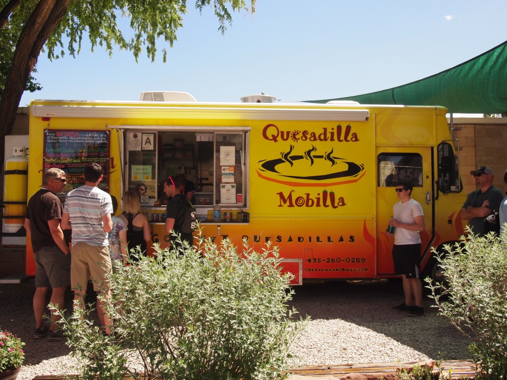 There is one essential stop we make every time we are in Moab – Quesadilla Mobilla. The quesadillas are amazing, and we can’t help but crave them at the mere mention of Moab. I like the New Mexican Identity Crisis, a flour tortilla filled with artichoke hearts, black olives, green chile chicken, spinach, and of course, cheese. Zach likes the Enchanted Chicken and Pam had the Fiery Fungus. I am craving one just writing about it…