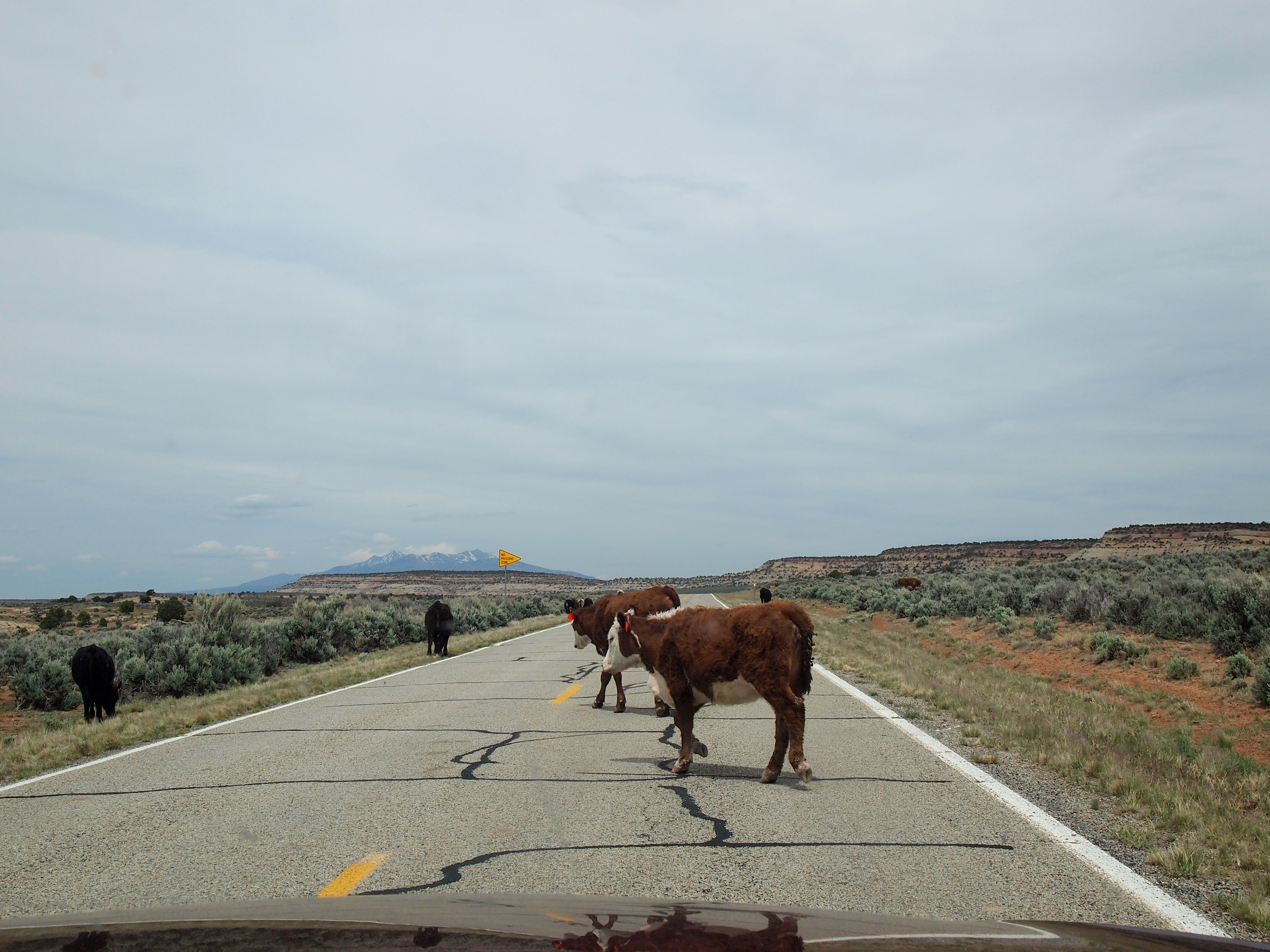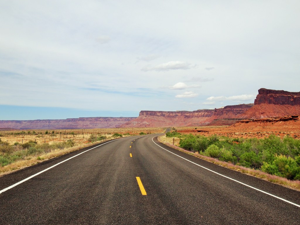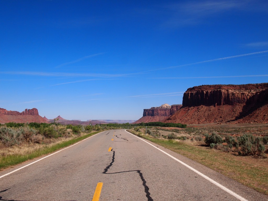 After our hike, all of our minds were on food. The previous day I’d made PB&Js to stick in my backpack and we’d scarfed them after the Tapestry Arch hike, but I hadn’t made them for Canyonlands, oops. We took a quick look at the Big Spring Canyon Overlook at the end of the scenic drive and then started the journey back to Moab.