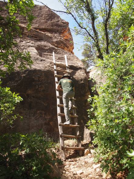 The next phase of the loop took us up two ladders to the top of the rock providing a wonderful 360° view. It was so unexpected that it really made the trail worth it. We followed cairns over the slickrock to loop around and eventually back down to the gravel trail. Since Cave Spring was south of the scenic drive, it gave us a different perspective of the district than the Slickrock Trail would further northwest. Other than the ladders, the trail was quite simple and could be done by anyone looking to get out of their car for a short adventure.