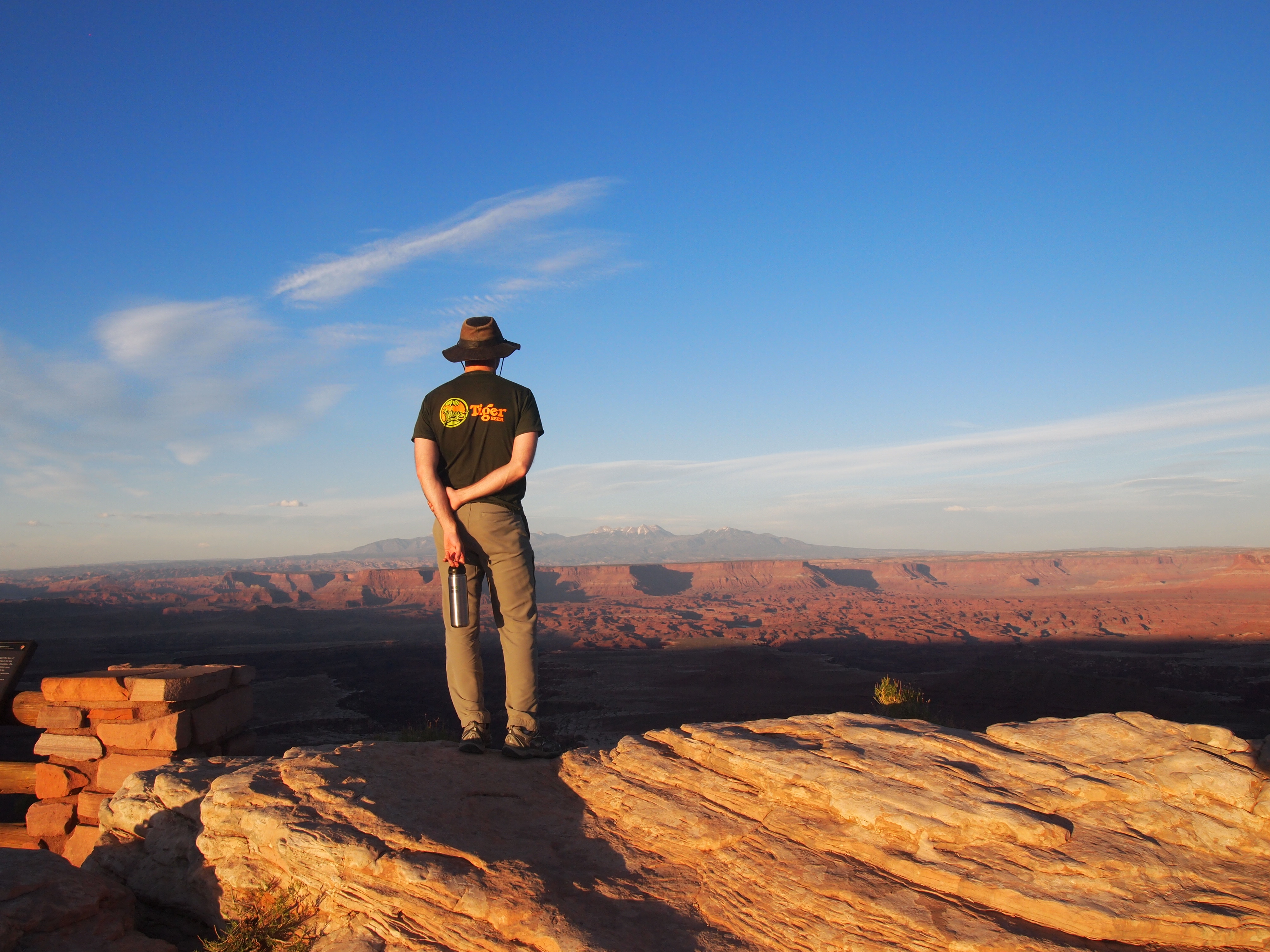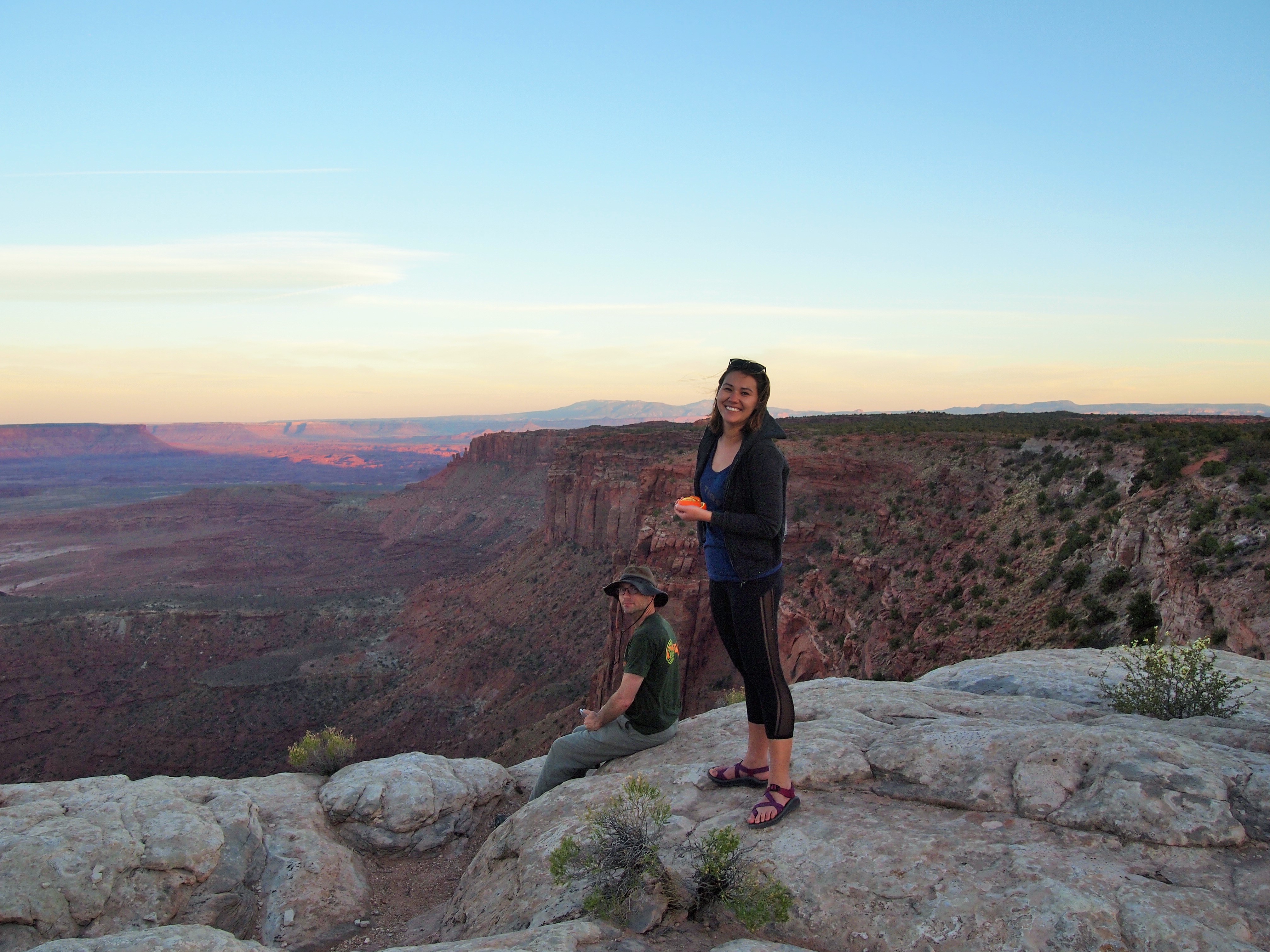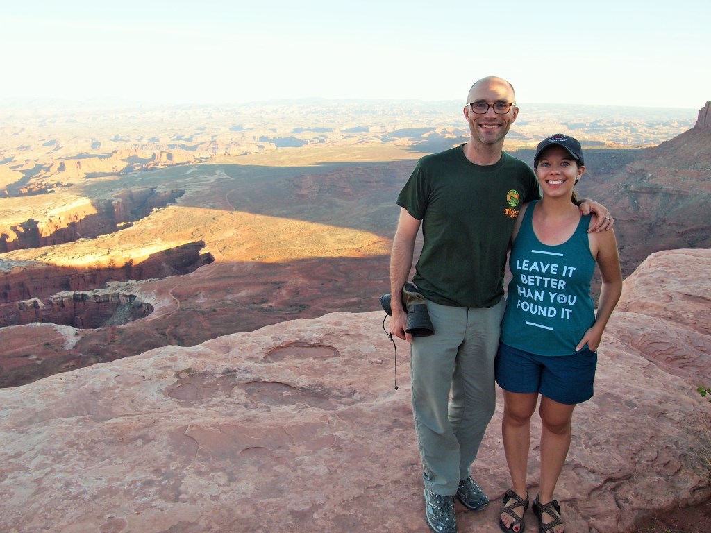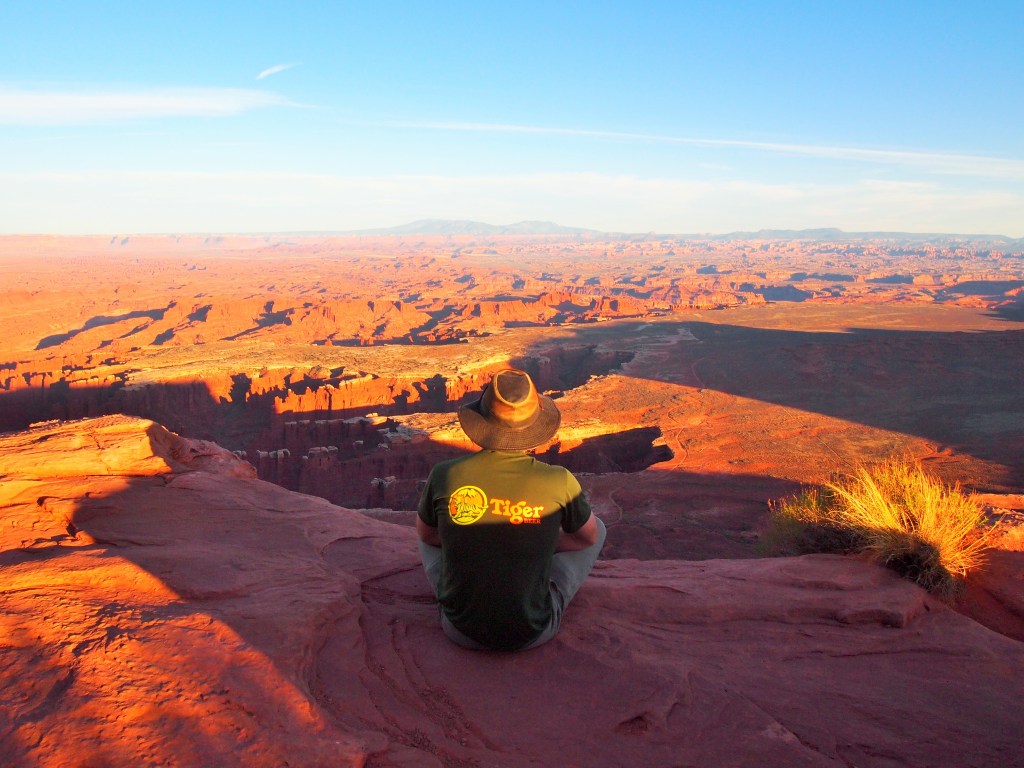 Back in Moab, we had some tasty food at Arches Thai and went back to relax with Tru – have a beer, take a walk, etc. Then we left again to squeeze in some of the overlooks at Island in the Sky before sunset. We were able to do the short loop hike to Mesa Arch and the overlooks at Grand View Point, Buck Canyon, and Green River before it became too dark.