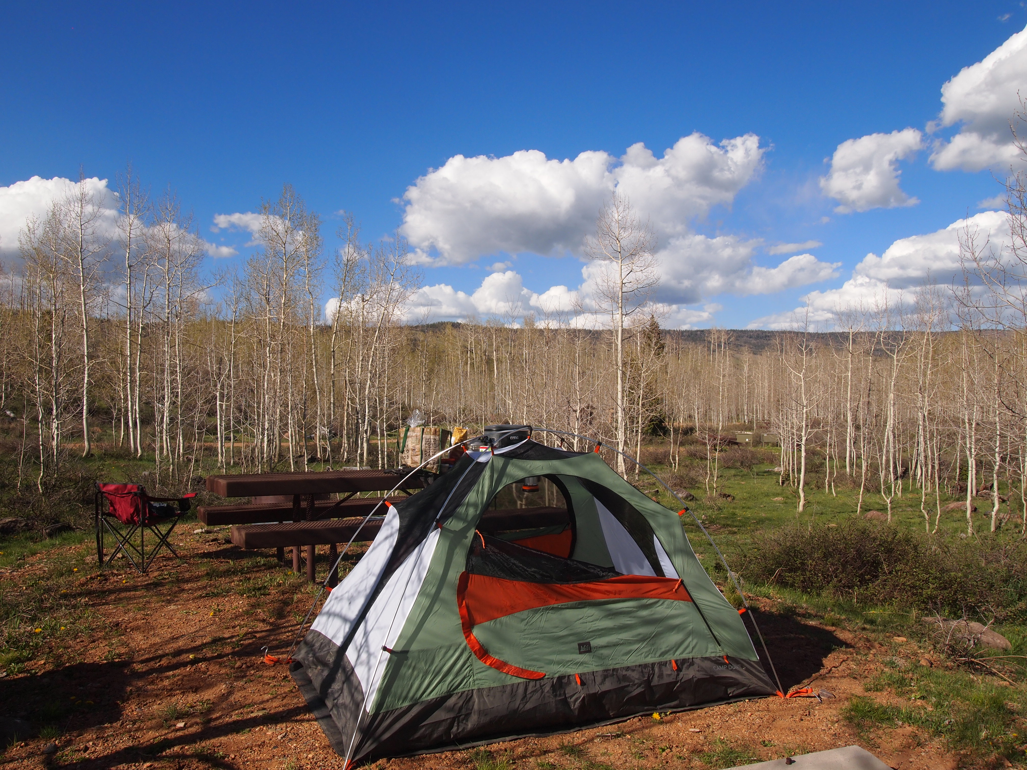 We camped on Boulder Mountain, a 50,000 acre high-elevation plateau with tons of small alpine lakes. There are several campgrounds to choose from across Boulder Mountain but since we were arriving on the Saturday of a holiday weekend, I decided to make a reservation. I ended up choosing Barker Recreation Area, near the town of Escalante. I thought it would make a great base for exploring Grand Staircase-Escalante. What I didn’t realize until the day before we left was that the campground was 2.5 miles outside of town and then 16 miles down a dirt road – not really an ideal base after all. Still, it ended up being a great campsite.