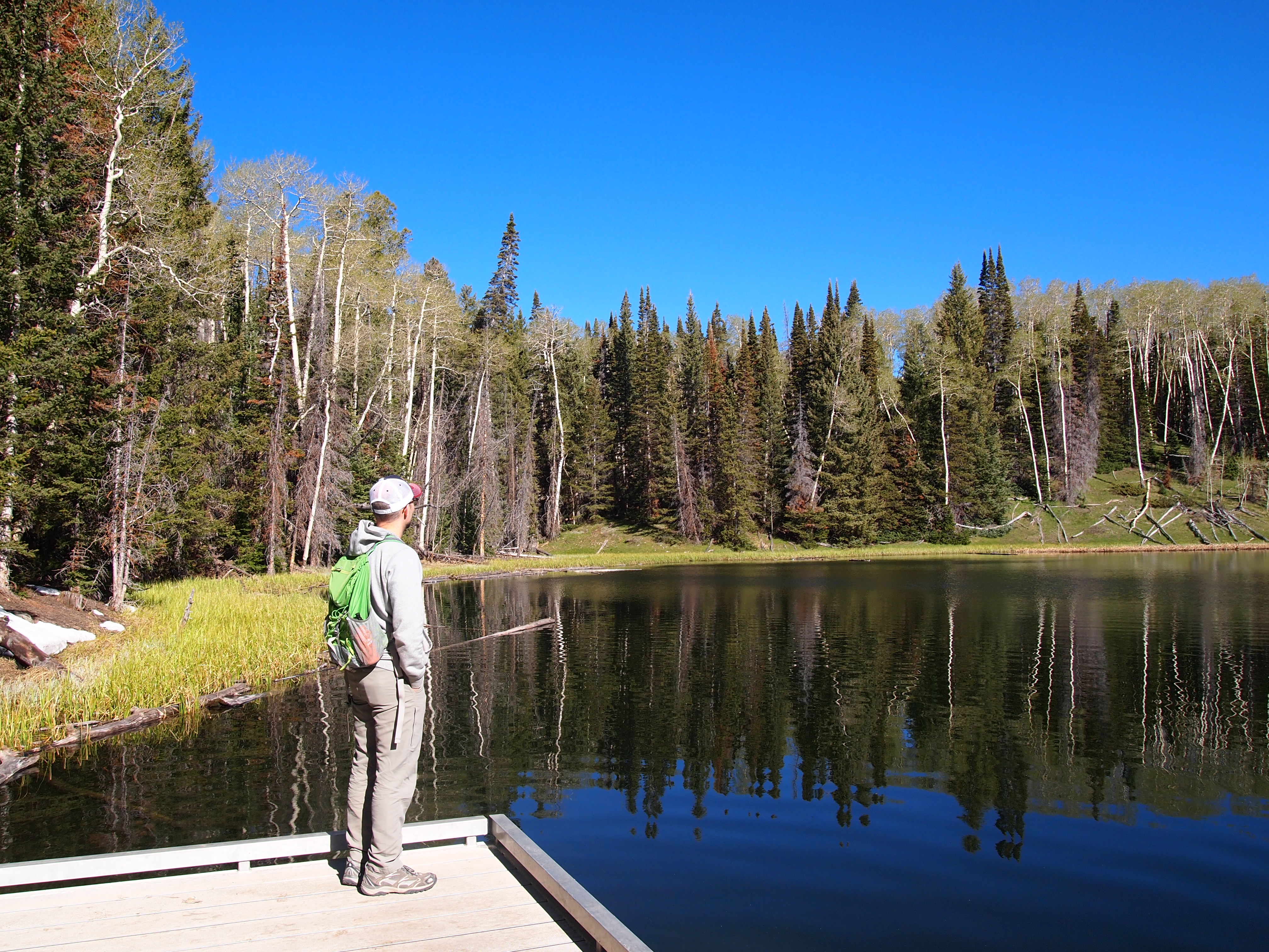Lower Barker is less accessible, though not by much. It’s only a short walk from a parking area and trailhead. On Sunday morning we took advantage of the hiking trails there. From the map and directions at the trailhead we were able to follow a few different trails to create a loop to several reservoirs and alpine lakes. We were the only hikers and almost the only souls, save for two fisherman who had camped by one of the lakes. I’m not quite sure of the mileage but it was a great peaceful hike, and I wasn’t at all mad that we weren’t down in the slot canyons of Grand Staircase like everyone else.