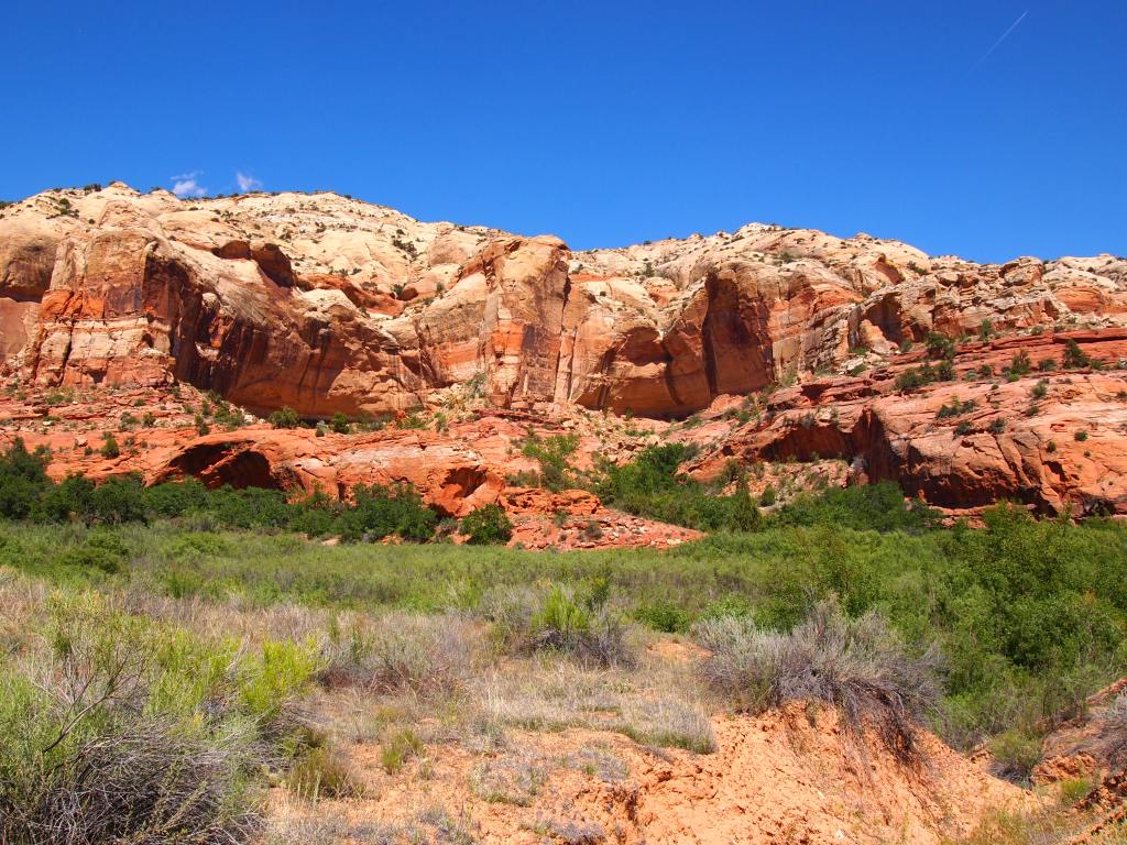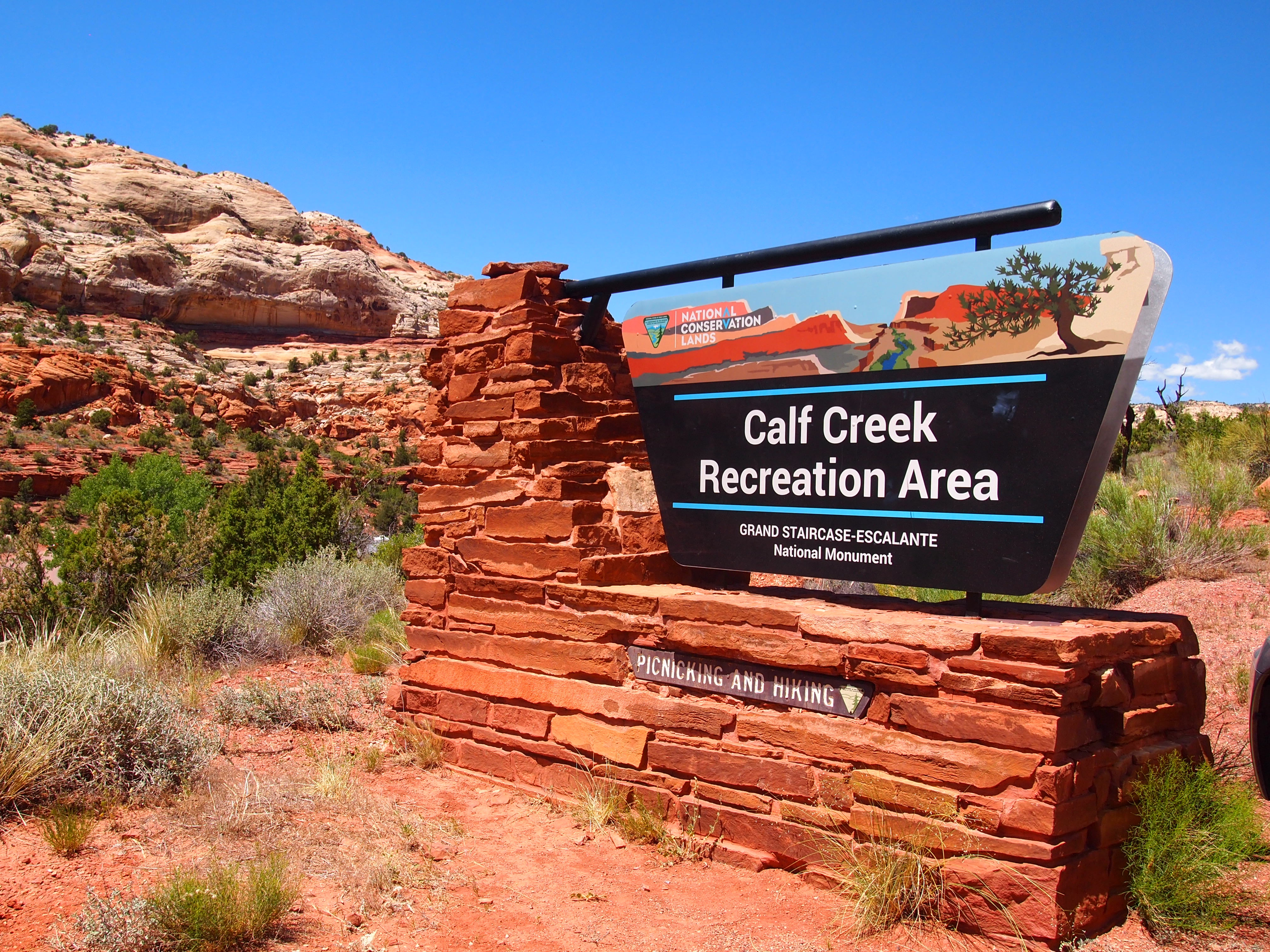 Since we spent Sunday morning hiking on Boulder Mountain, we only had time to do one hike in Grand Staircase-Escalante (GSENM). We chose to do Lower Calf Creek Falls on the recommendation of a colleague of mine. The hike is 6 miles RT – not a loop unfortunately – and located just off Byway 12. We decided to grab lunch in Boulder first and do the hike in the afternoon.