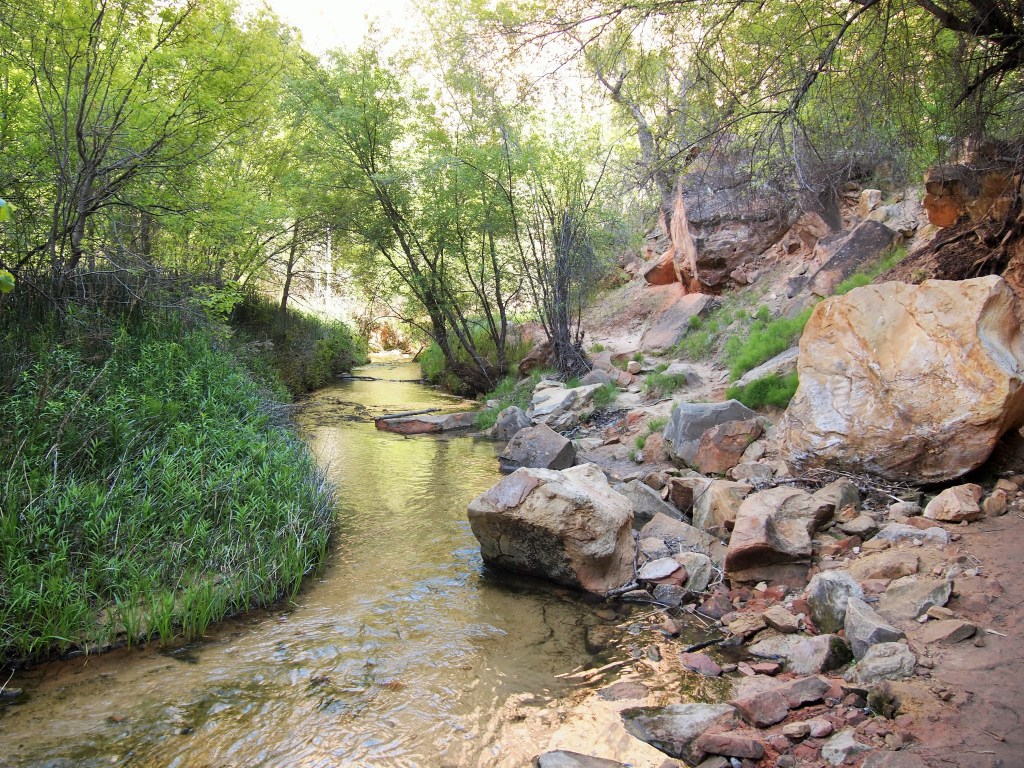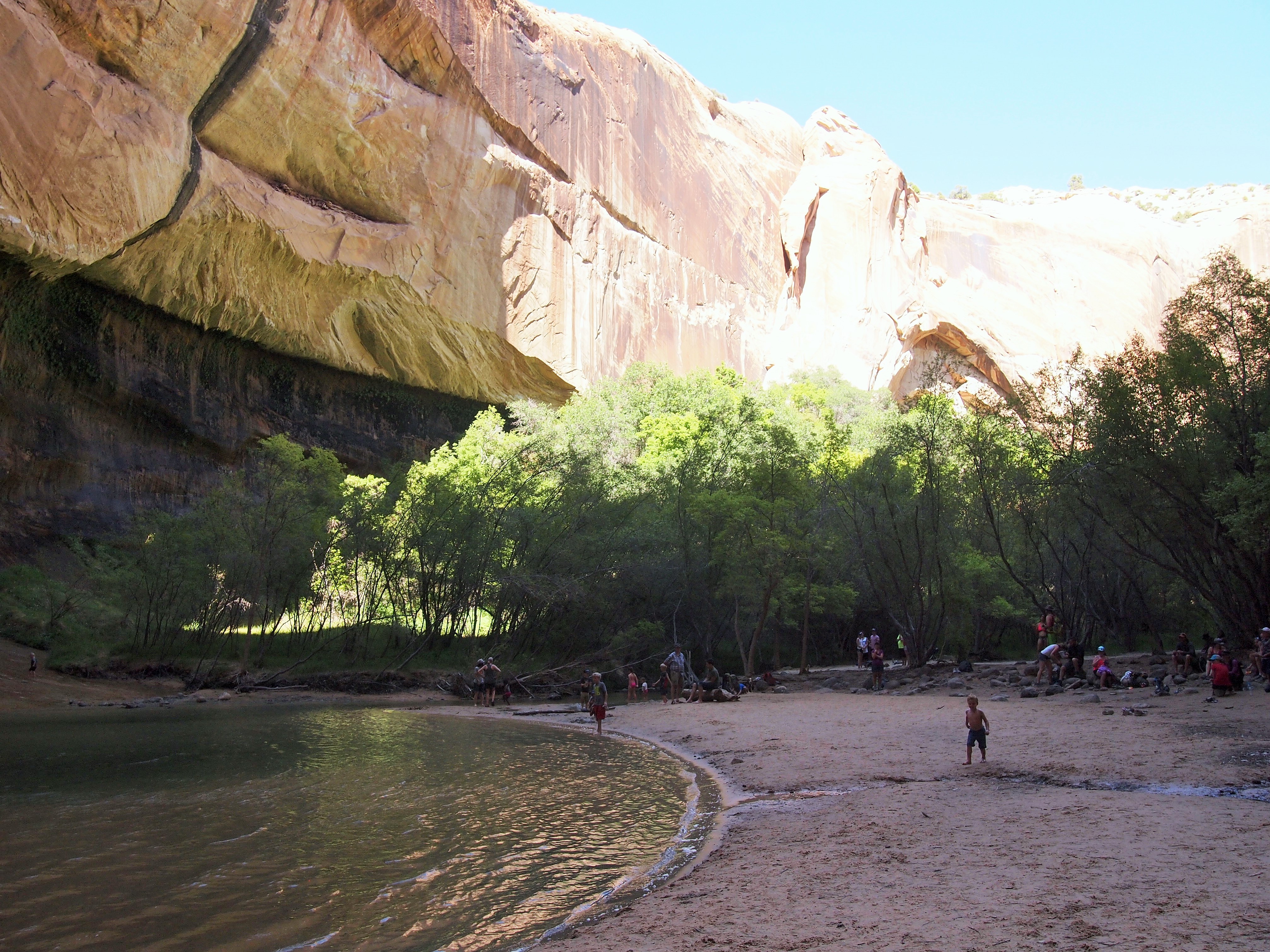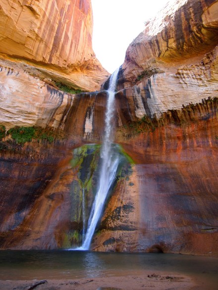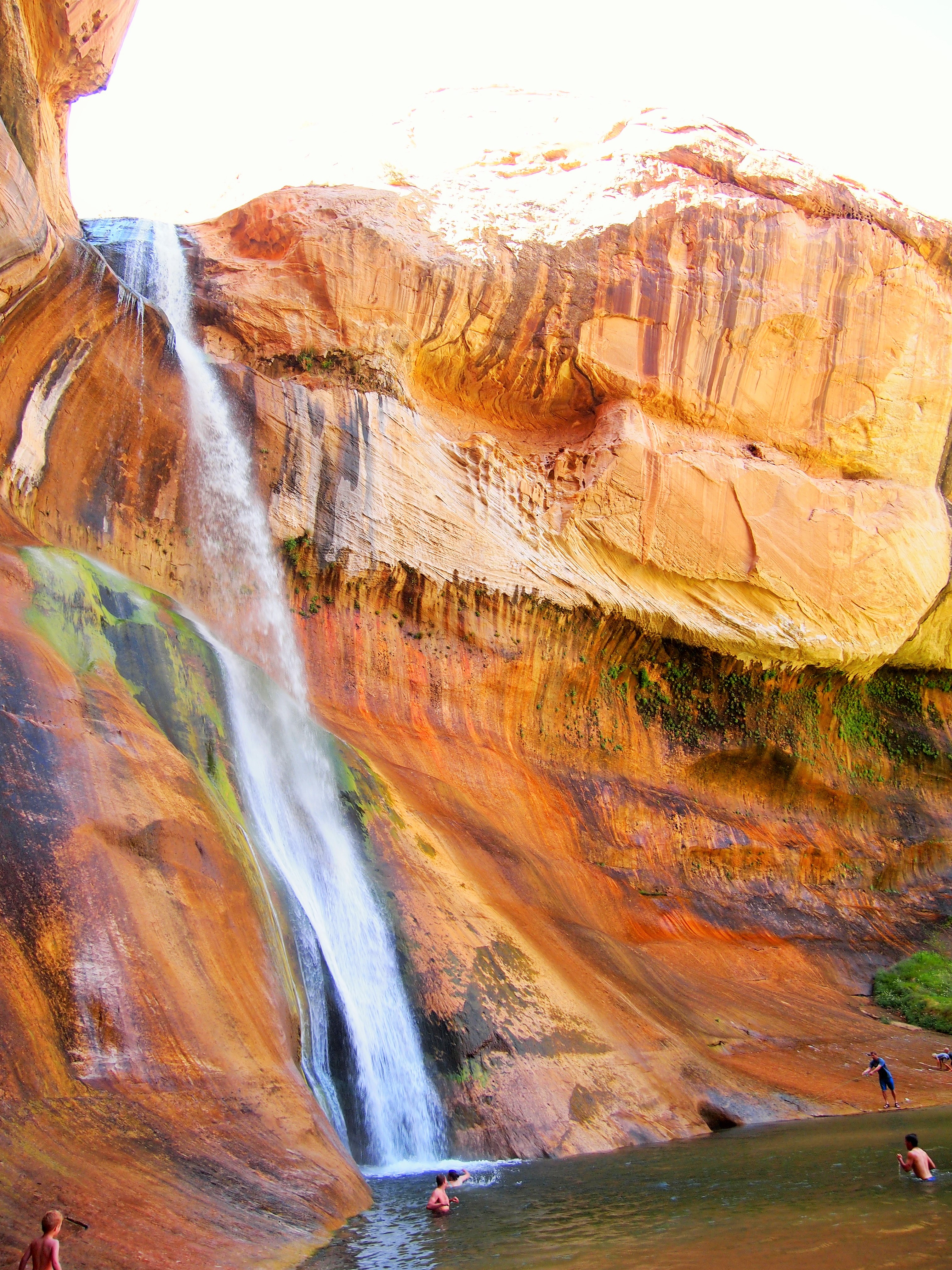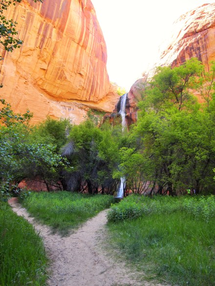 The hike itself wasn’t my favorite. At the beginning much of the trail snakes up and over slickrock but when the trail brings you to the canyon floor, it becomes sand, a deep irritating sand. There are a few points where the trail hardens, but for the most part you end up walking on a narrow sandy path. We were also there on Memorial Day weekend, so I’m sure we had to contend with more visitors than usual, although from what I understand any weekend brings multitudes to this trail. While the allure of the waterfall at the end kept my spirits up on the initial 3 mile journey, by the time we were in the 5th mile, I was ready to be done with this hike. I will give this hike credit where it is due – the 120 ft. waterfall at the end is quite a stunner.