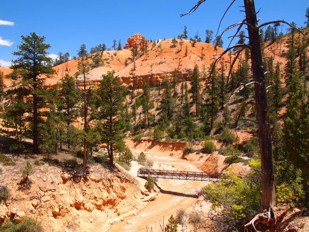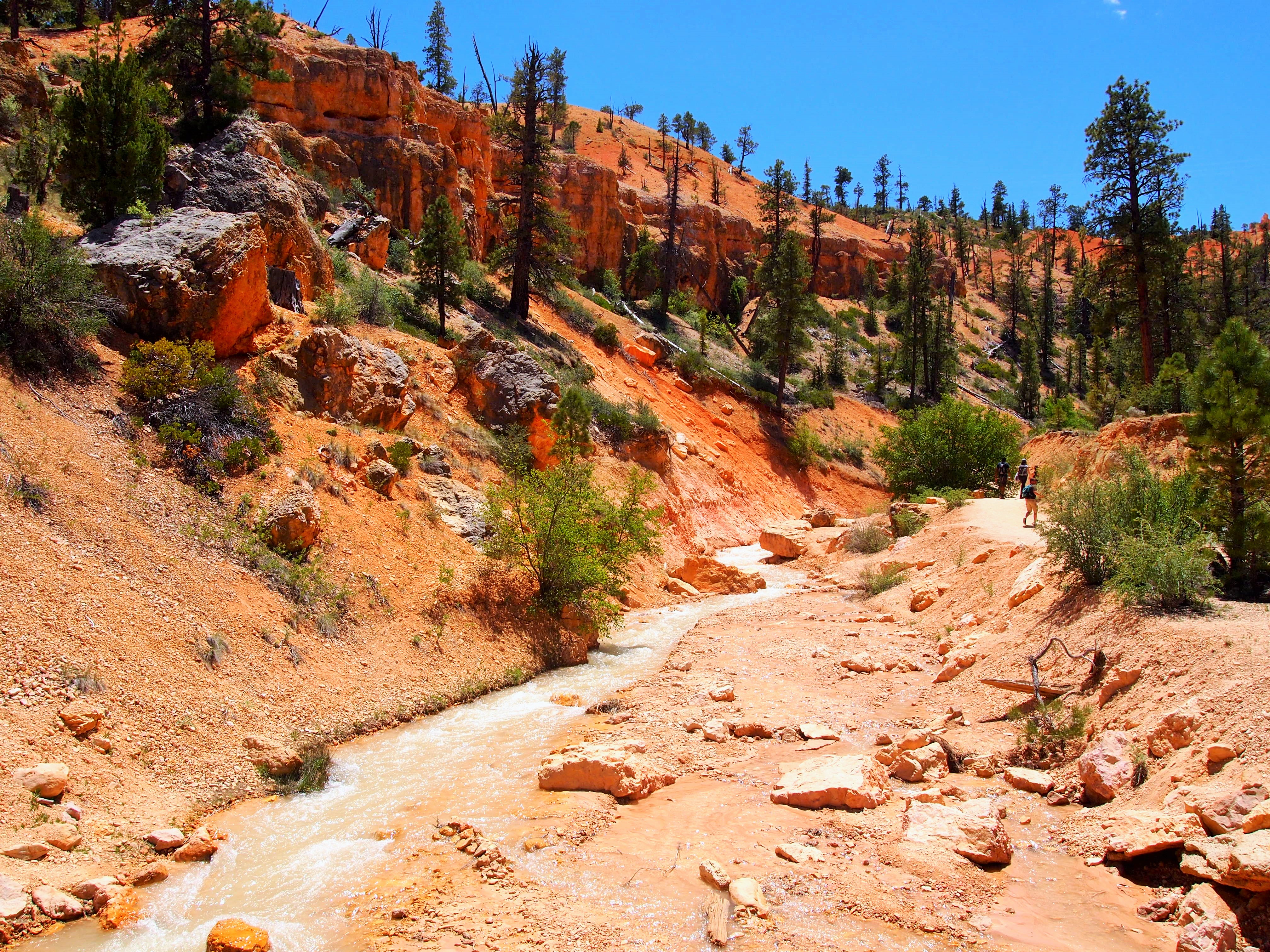 The trail leads hikers from the parking lot to what appears to be a creek running through Water Canyon. The creek is actually the Tropic Ditch, a irrigation canal created by Mormon pioneers in the 1890s. The canal brings water from the East Fork of the Sevier River to the communities of Tropic and Cannonville.