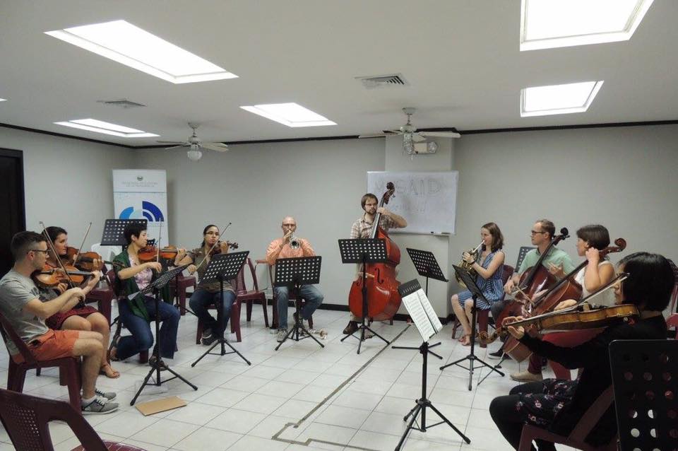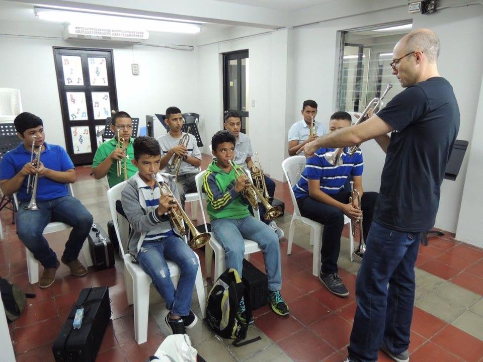 I recently returned from the capitol city of San Salvador where I spent two weeks working with music students in the local El Sistema program. El Sistema was founded in Venezuela in 1975 as a music education project that could promote social change and provide youth with weekly specialized training in classical music. It has spread around the world and currently consists of 400 music centers and 700,000 students. The music director of the Los Angeles Philharmonic, Gustavo Dudamel, is one of the notable success stories out of the Venezuelan program. El Salvador’s center is funded by the Minister of Culture, and we met with a representative from their office during our visit. I was awarded a Teaching Fellowship through the MusAid Organization, a nonprofit that has established music education workshops in several developing countries. They are not directly tied to El Sistema but do enjoy a close relationship with many institutions that support the orchestral training program. My team was composed of eight teaching fellows from around the world, a guest faculty artist, an instrument repair technician, and a filmmaker collecting footage for a future documentary.