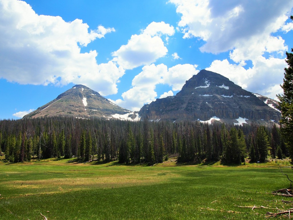 We stopped at Kamas Lake for our lunch and enjoyed a little break by the water before beginning the final portion of our hike. The last half was mostly downhill, though the trail prevented us from going too quickly at first as it was a steep collection of loose rocks and gravel. We wound our way through a nice shaded forest before coming to Reids Meadow which provided a perfect panorama of Bald Mountain and Reids Peak. Then it was a short way back over babbling streams and a couple felled trees to the parking lot.