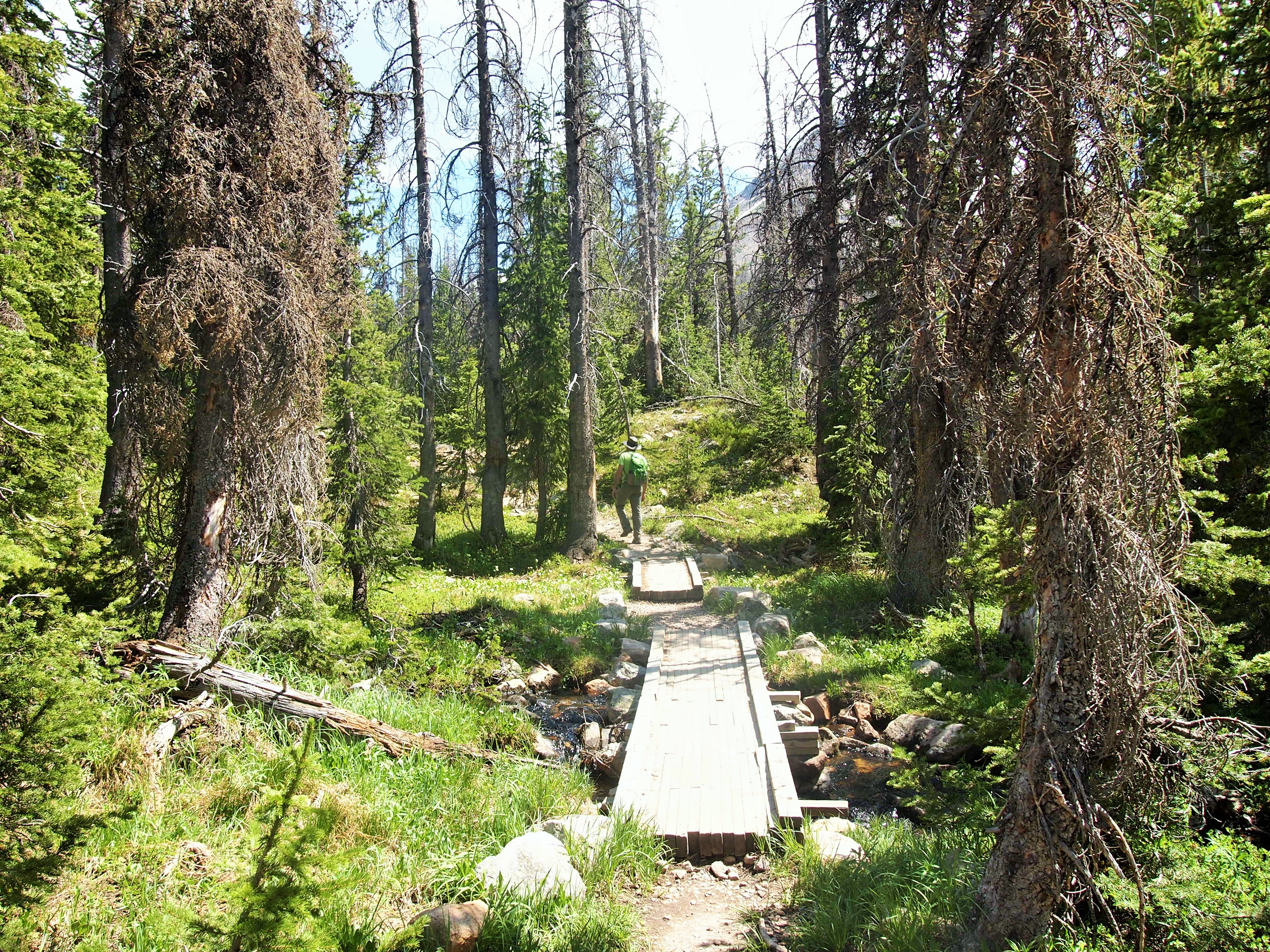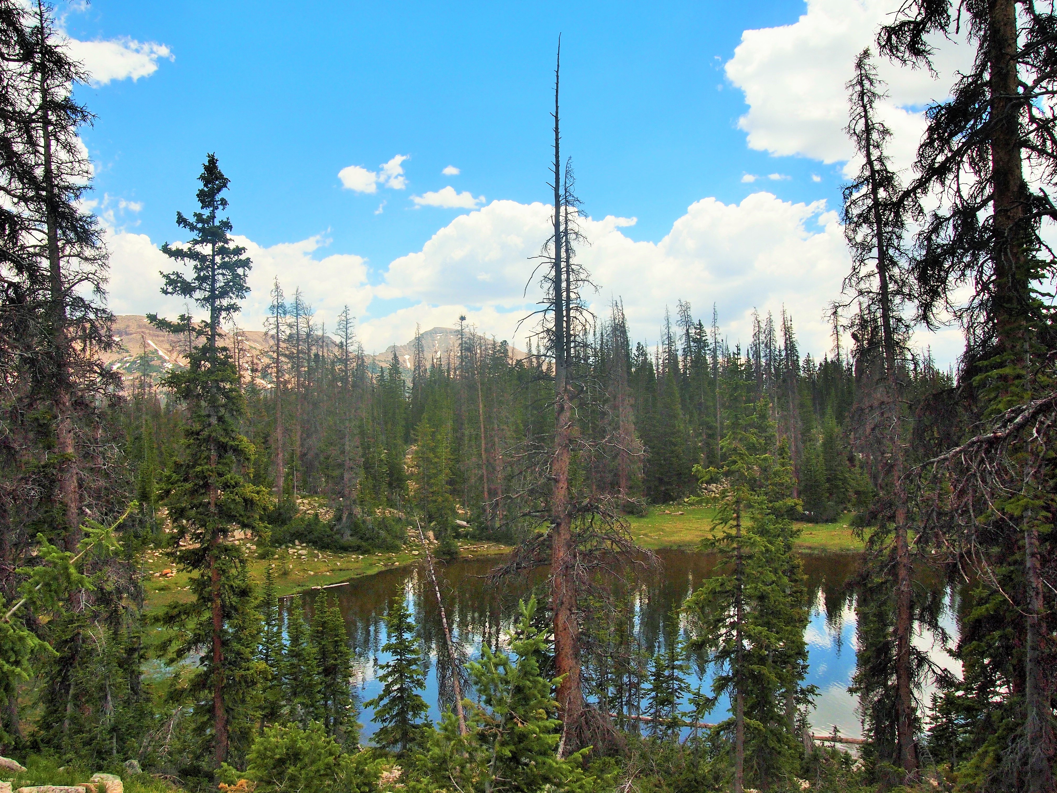 We stopped at Kamas Lake for our lunch and enjoyed a little break by the water before beginning the final portion of our hike. The last half was mostly downhill, though the trail prevented us from going too quickly at first as it was a steep collection of loose rocks and gravel. We wound our way through a nice shaded forest before coming to Reids Meadow which provided a perfect panorama of Bald Mountain and Reids Peak. Then it was a short way back over babbling streams and a couple felled trees to the parking lot.