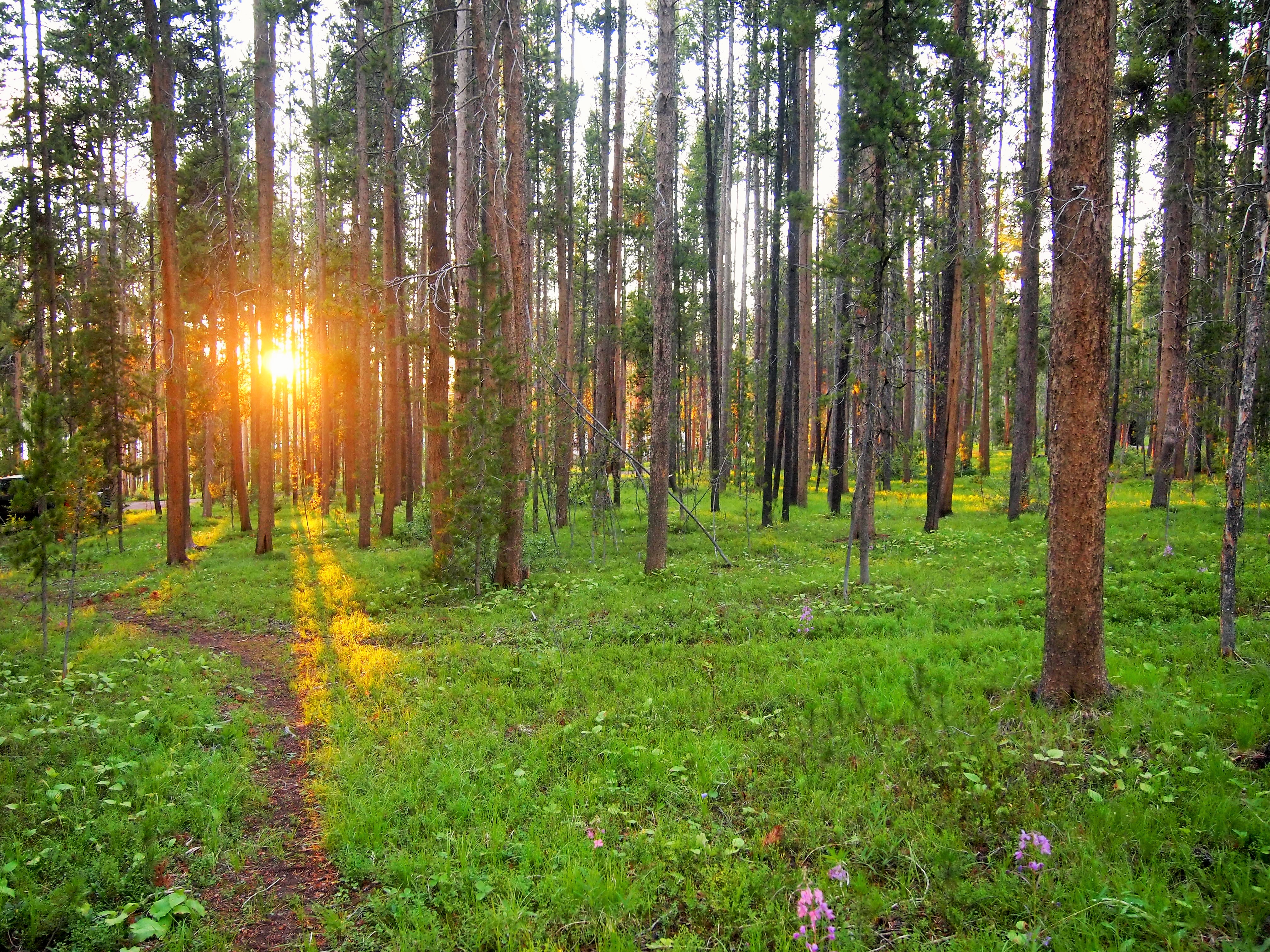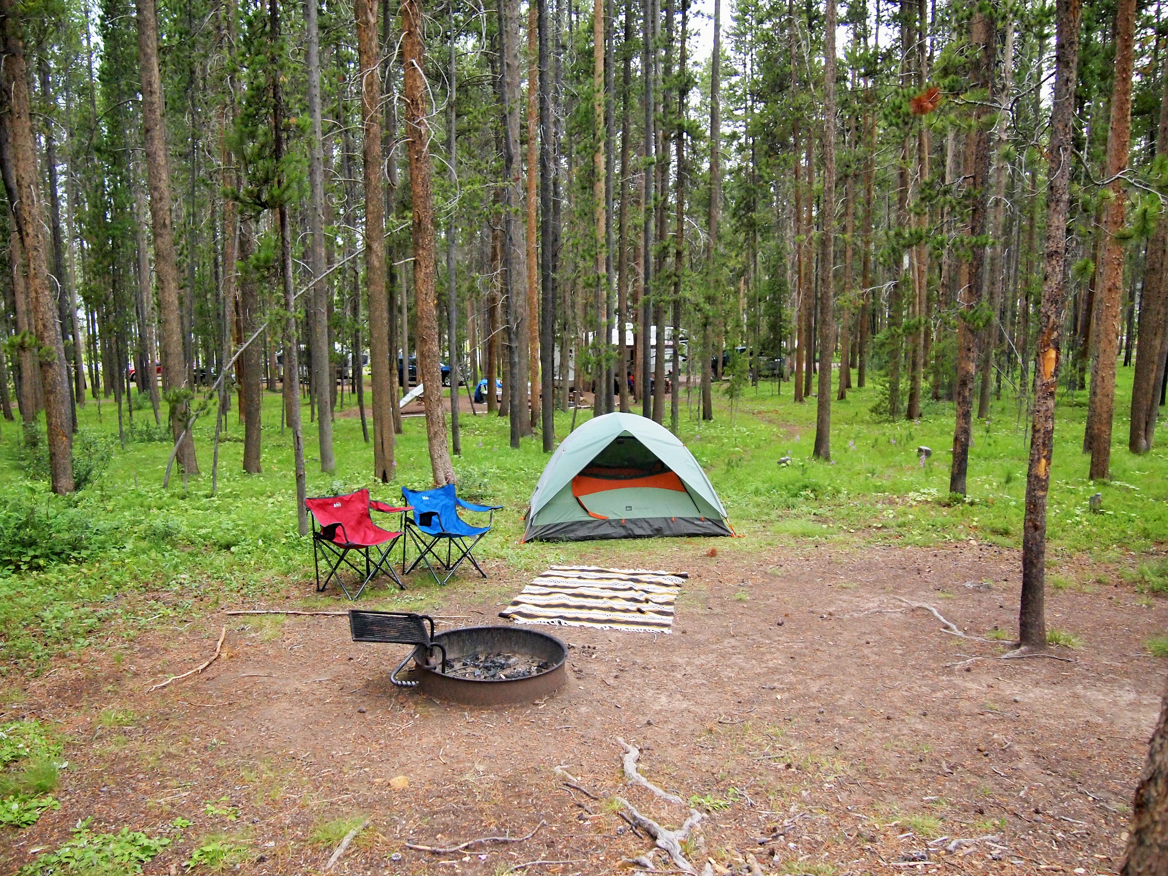 As we left town it started to rain and only got heavier as we went deeper into the forest. Again, we hadn’t made a campsite reservation, but were happy to find a site on our first try, maybe the rain aided us. It was still raining when we pulled into Lodgepole Campground, aptly named as each campsite was nestled among thin towers of lodgepole pines. We found a spot and I walked back to the entrance to pay the fee. On the campground bulletin board I encountered a warning about recent bear activity – hooray? We’ve camped in bear country many times now, but to know that bears have been recently active in your campground is slightly unsettling. Oh well. I had already paid; we were gonna stick it out – we keep a clean camp, plus Truman would warn us, right?