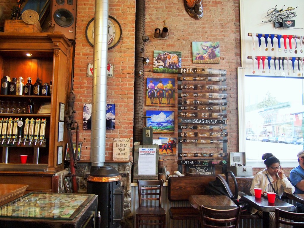 Though I would have been happy to relax in the rain, we do not have a canopy – it may be time to invest in one. So we decided to drive farther along Hwy. 1 – Pintler Veterans Memorial Scenic Highway – to Philipsburg where Zach knew there was a brewery. Though it was still raining when we arrived in town, the temperature was beautifully cool. Truman stayed behind in the car to nap, and we went to have a couple pints at Philipsburg Brewing.