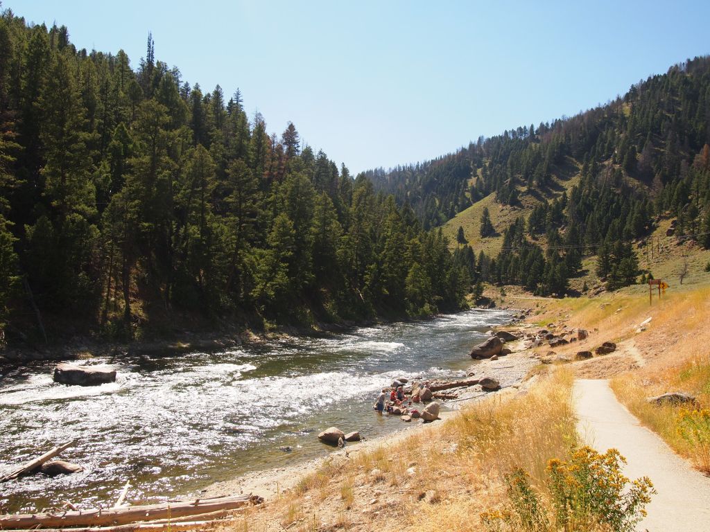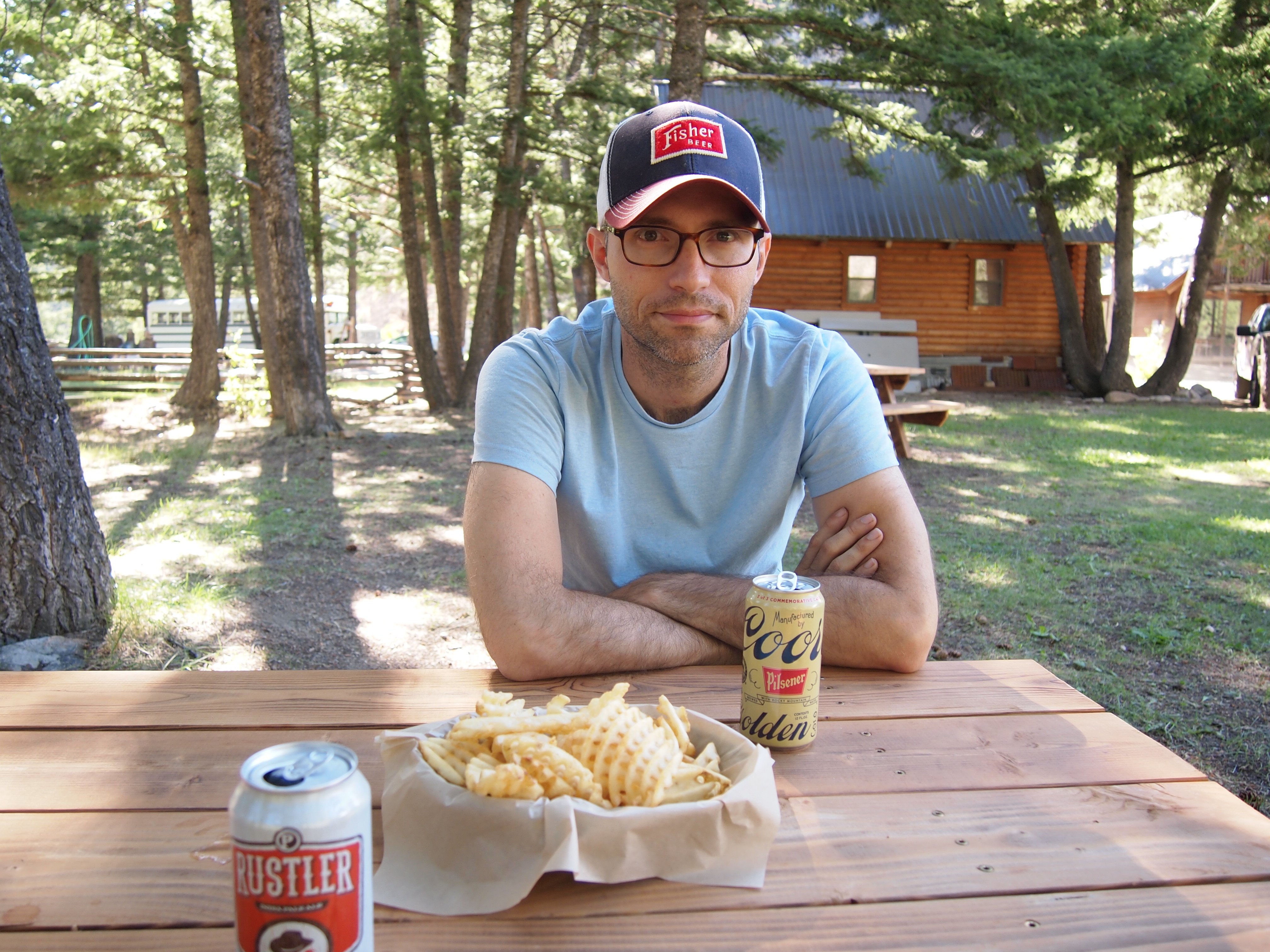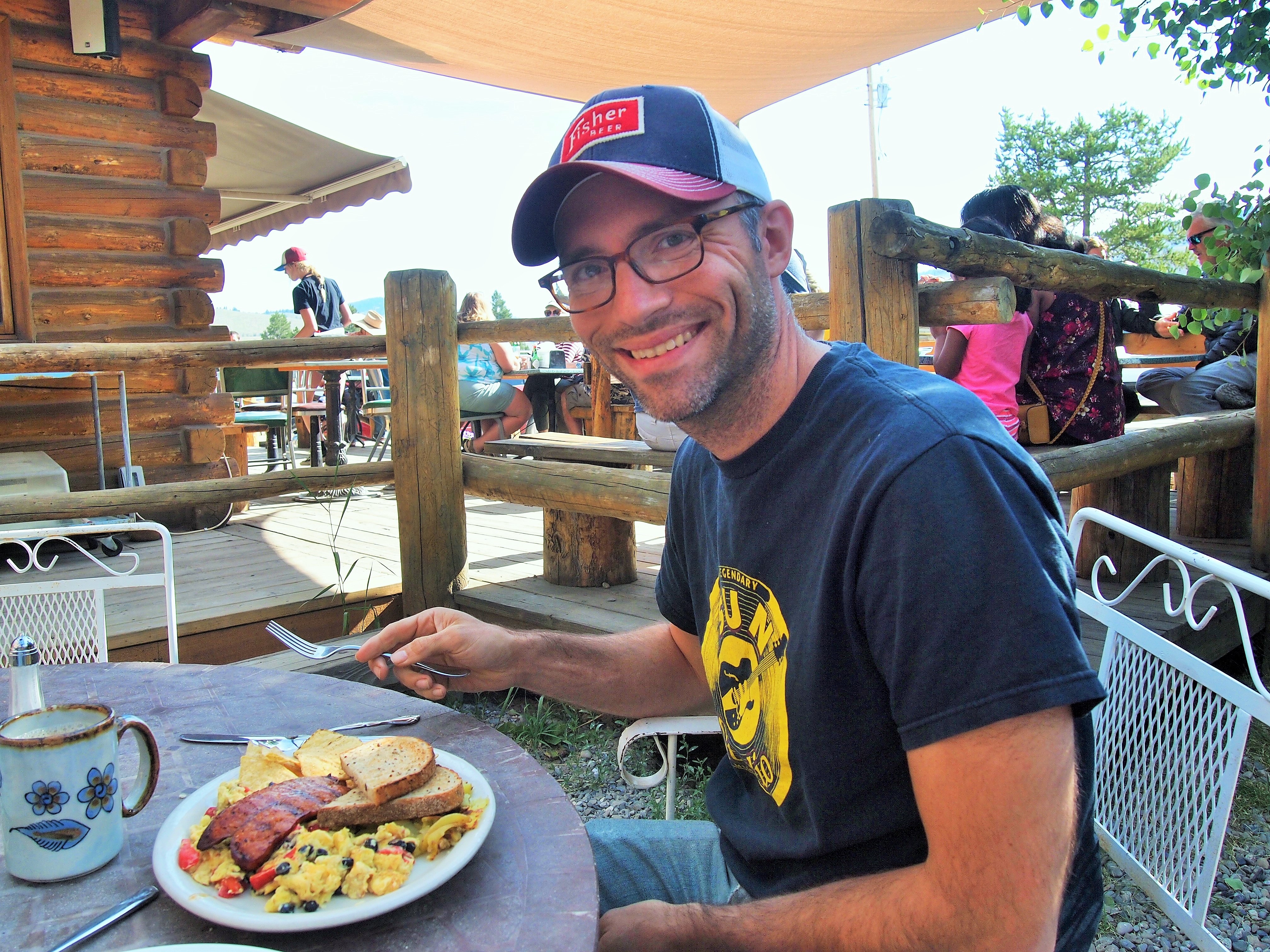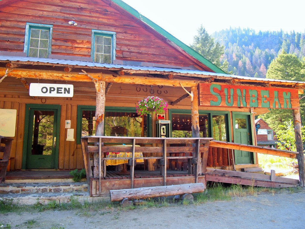 Of course, this section of Hwy. 93 is just as spectacular. Along the way we stopped at a couple pull-outs for Zach to practice trumpet, to look at Sunbeam Hot Springs, and to read about the history of the area. Rather than go all the way to Challis, we ended our drive at Sunbeam Village, a nice area above the confluence of the Salmon River and Yankee Fork. There we sat at a picnic table under the trees at the Sunbeam Grill and had maybe the best waffle fries we’ve ever had, coupled with hands–down, the best fry sauce either of us have ever had. Wow.
