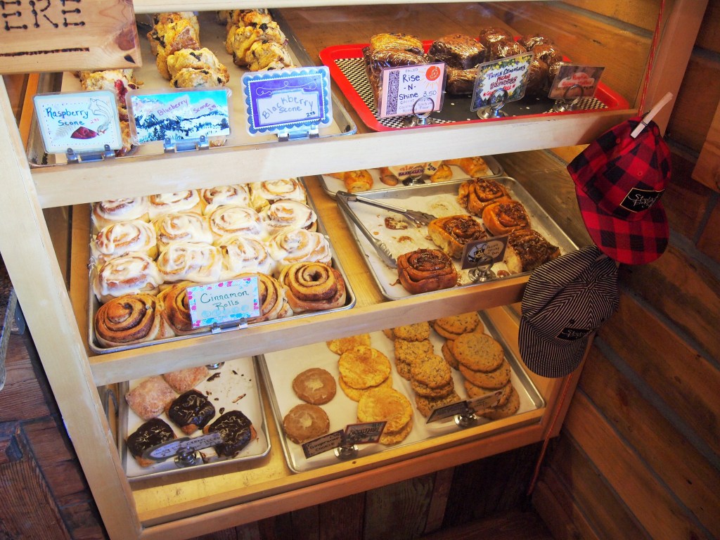 Our last morning, we got up and packed up our site because we wanted to have breakfast at Stanley Baking Company. Though they do not allow dogs on their patio, the temperature in the morning was cool enough that we could leave Truman in the car for a nap. Stanley Baking Company always has a line, but we seemed to time it well and waited from the door rather than down the long ramp. Everything on their menu sounded incredible so we decided to get two dishes to share – the Basque Scramble and a half order of the biscuits and gravy. I caved and got a blackberry scone to save for the car ride. (It ended up being incredible.)