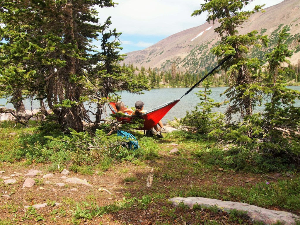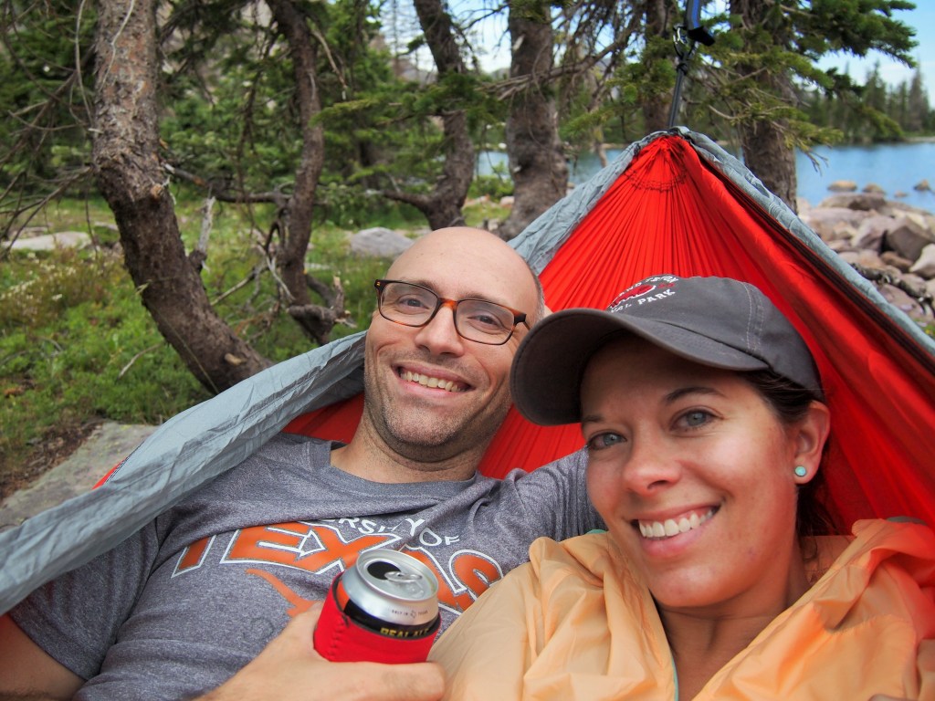 I was so happy to reach the lake. We were tired, hungry, and ready to rest. Amethyst Lake sits in the bottom of a giant basin which Zach called a cul-de-sac of mountains. We walked around the perimeter of the lake looking for a good spot to set up our hammock and found a nice lakeside spot on the northwest side. We strung up our hammock, chilled our beers in the lake, and broke out our lunch. We spent two hours resting by the lake taking it all in. There were some fishermen and backpackers when we first arrived, but they cleared out shortly after we set up and soon we were all alone.