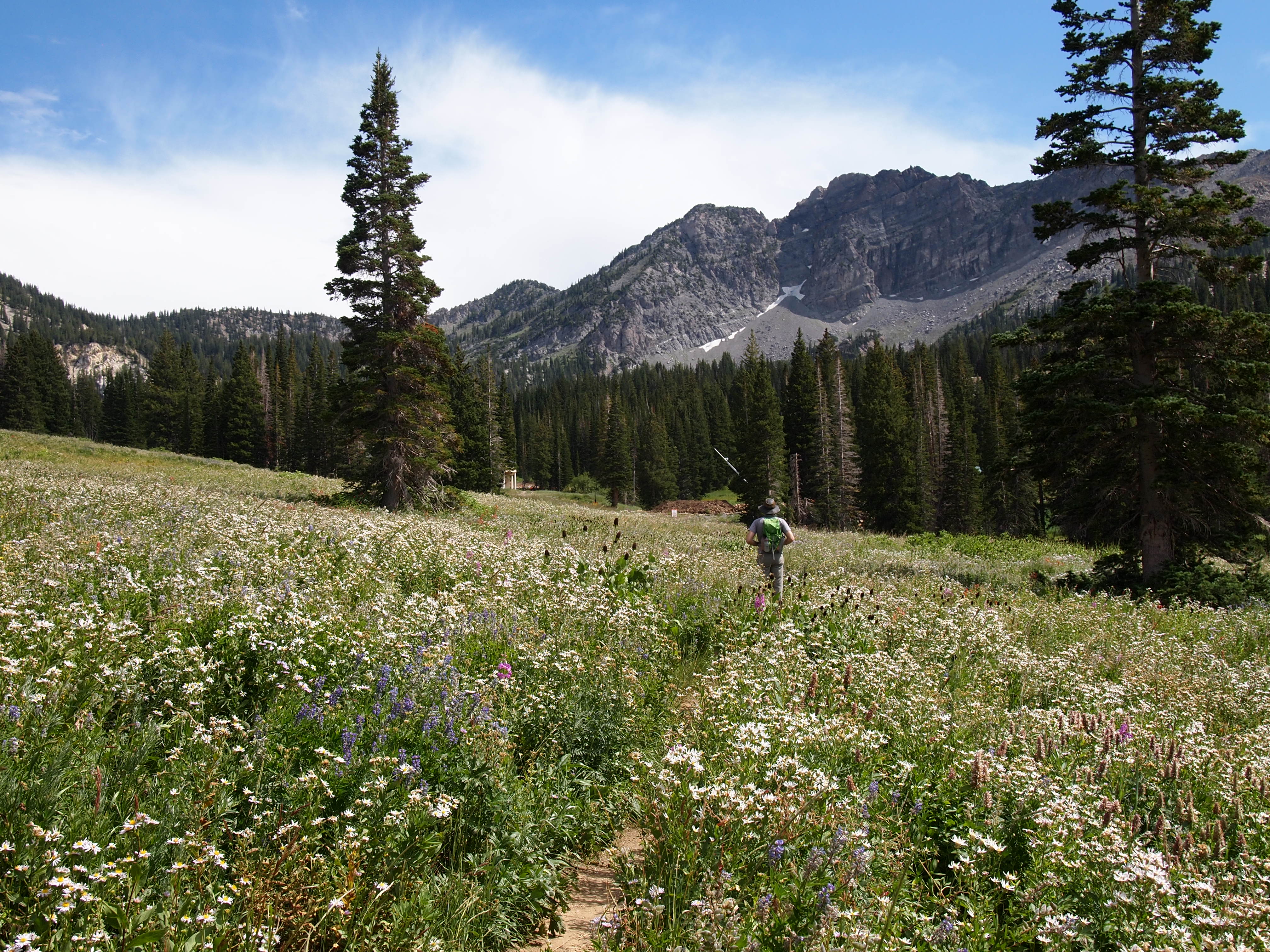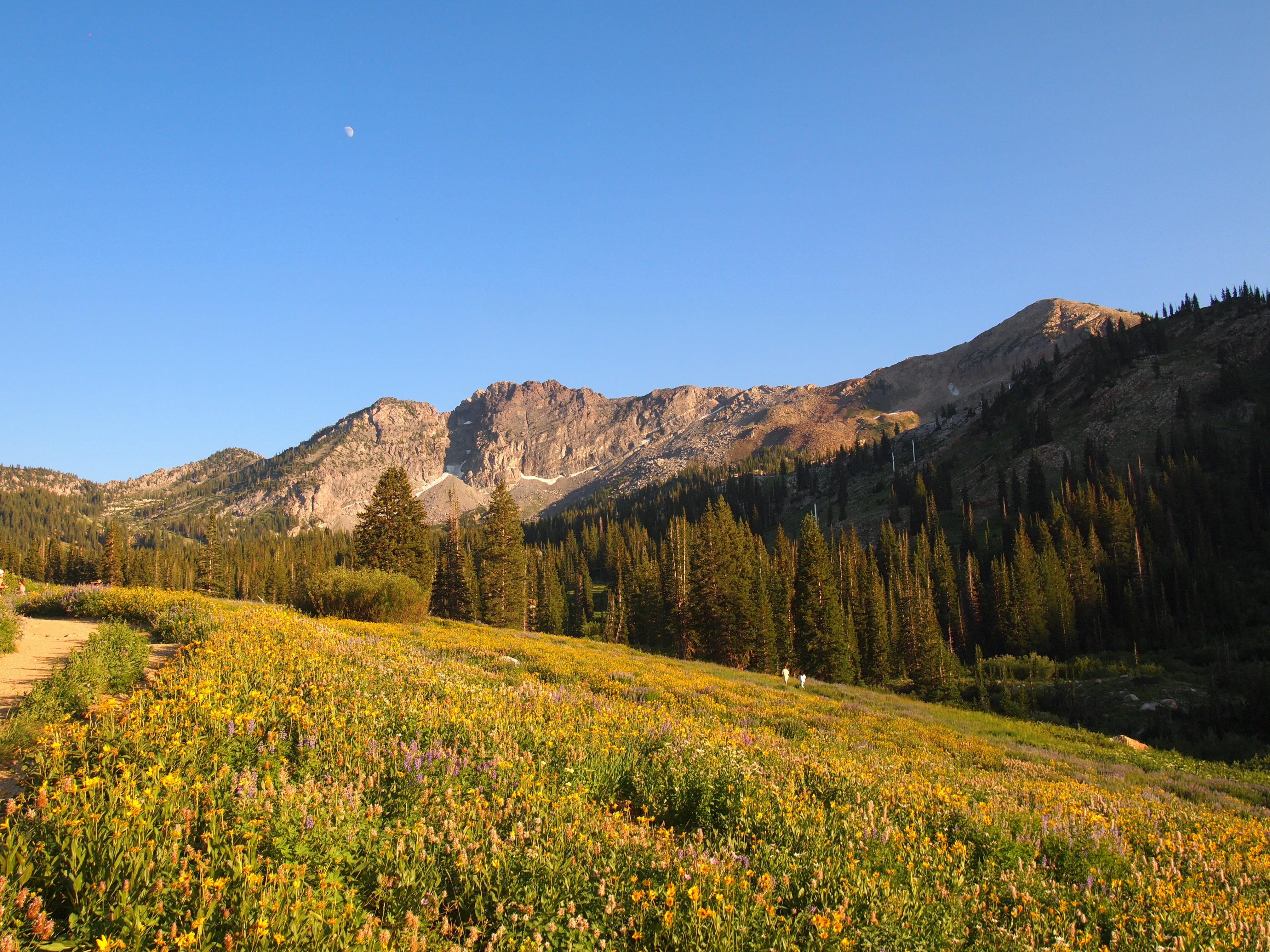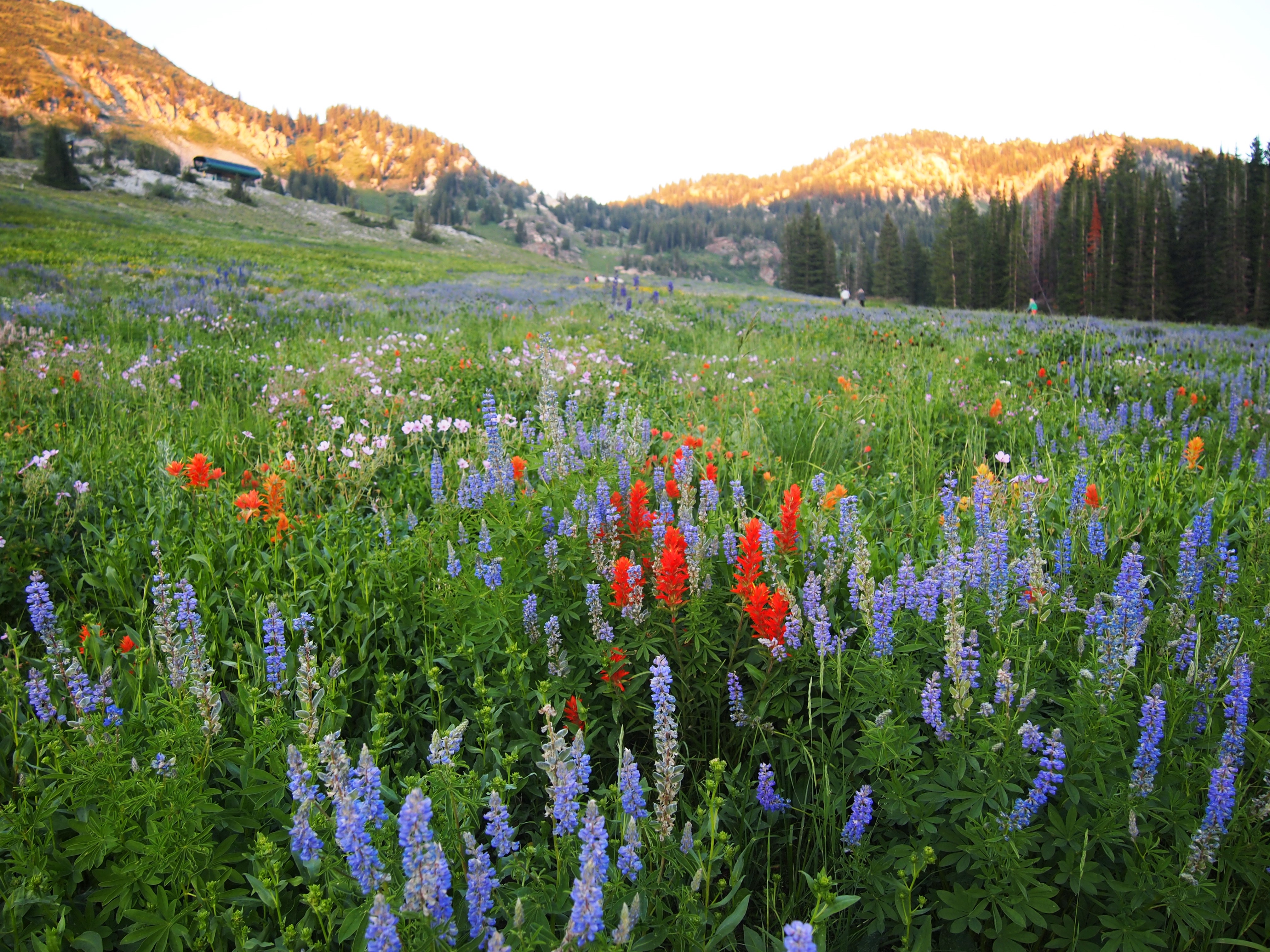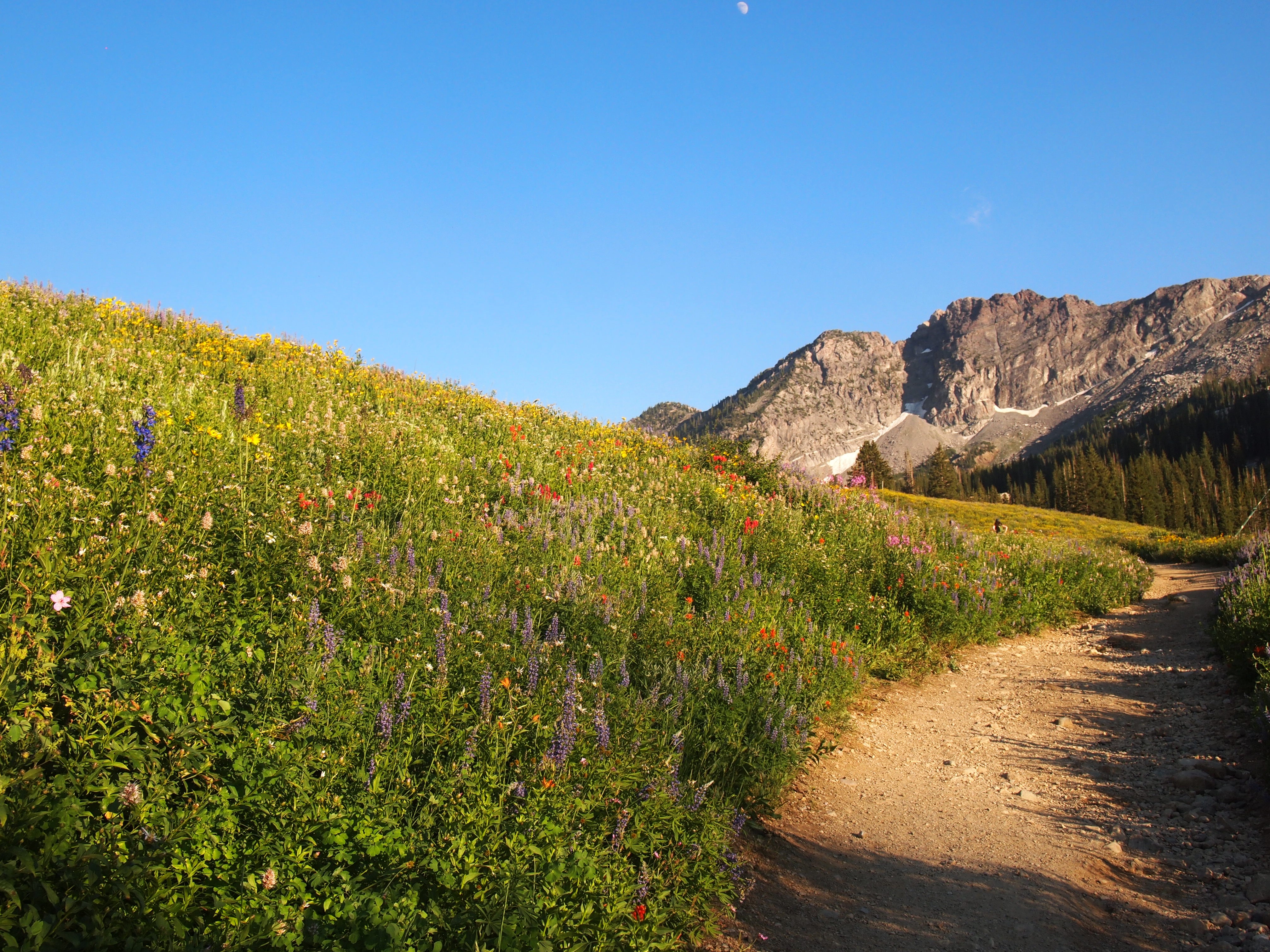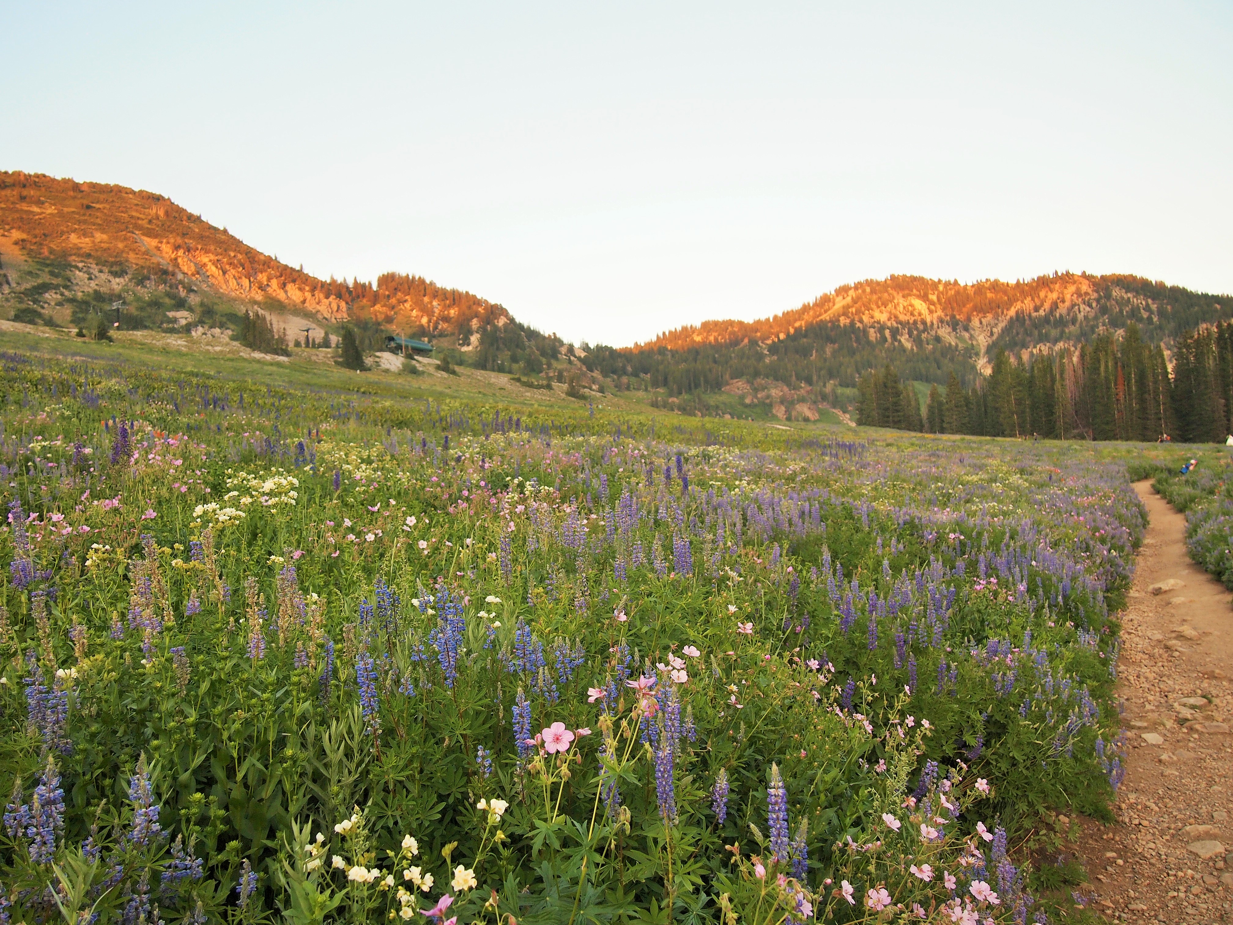 Last year we completely missed wildflower season in the Wasatch. I honestly can’t recall what we were doing, probably acclimating to a new city, new school, etc. – boring stuff. Peak wildflower season is at the end of July, early August, and the one place everyone goes is the Albion Basin at the top of Little Cottonwood Canyon. I didn’t want to miss out, but had heard that weekends were horrifically crowded, so we decided to go on a Tuesday night instead. We were initially going to do the hike to Cecret Lake only, but since the trailhead parking lot was full we ended up starting at Upper Albion Meadows. Wow, I’m so grateful we did! The hike through Upper Albion Meadows was far more spectacular than Cecret Lake. The meadows were bursting with flowers, especially lupine. I was basically a giddy child walking through the meadows. We did go to Cecret Lake, but I found it a little underwhelming. In hindsight, we could have simply hiked through the meadows and been more than content.