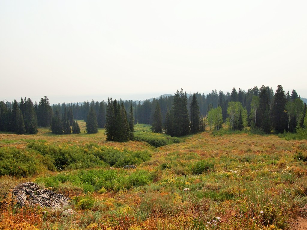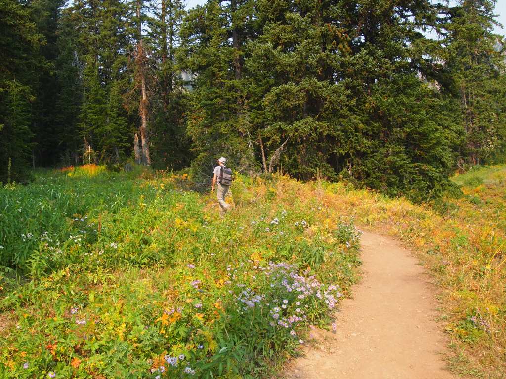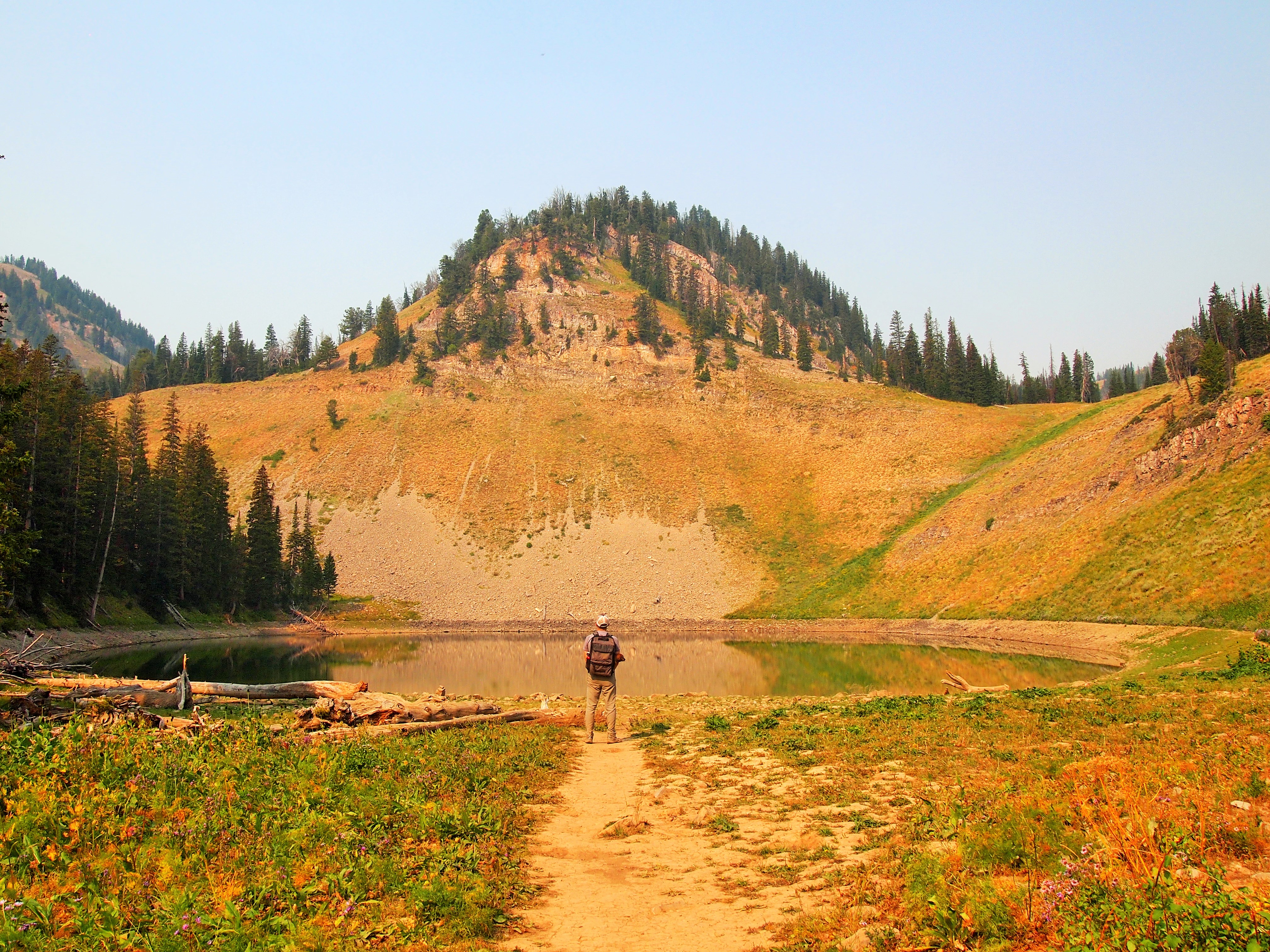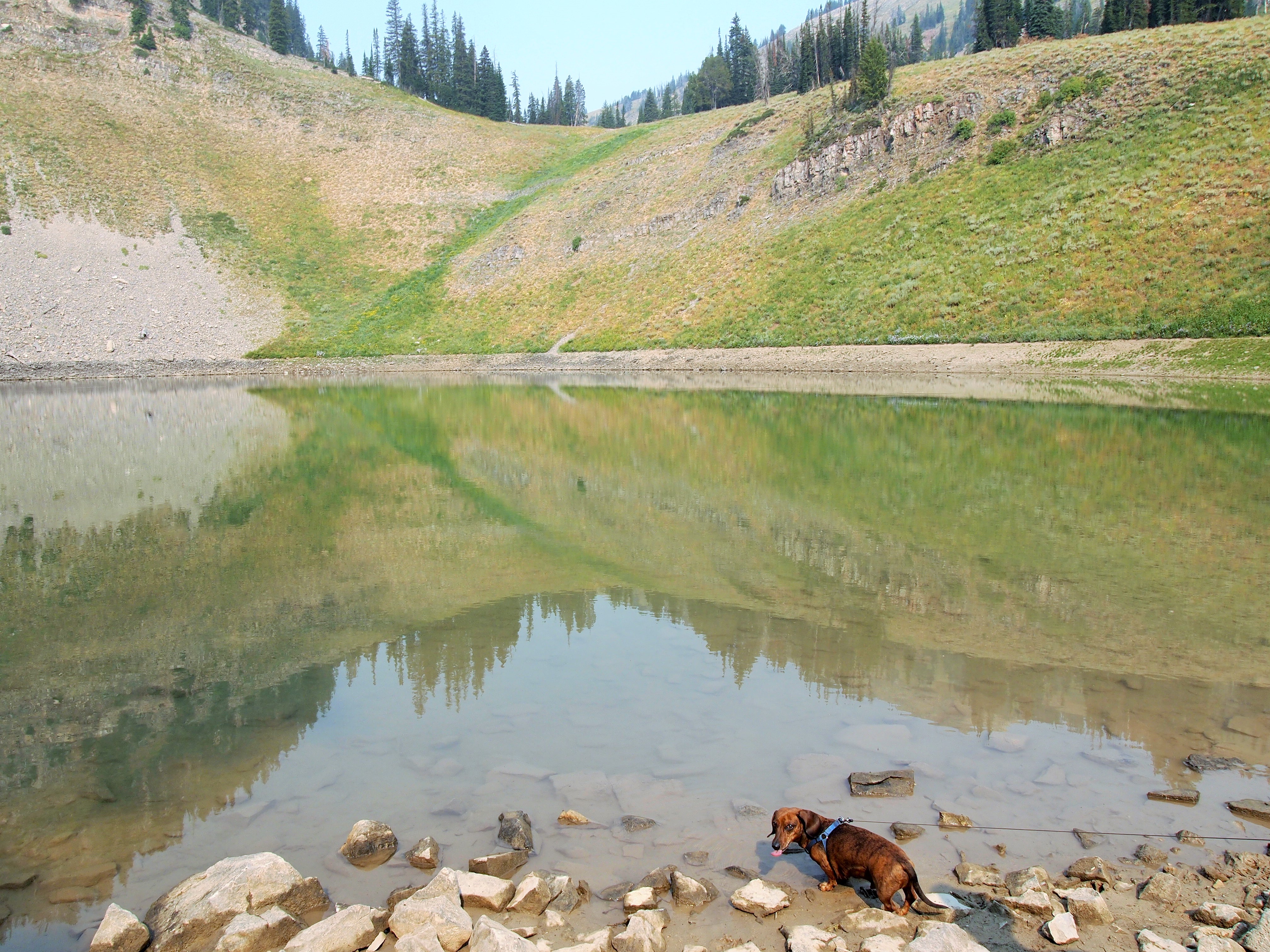 The hike up, 1,000 feet of elevation gain aside, was really lovely. Even though Grand Teton NP is just up the way, the landscape felt strikingly different. The trail led us through lush greenery, open meadows, wooded respites, and alongside a creek. We passed several people and dogs along the way, but when we made it to the lake, we had it entirely to ourselves.