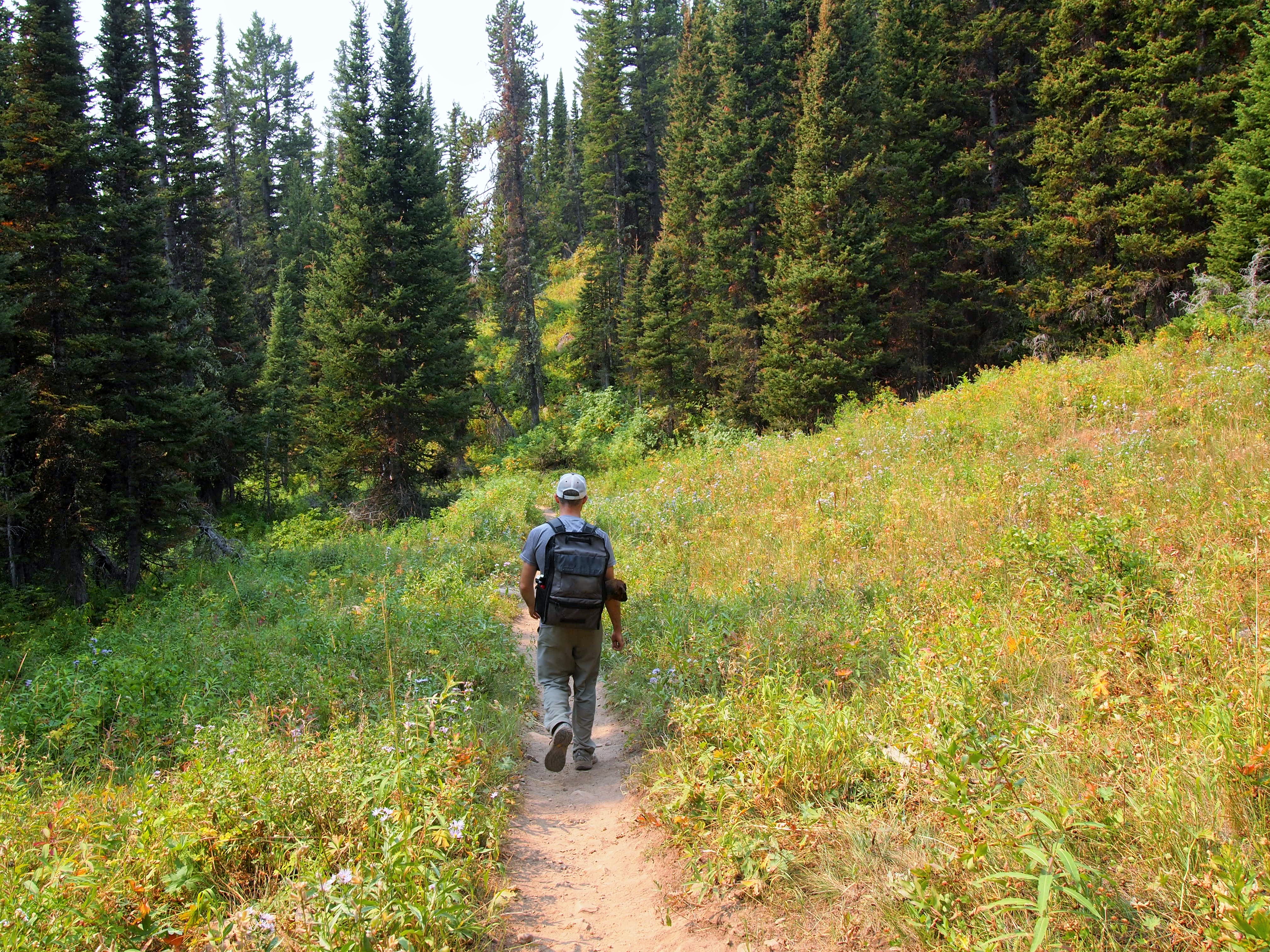Since Ski Lake is located in the Bridger-Teton National Forest, Truman was able to hike along with us! But we were a little pressed for time. We started just after 10am and figured it would take us 2 hours total for the 4 mile round trip hike. So, in the interest of time and incline, Truman had to ride the entire 2 miles up in his backpack. This time, I let Zach experience the pleasure of carrying Tru with the reminder that I carried him for EIGHT miles in Idaho…