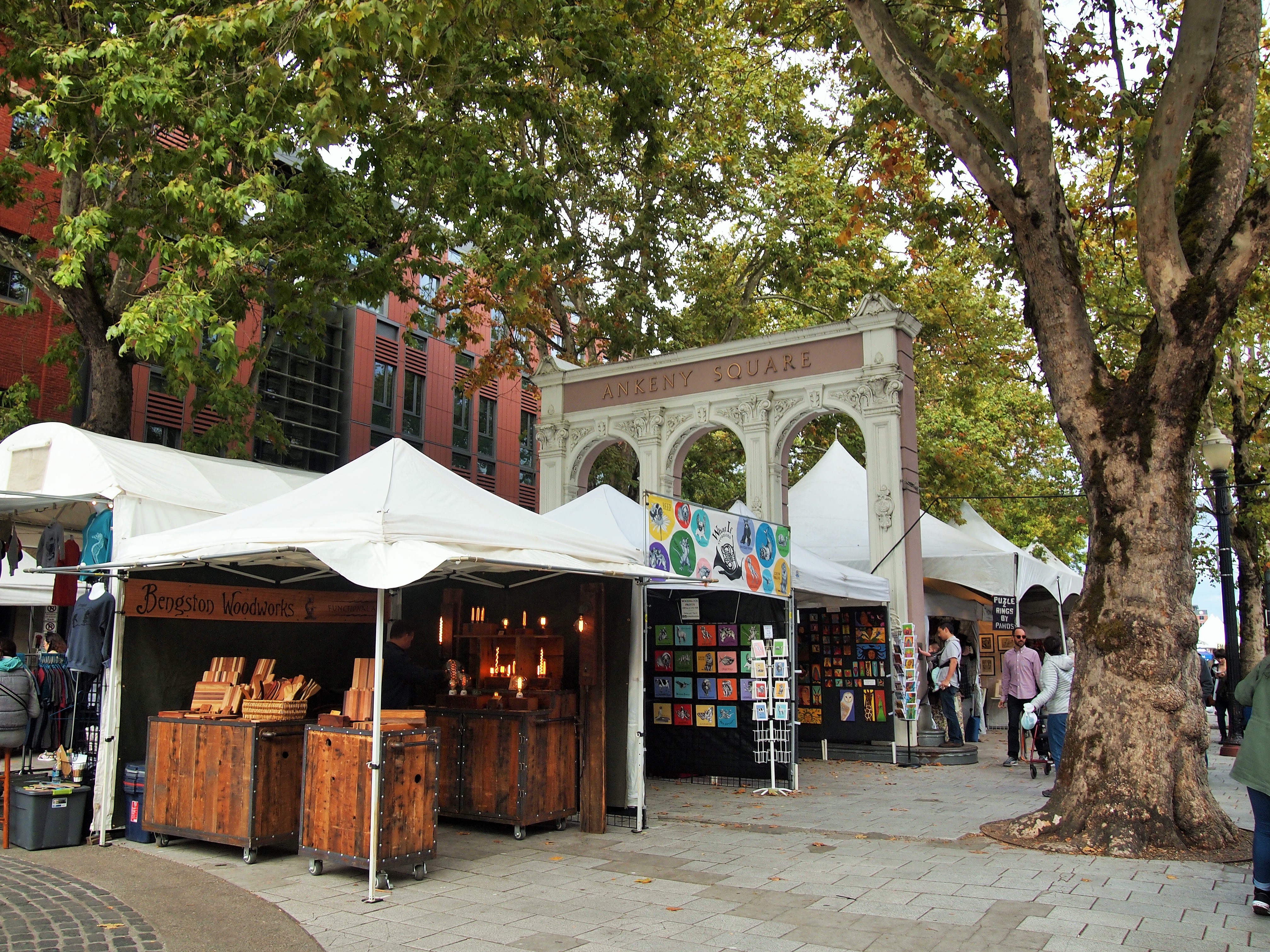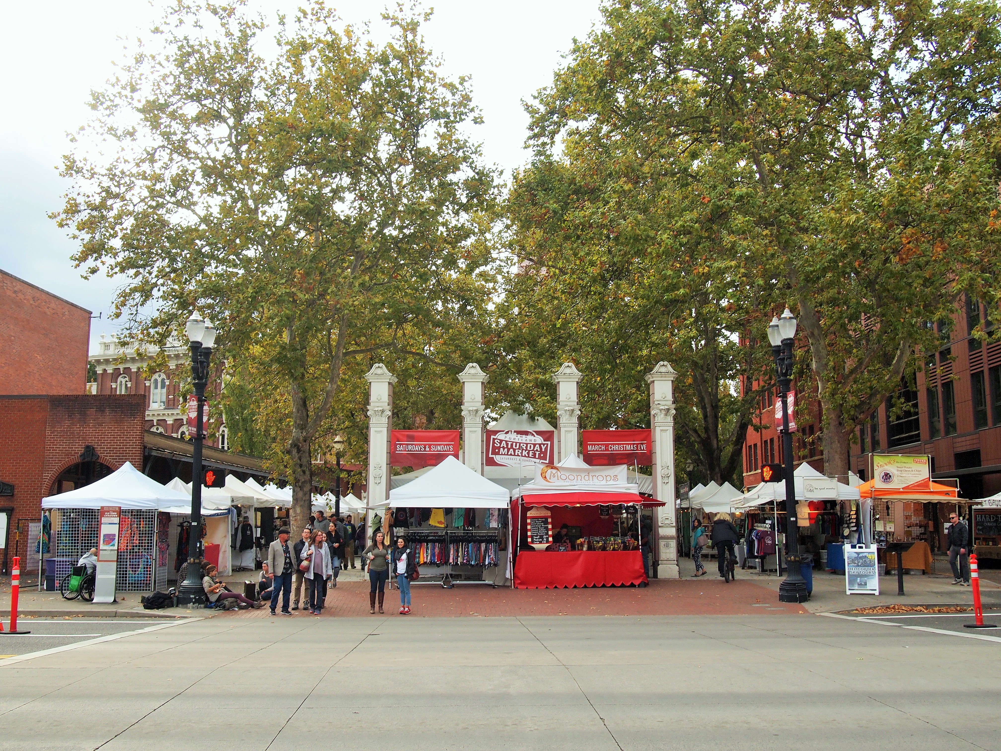 The Saturday Market, located off the Willamette River in Waterfront Park and adjoining Ankeny Plaza, has been in operation since 1974. It’s the largest and longest running arts and crafts market in the country. Though, contrary to its name, the market is held on Saturdays and Sundays. We ambled through the stalls admiring eclectic spoon and fork designs, wood carvings, and snarky t-shirts before leaving empty-handed in the direction of Powell’s.