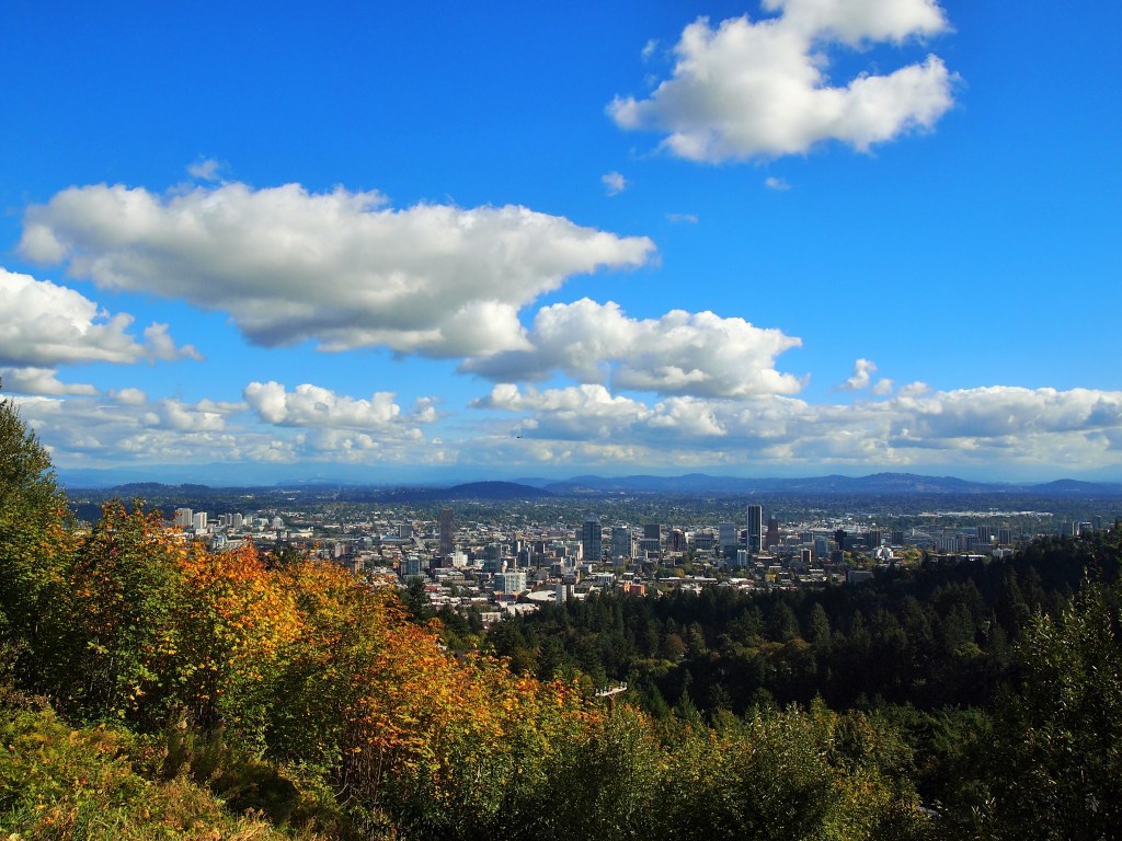 On Sunday morning, we started with a filling breakfast at City State Diner. Though drizzling on our way to the diner, the weather soon cleared into a beautifully sunny day. After breakfast we ventured over to Washington Park on the western side of the city. Washington Park is one of Portland’s oldest parks. It was originally designated the City Park in 1871 when it covered only 40 acres of land; today it totals 410 acres and houses many of Portland’s attractions: The Oregon Zoo, Hoyt Arboretum, The International Rose Test Garden, The Portland Japanese Garden, The Portland Children’s Museum, and The World Forestry Center.