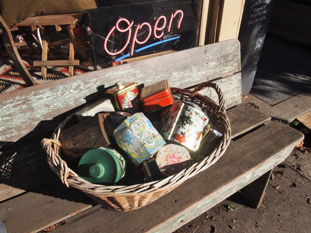 Instead of going all the way back to the arboretum, we took the Wildwood Trail down to Burnside St. and caught a bus. Next up on our agenda: antique stores in Sellwood. Once its own town, the Sellwood-Moreland district is known for streets lined with antique stores. We thought Sunday would be the perfect day to stroll along and duck into whichever stores caught our fancy. Unfortunately, we arrived a little late in the afternoon so we were short on time, but we were still able to make the most of it. Certainly a return trip will be in order.