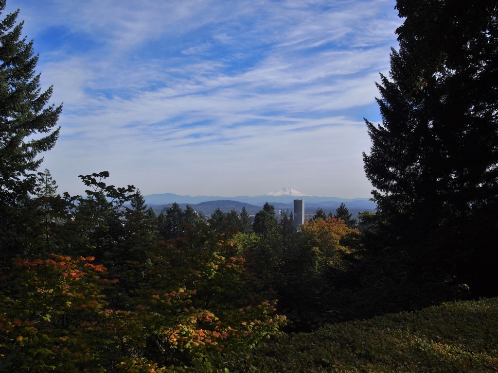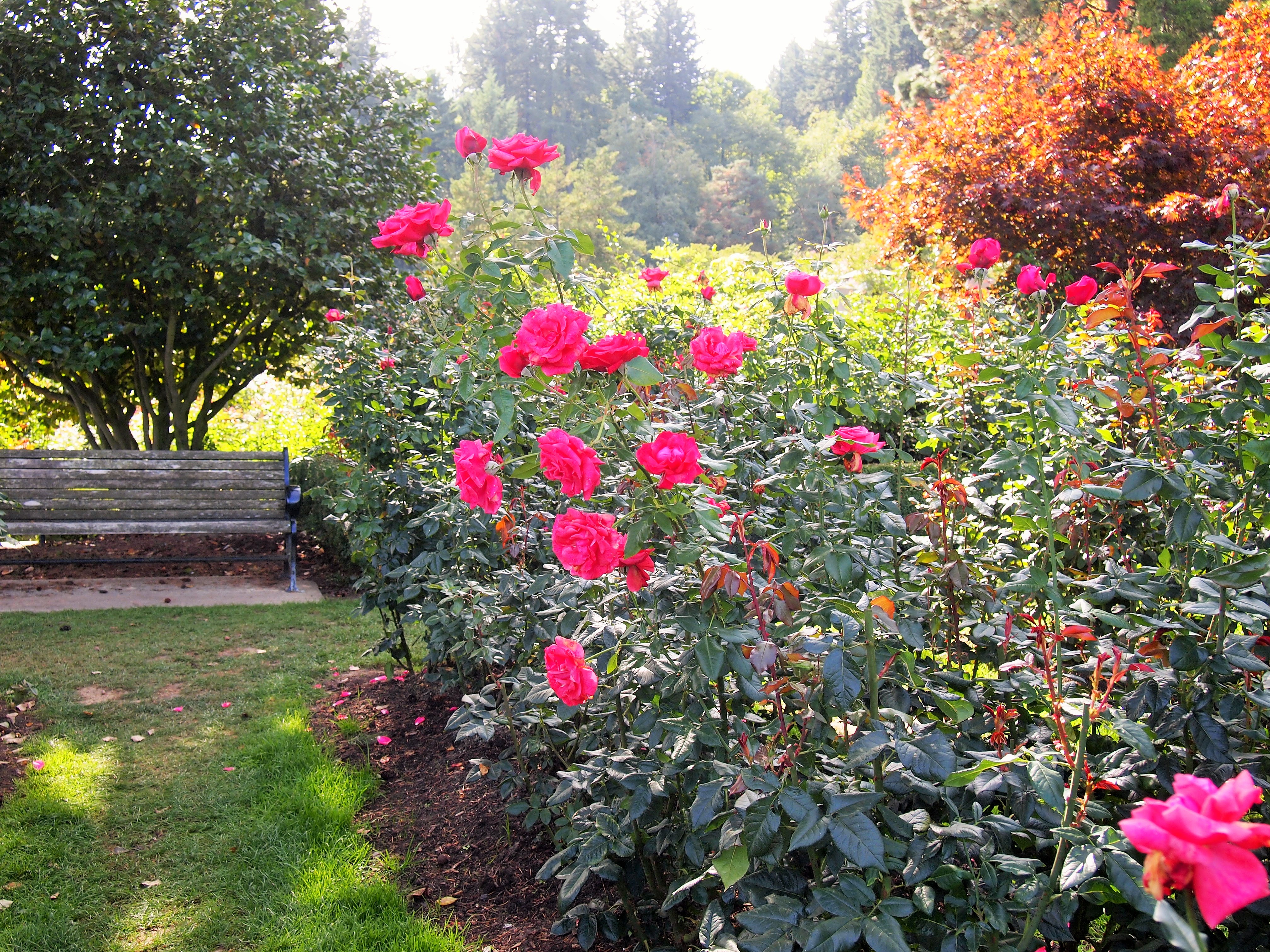 We made a brief detour to a nearby record store before heading west to Washington Park. This time we entered the park from the northern side and walked on a lovely forest pathway to The International Rose Test Garden. Portland’s association with roses began when Georgiana Pittock founded the Portland Rose Society in 1889, but Portland didn’t earn the moniker “City of Roses” until 1905 when the city’s rose-lined streets welcomed visitors to the Lewis and Clark Centennial celebration. The idea for a test garden arose during World War I when Portland became a haven for the rose hybrids of Europe, keeping them safe from the destruction abroad. The current International Rose Test Garden was dedicated in 1924. Today the garden is 4.5 acres and contains 600 varieties of roses. Mild winters and a long growing season make Portland a perfect location to test new rose varieties. I can only imagine how gorgeous the garden must be in the summer. Even still, the sweet scent of roses filled the air as we walked through the garden.