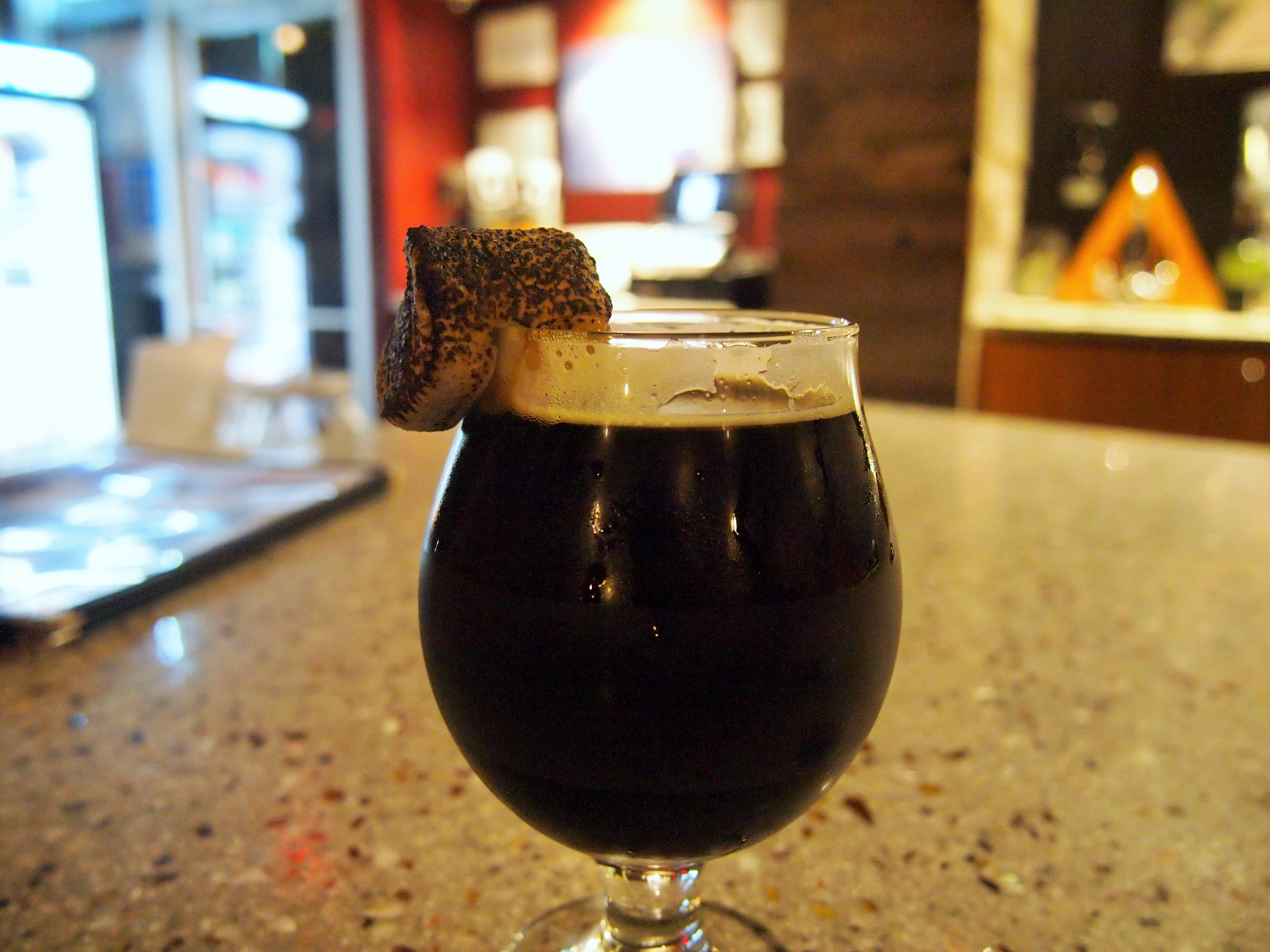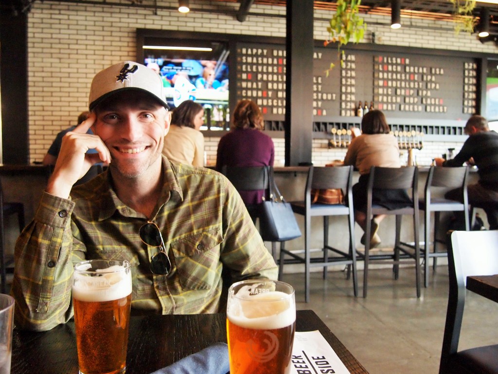 From there we decided to hit a couple more breweries to round out our visit. First we travelled back across the river to Burnside Brewing. We’d passed the brewery on our way downtown each day and wanted to check it out. We each had exceptional beers. Zach raved about his ? but they were a little expensive, so we decided to try one more place. We ended up at Base Camp Brewing. The taproom was decorated in a campground (base camp) theme so the lights were lanterns, the tables were covered in maps, and the interior had a rustic, outdoorsy feel. We really liked the beers. Zach ordered a s’more stout and it arrived with a toasted marshmallow on the rim! There were two food trucks in front of the brewery so we were able to eat a great pizza too.