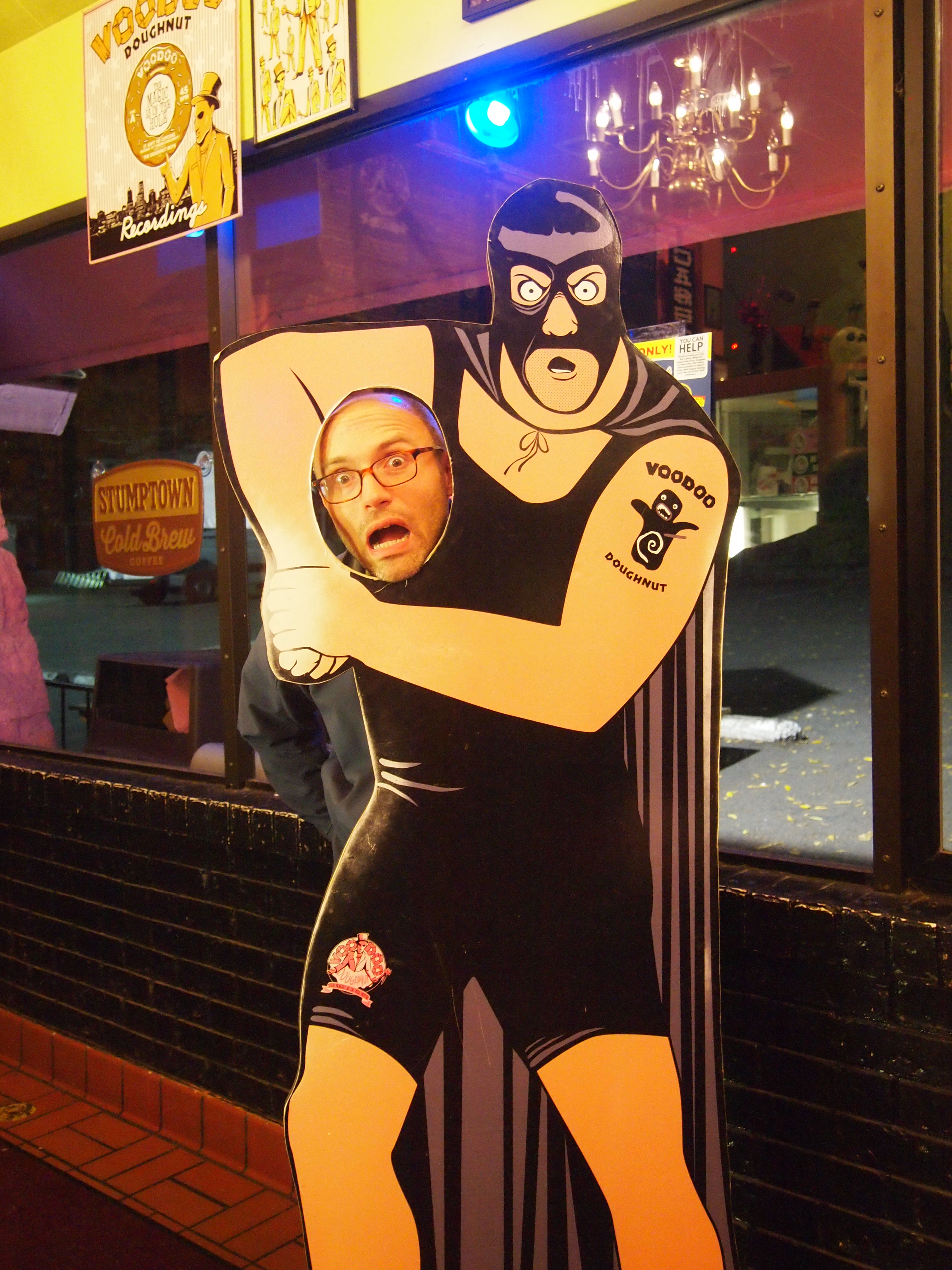 After StormBreaker we caught a bus and started back in the direction of our neighborhood. We had witnessed the obscene line outside of Voodoo Doughnut’s downtown location, and there was no way I was going to stand in a line that long for a donut. There was, however, another location closer to our Airbnb. We dropped in late enough that there were only two people in line – victory! Zach ordered the iconic Voodoo Doll and an Old Dirty Bastard which is smothered in chocolate frosting, Oreo crumbles, and peanut butter. I went for my standard favorites – glazed old fashioned and blueberry cake – because if you can’t do the originals well, you shouldn’t be a doughnut shop. All of the donuts were really great, and we can now say we’ve been to Voodoo Doughnut in Portland.