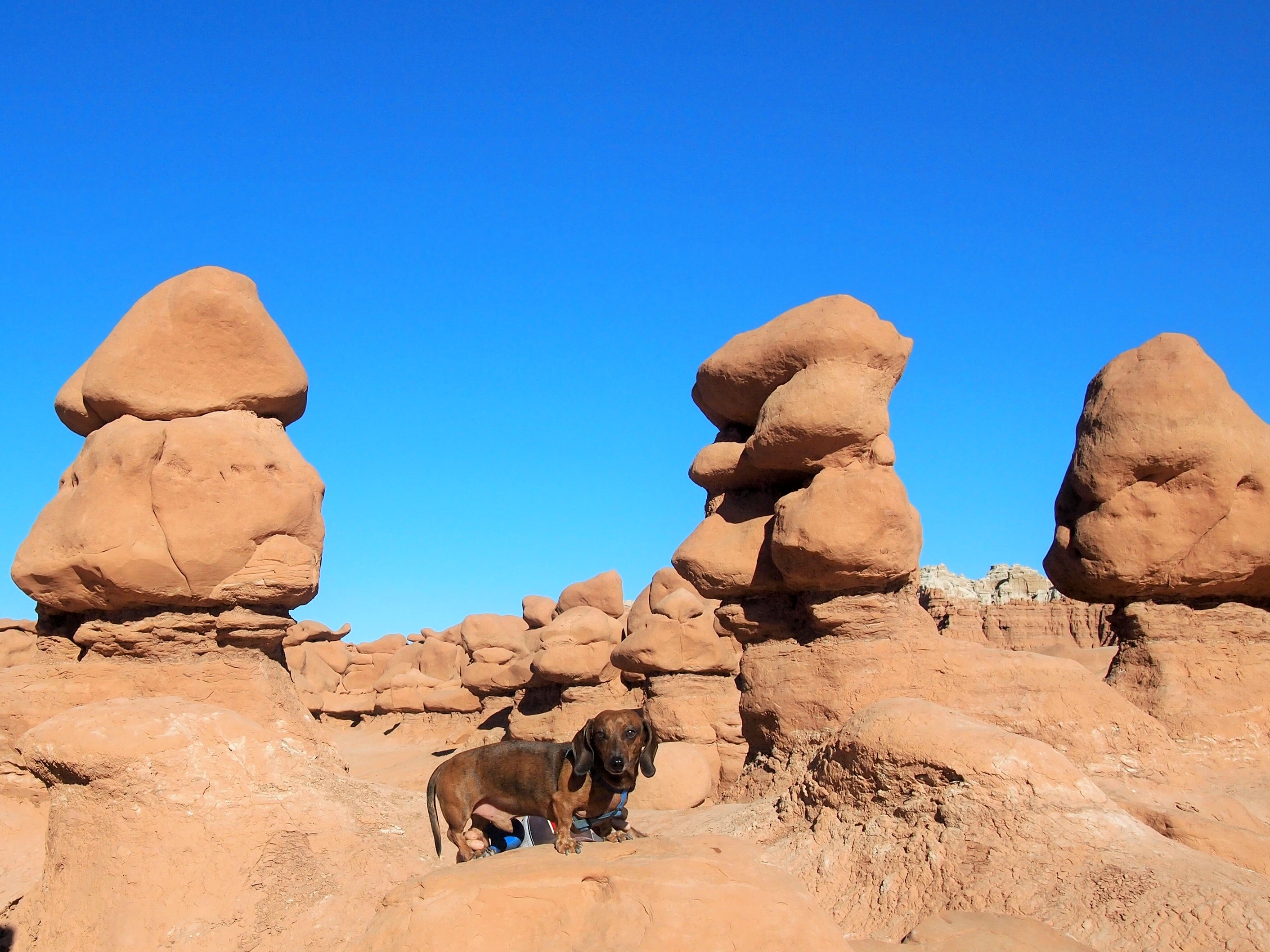 One of the greatest aspects of Goblin Valley SP is that visitors are allowed to roam around the valley floor in and among the hoodoos. If I had come here as a kid, it would have been my favorite place! You can climb and scramble onto the goblins, peek through windows in the rock, and just wander aimlessly. There are three marked valleys in the park brochure, but we only strolled through the first one.
