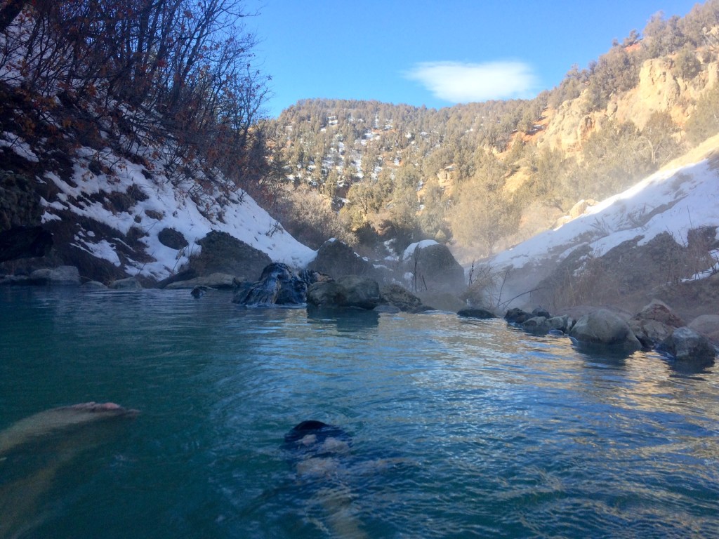 We stayed for close to two hours. After we arrived, there was a fairly steady flow of others, but it only began to get crowded as we left – around 2pm. On our way out I counted 20 people in the last mile nearest the hot springs, 15 people at the beginning of the trail or close to the trailhead, and over 45 people who were still walking on the road. The lesson: getting to the springs earlier is always better. We had plenty of solitude on our hike in and were nearly alone while we soaked. It was a great way to kick off 2018!