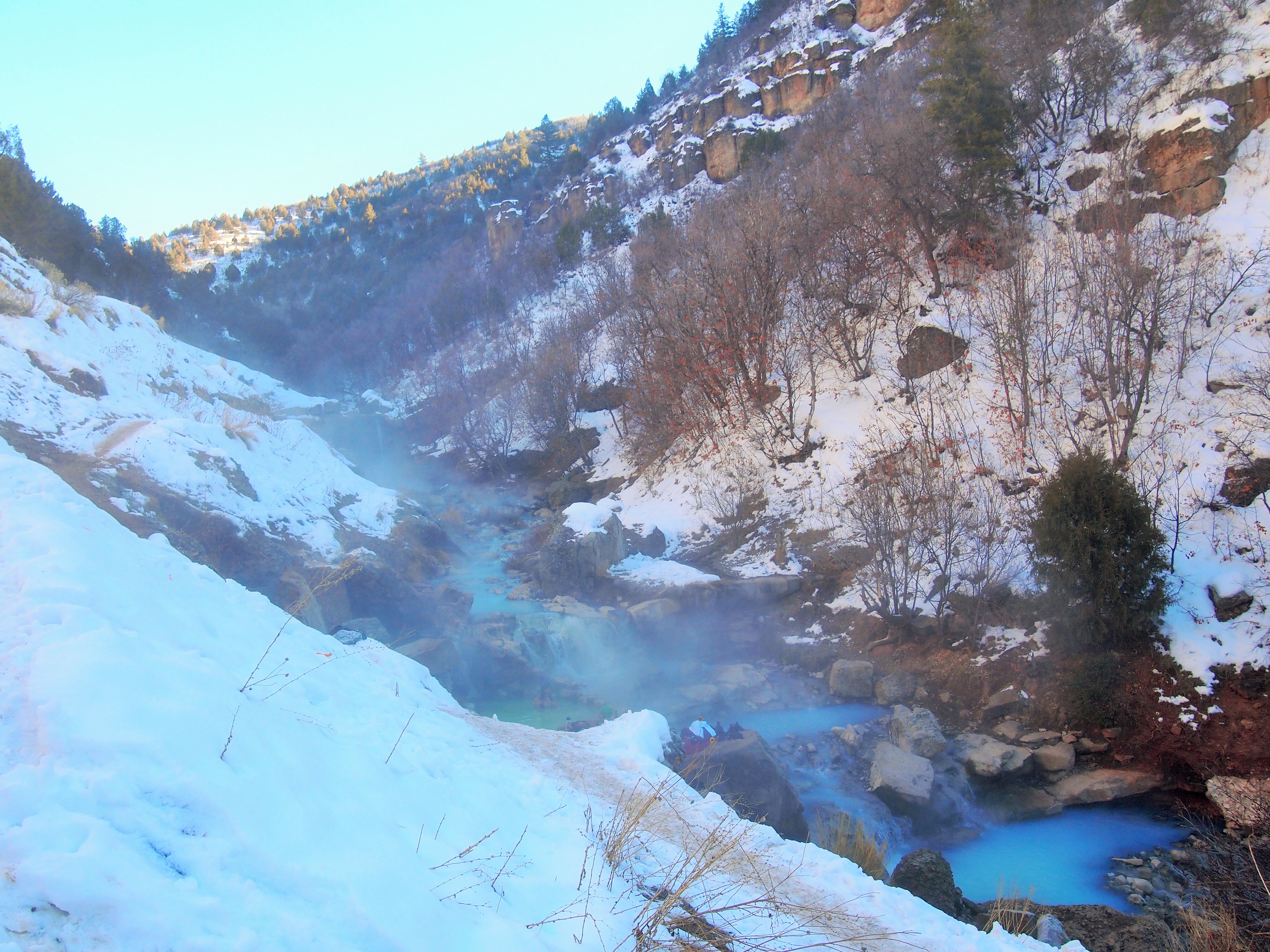 We stayed for close to two hours. After we arrived, there was a fairly steady flow of others, but it only began to get crowded as we left – around 2pm. On our way out I counted 20 people in the last mile nearest the hot springs, 15 people at the beginning of the trail or close to the trailhead, and over 45 people who were still walking on the road. The lesson: getting to the springs earlier is always better. We had plenty of solitude on our hike in and were nearly alone while we soaked. It was a great way to kick off 2018!