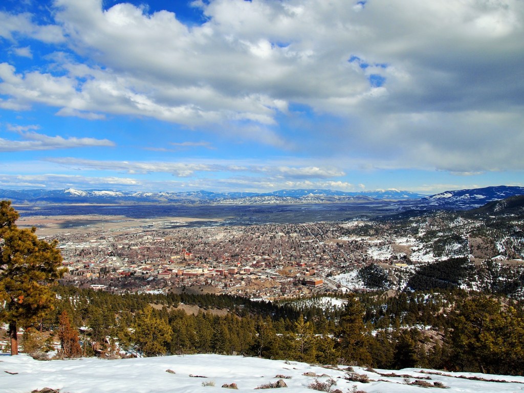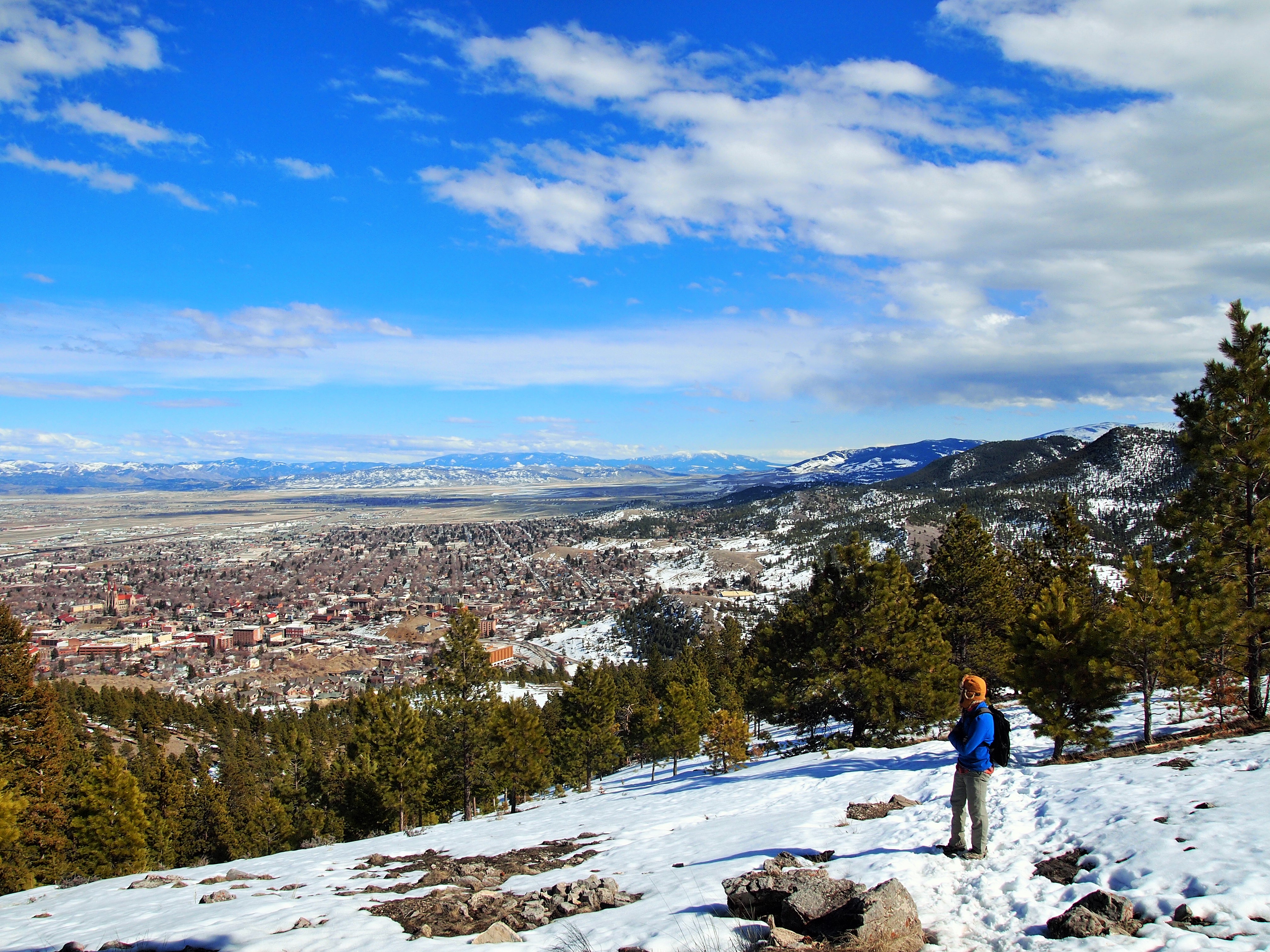 Just outside of downtown Helena is the South Hills Trails System which offers 80+ miles of trails for hiking or mountain biking. The Mt. Helena City Park is perched just above downtown and provides easy access to several trails. We had a couple hours to kill so we started toward the Mt. Helena summit. Truman isn’t usually a fan of the snow, so we initially let him ride along in his pack, but near the top he decided he wanted to hike too. We made it pretty close to the summit, but didn’t quite have enough time to go the rest of the way. Regardless, the views were fantastic, and we couldn’t have had better weather.