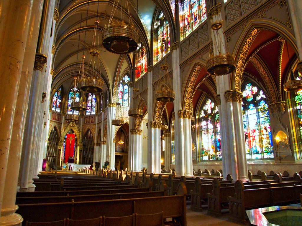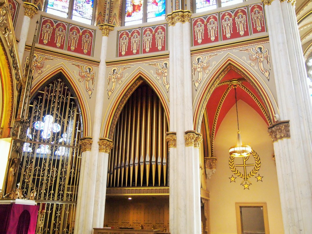 We had enough time after our hike to grab a slice of pizza and a beer at Blackfoot Brewing before Zach had to go to rehearsal. I milled around town for a bit before I ended up at the Cathedral of St. Helena. We stopped at the cathedral on our very first visit to Helena four years ago, but a mass was in progress. This time I had the entire cathedral to myself and the late afternoon light shone warmly through the stained glass windows. The cathedral’s stained glass windows begin with the fall of Adam and Eve and go through the Catholic Church’s early 20th century history. While the stained glass is incredible, I was more drawn to the painted details of the cathedral’s interior.