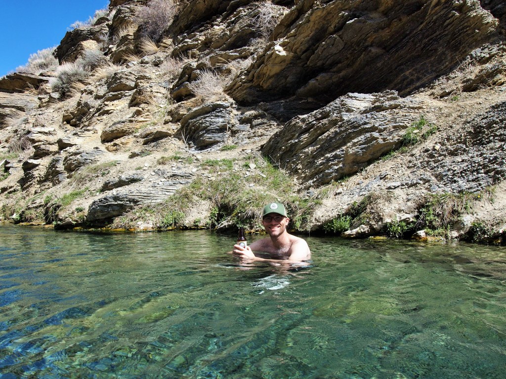 When we first arrived there were two families (about eight people) already at the spring. But eventually it was just us and one family of five. The pool was more than large enough to spread out, and we had the entire northern half of the pool to ourselves. We had stopped at the grocery store in town and picked up some lunch, snacks, and a six pack of local beers – only two of which we brought to the spring. We set up our backpacks on the edge of the spring and were able to pull our food out when we were hungry. I drank plenty of water, but I didn’t alternate between the hot waters and the cooler air often enough because I ended up with a terrible headache later in the evening. We stayed for right around two hours. The family of five had barely left when we decided it was time to pack up and another family had just arrived. So it was by no means overly crowded or popular, but certainly well-known enough (and Easter Sunday). I was able to snap a couple photos of the empty spring as we left.