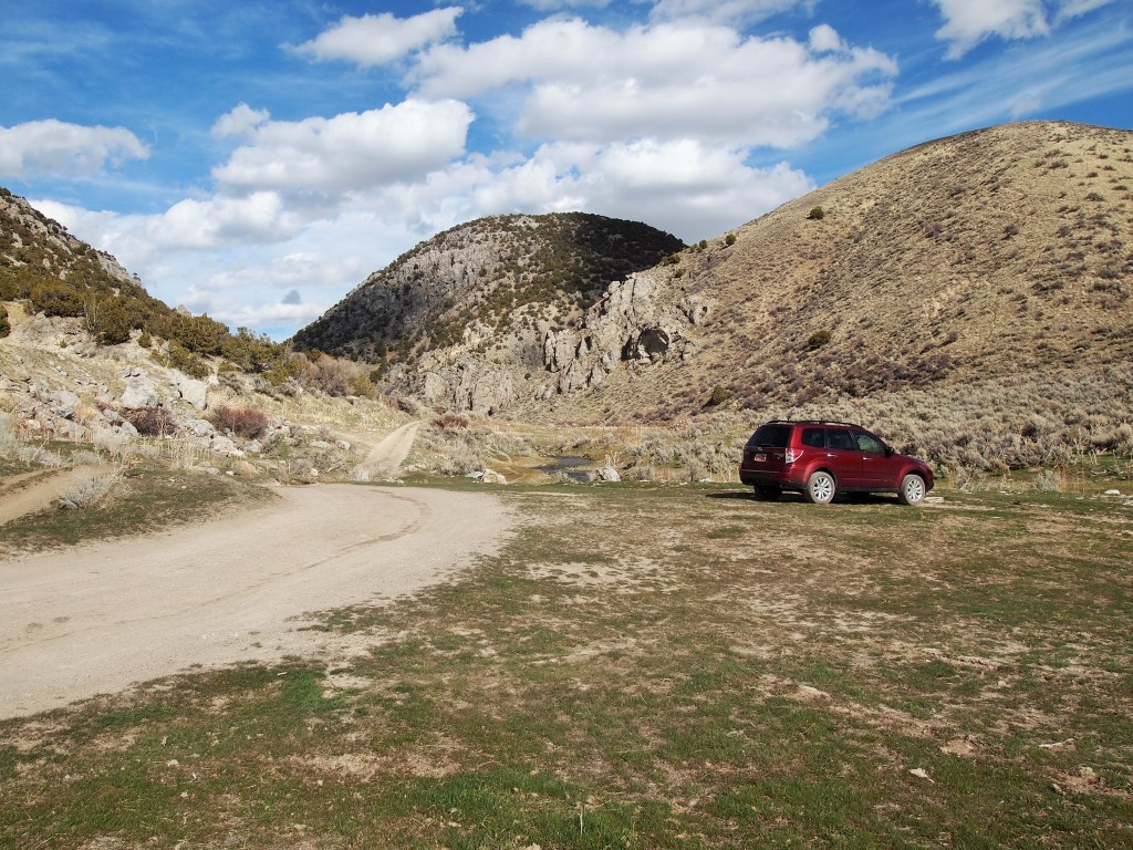 12 Mile Hot Spring is located on private property; I would assume as long as people don’t trash it, it will remain open to the public. That also means that the dirt road to the spring isn’t maintained. When the road is especially muddy it would be difficult to navigate in something smaller than a large truck. Luckily for us, the road was dry, but still quite rutted from recent snow melt. Our Forester handled it fine, but a compact car would have significant trouble. We decided to park in a clearing after a mile or so and walk the rest of the way to the spring; I wanted to stretch my legs after the drive from SLC.