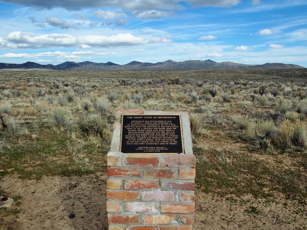 The only other ruin remaining is the Hotel Metropolis. The hotel originally had three stories but caught fire and was mostly destroyed in 1936, so there isn’t much of note remaining sadly. It would have been interesting to compare the two structures had they both decomposed in the same way. Opposite the hotel is a memorial plaque for the town; farther down the road, the town’s cemetery, Valley View, has an eternal view of the East Humboldt Range.
