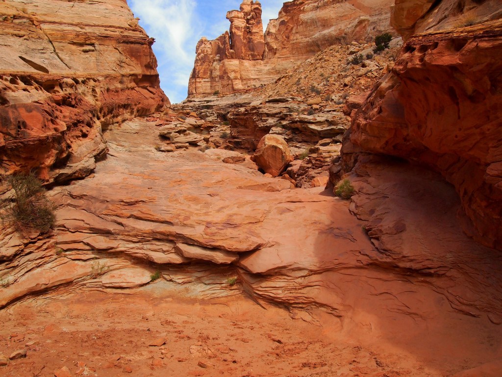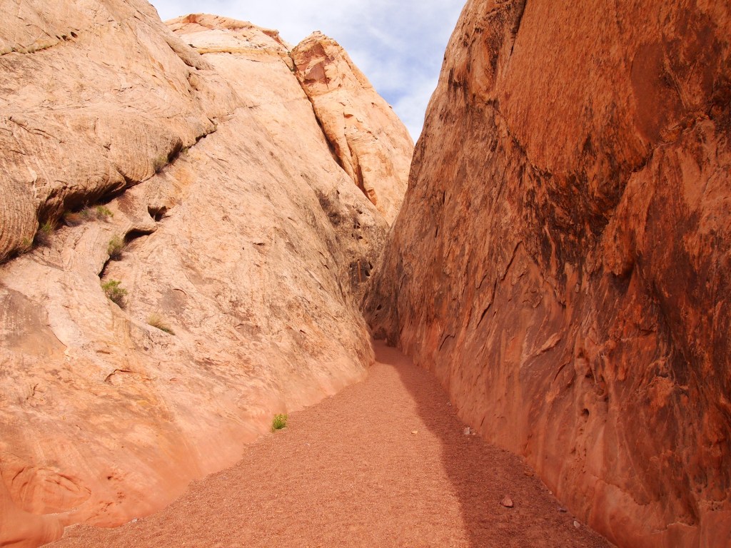 Soon the trail split – right for Ding and left for Dang. Most people make the loop by ascending Ding and descending Dang, though it could be done the opposite way for a greater challenge. We branched right for Ding and were shortly met with a slab of slickrock which marked the entrance to Ding. The beginning of Ding was rather enjoyable; we had to scramble up a couple boulders and ledges, but it was fairly easy. We reached the narrows section pretty quickly and enjoyed an easy jaunt through the cool shadows.
