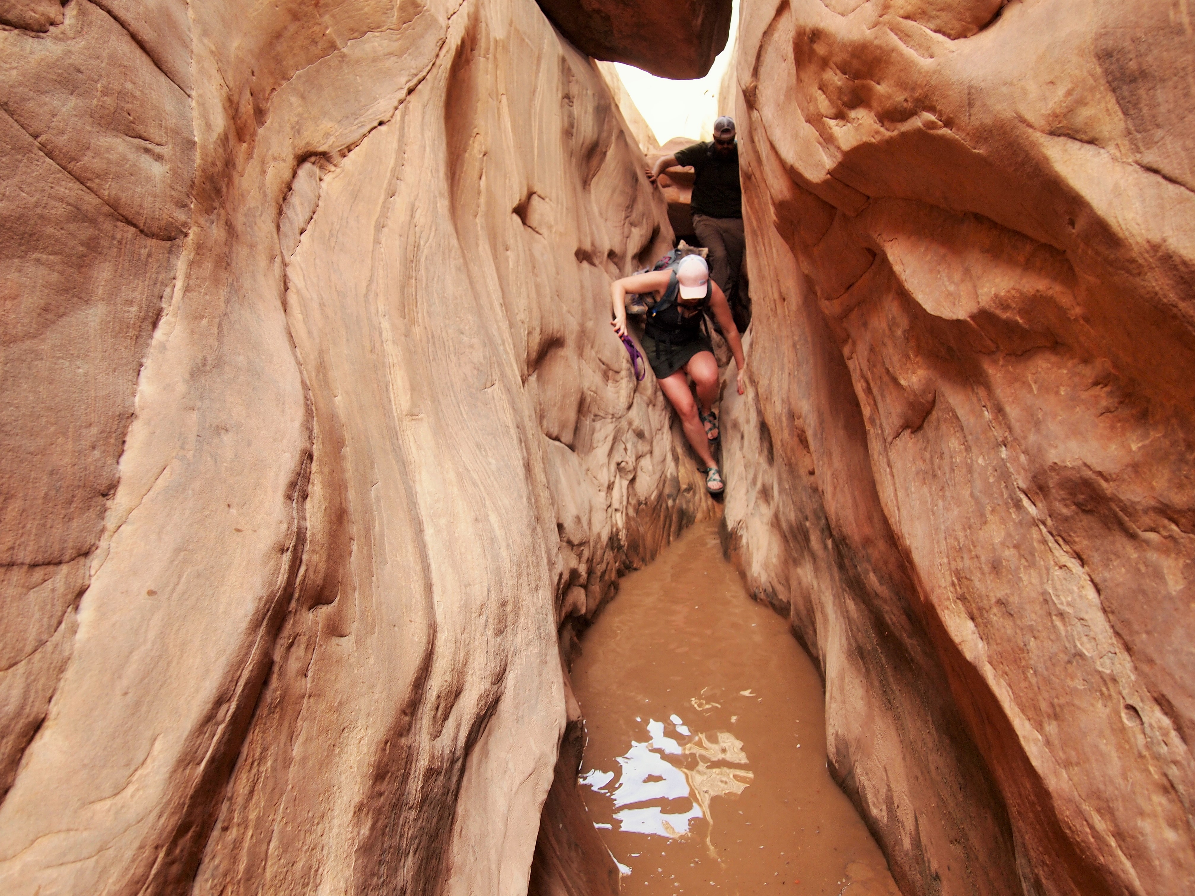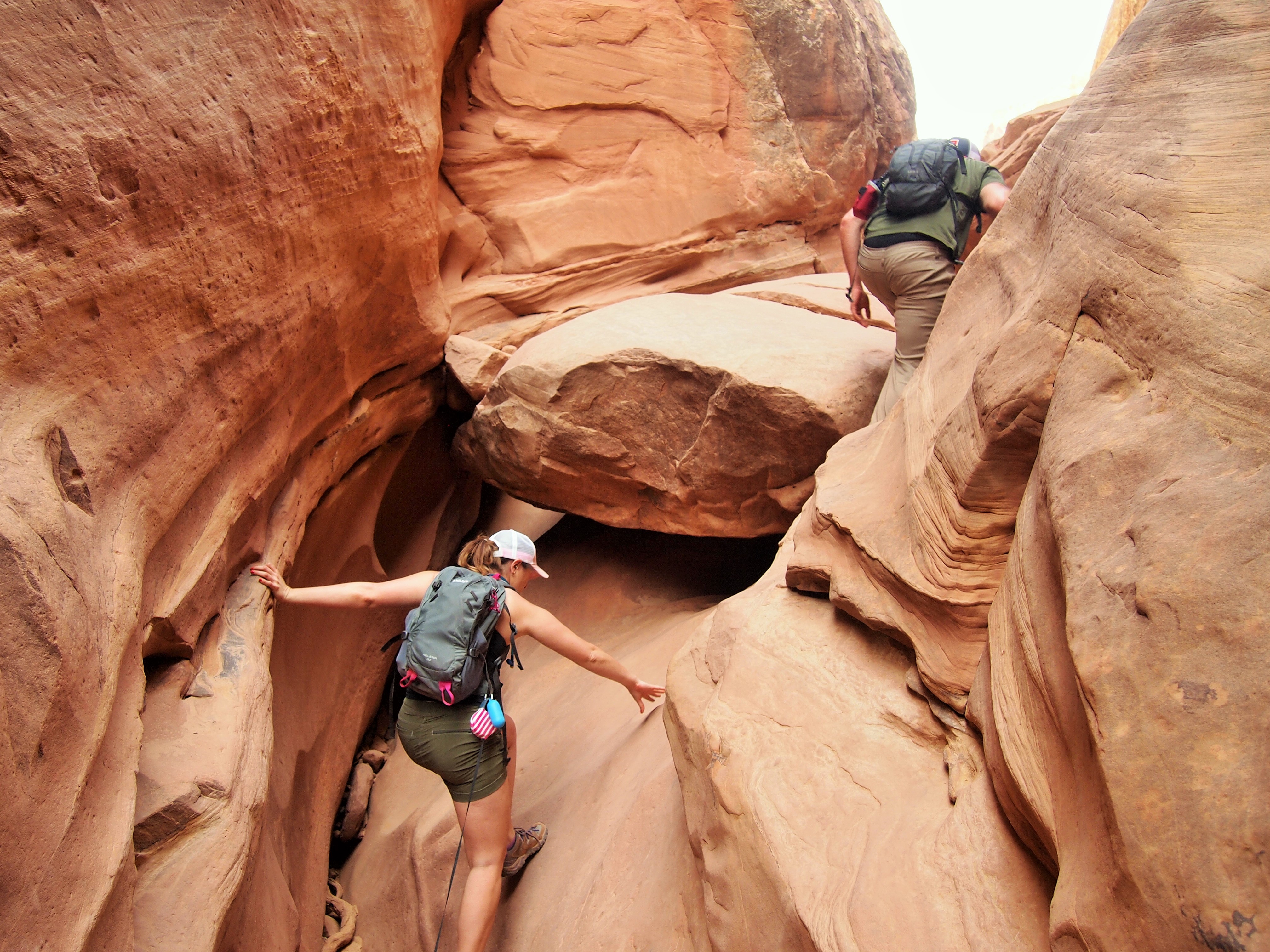 A few of the online descriptions had suggested bringing a climbing rope to assist in getting over chockstones and dry falls that were seemingly difficult. We didn’t have one, however, because we’d also been reassured that it wasn’t completely necessary. But with each obstacle tackled, in the back of my mind I wondered if we would meet a fall we couldn’t overcome. We could always turn back if necessary, right?