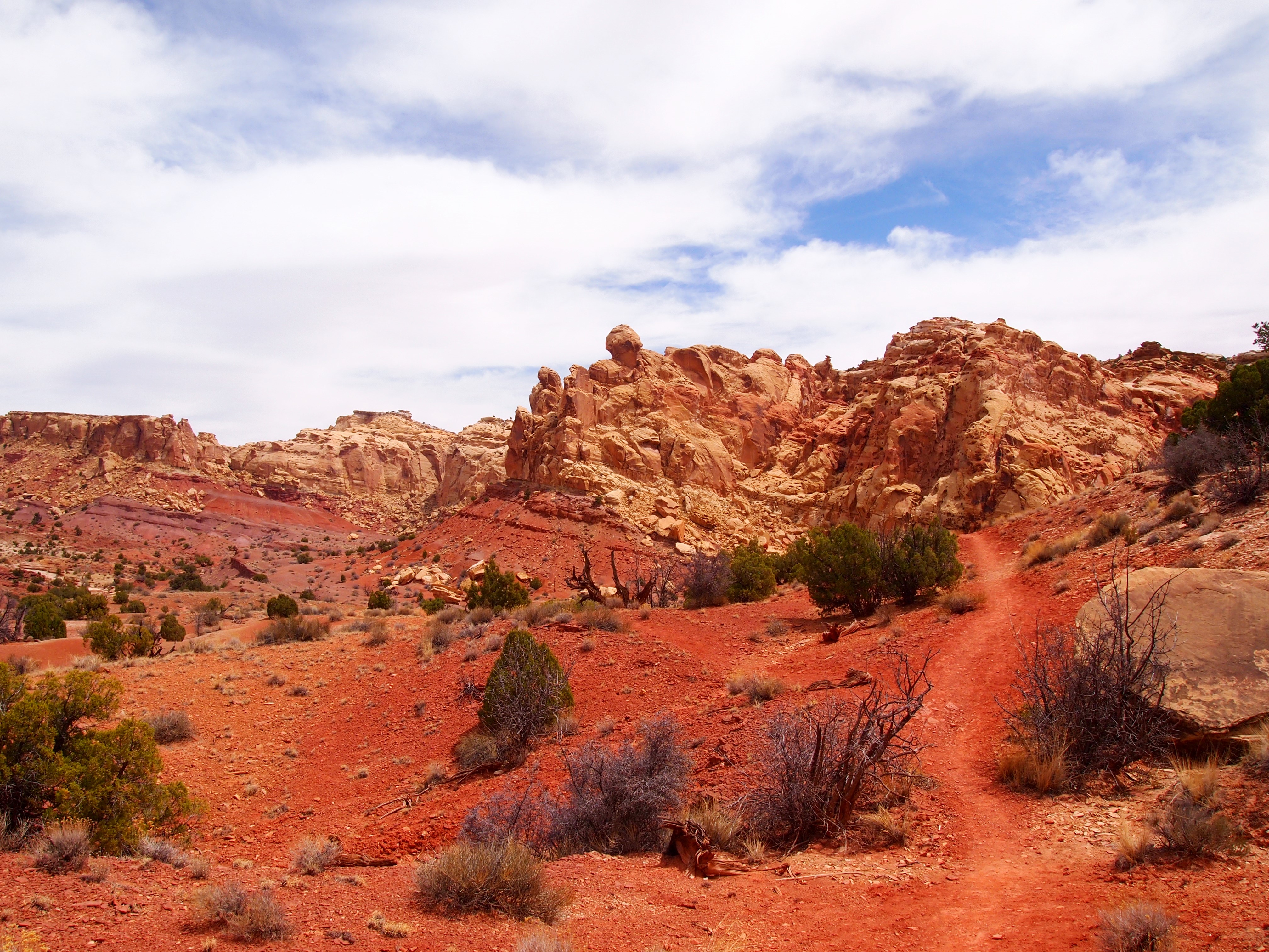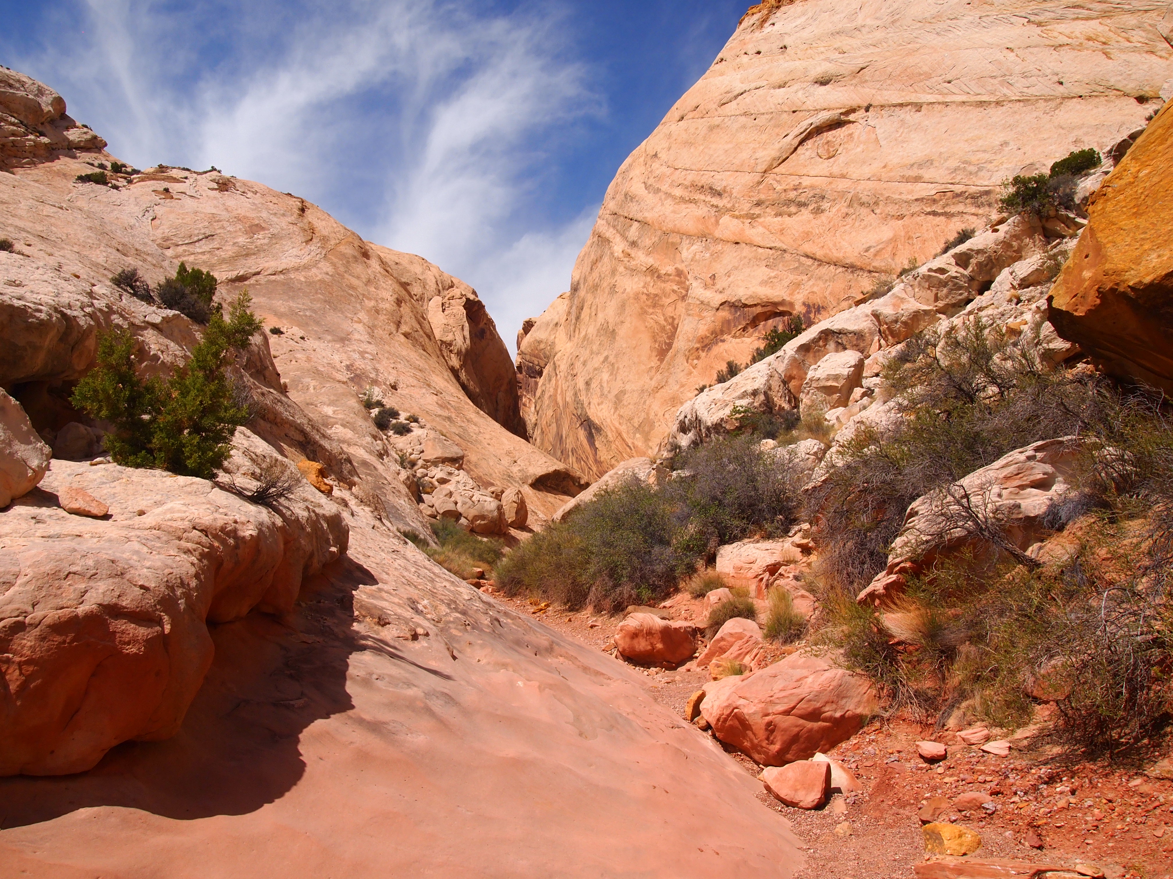 We arrived at the trailhead around 10am. We slathered on sunscreen, filled up our packs with liters of water and snacks, and set off down the wash. For the first 20 minutes we simply followed the wash along the face of the Reef. It wasn’t terrible going in, but we knew it would be hot and exhausting on our way out. In my early-hike enthusiasm, I found a lot of beauty in that initial 20 minutes.
