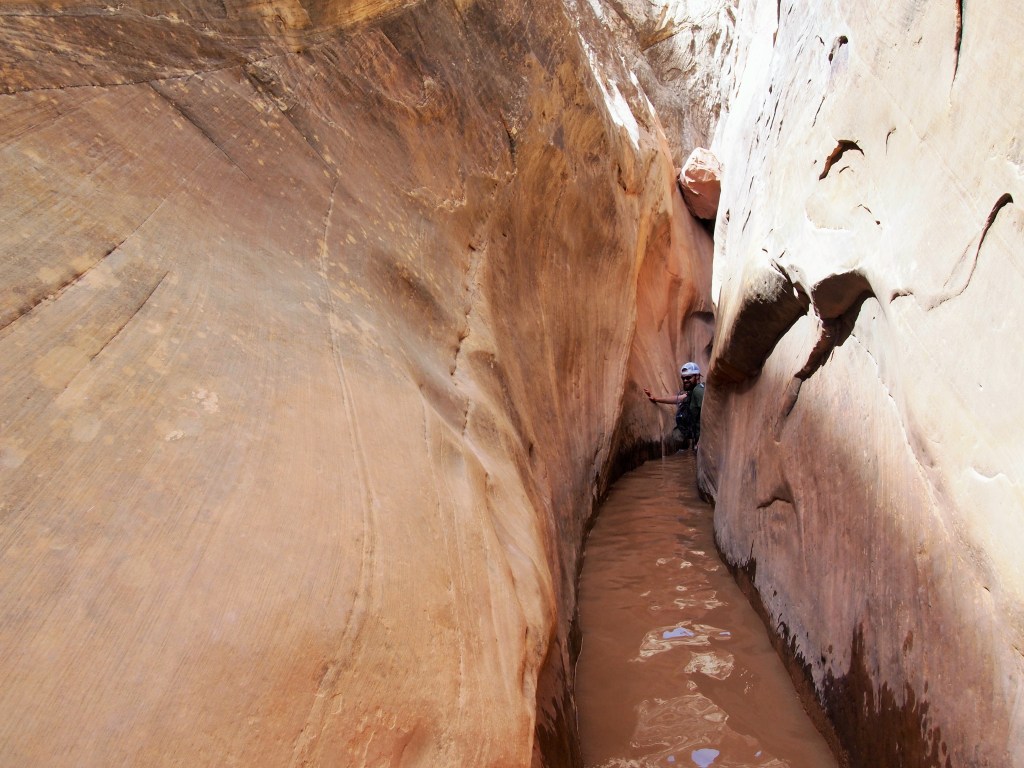 The beginning of Dang was reassuringly easy. Our first obstacle was a 12 ft. dry fall which we bypassed by using the ledge to the right. Several other small obstacles were avoided in a similar manner making us feel pretty good. The farther we went, the better I felt about the hike. Maybe we were worried for nothing?
